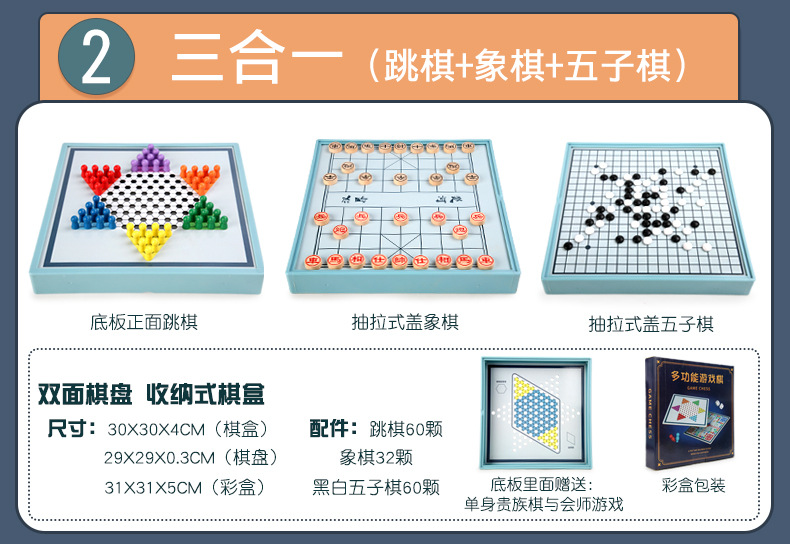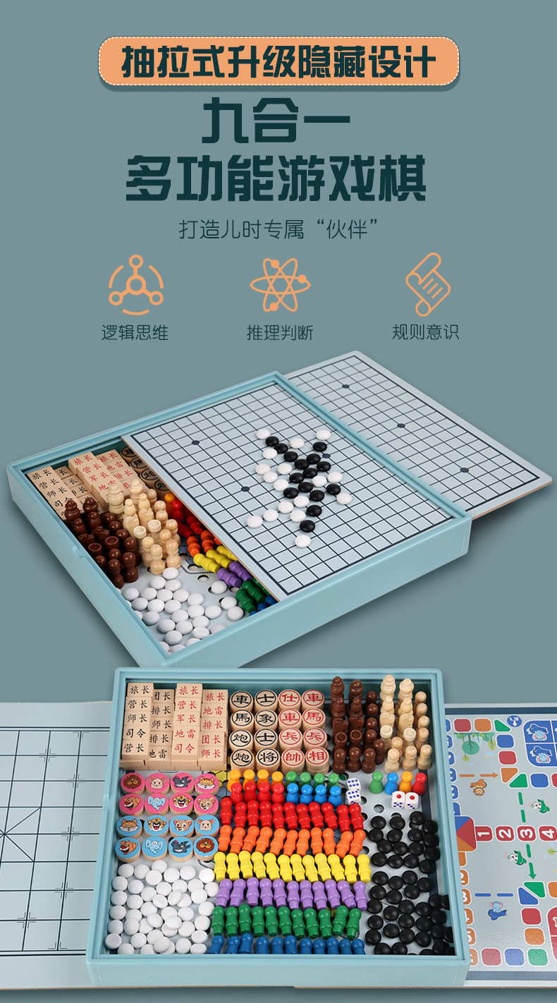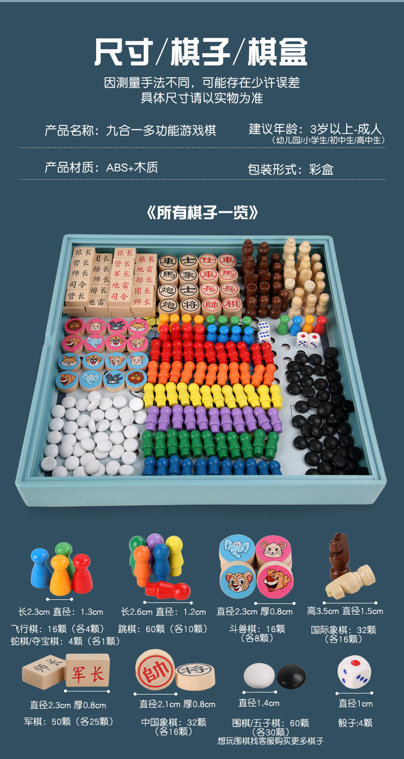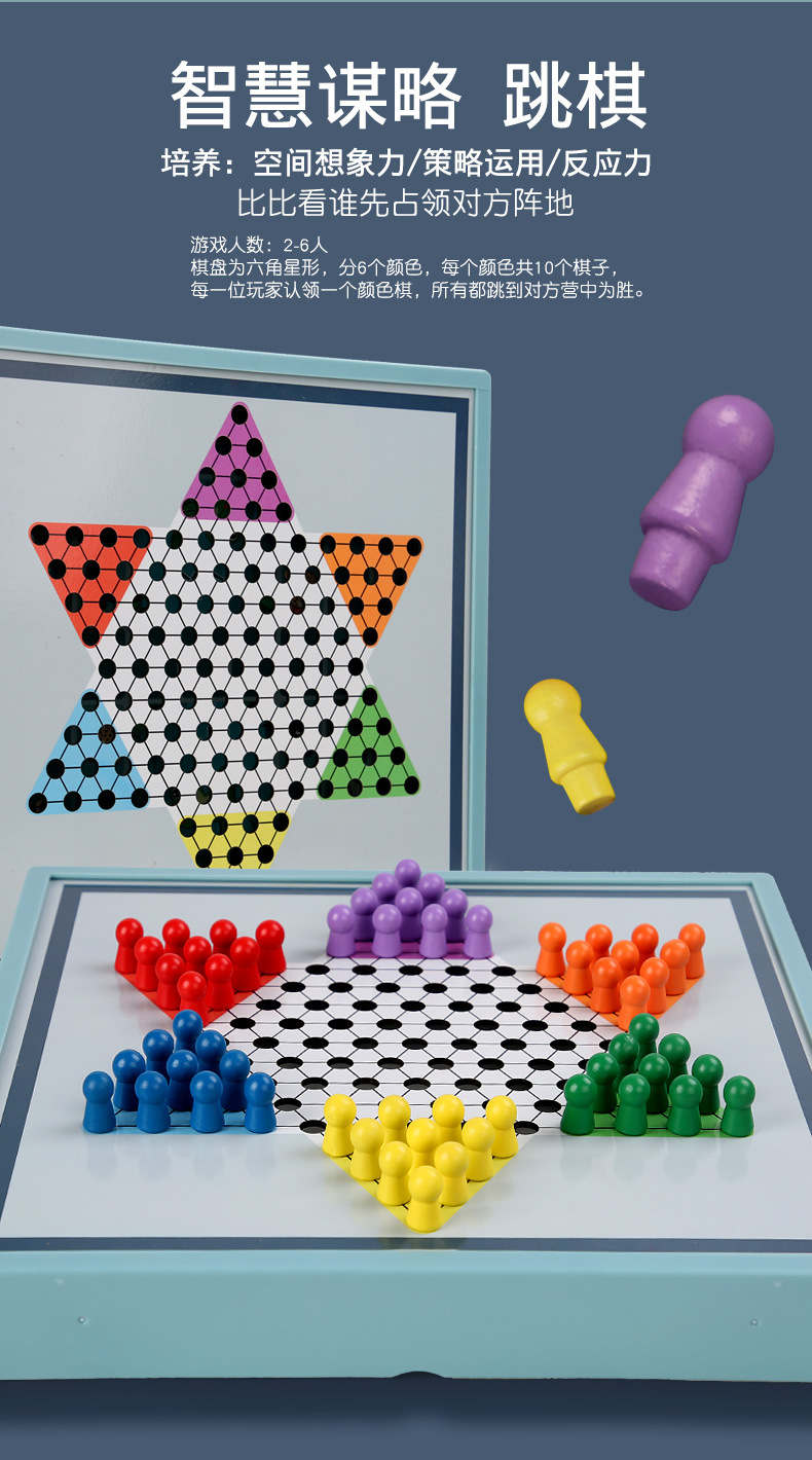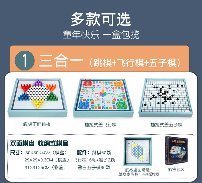 棋盘多合一木质象棋飞行跳棋五子斗兽亲子桌游儿童智力益智玩具