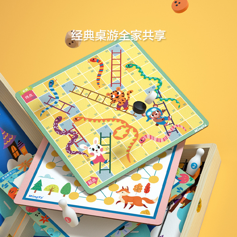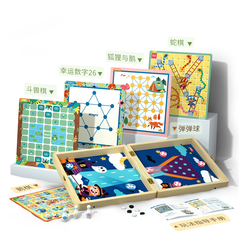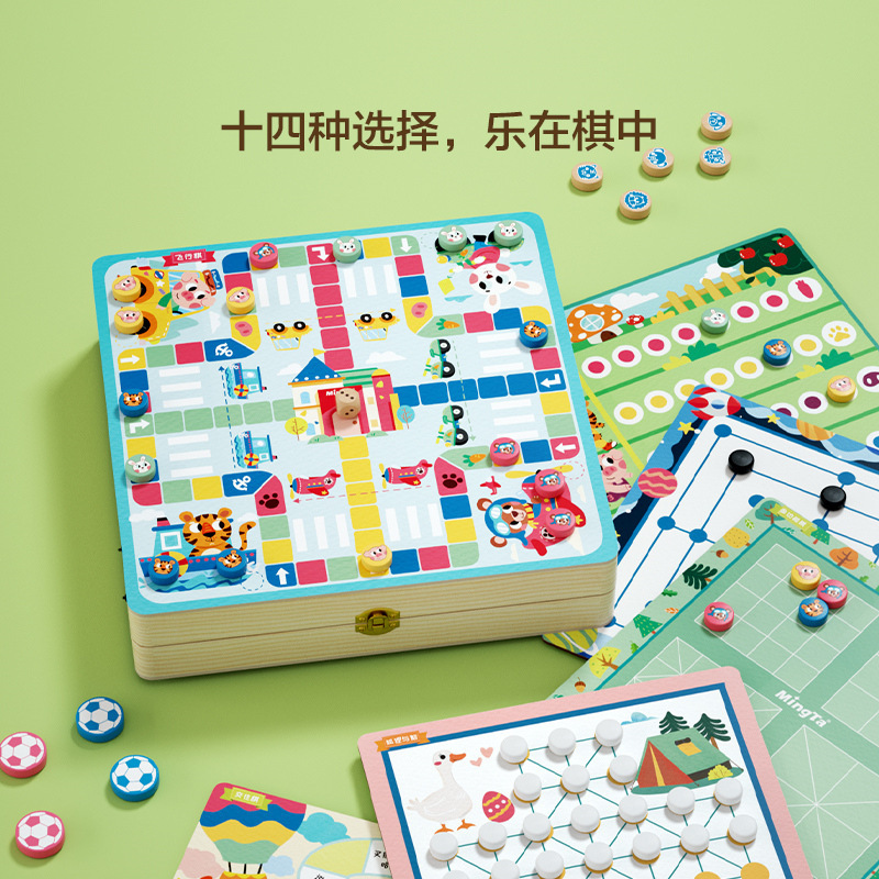 铭塔儿童十四合一多功能桌游玩具MT8318男女孩飞行棋五子棋跳棋