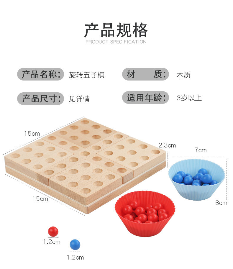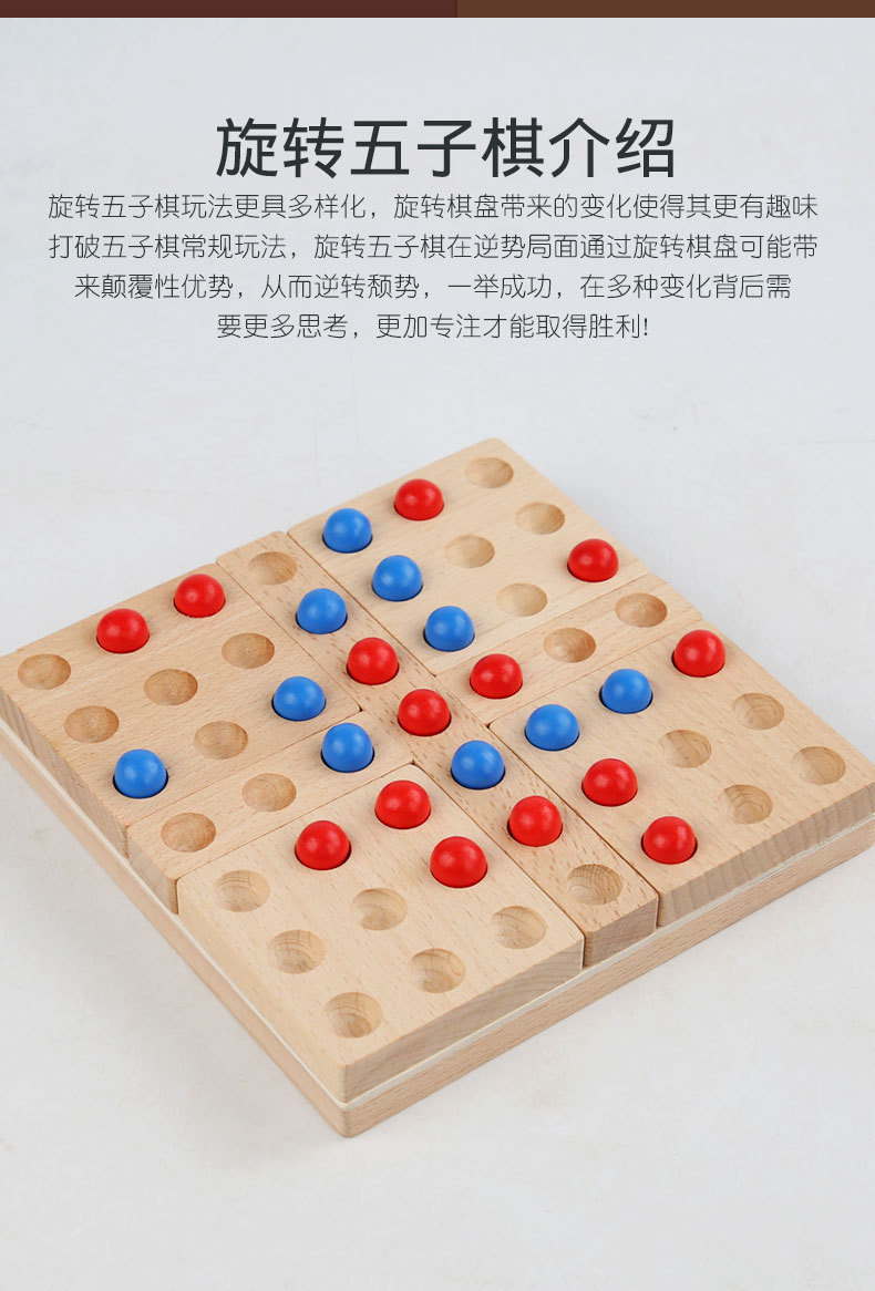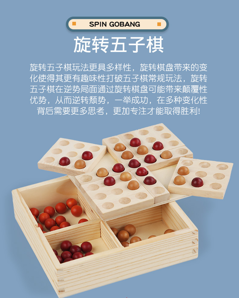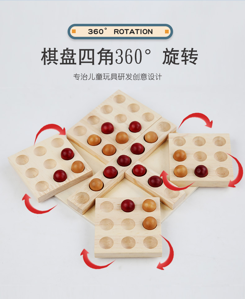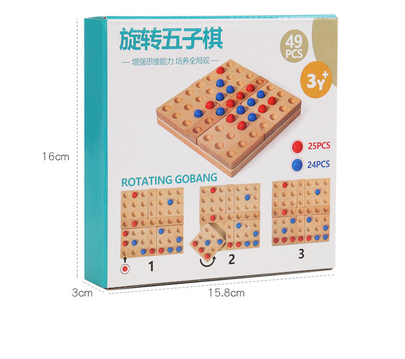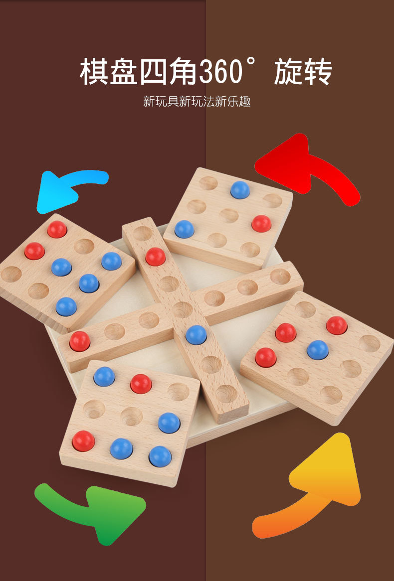 跨境 运动休闲传统棋牌桌游儿童木制玩具 动手动脑旋转五子游戏棋