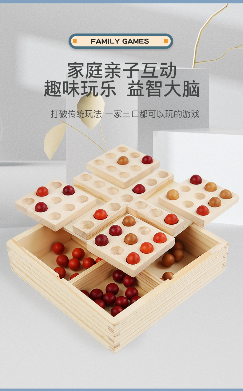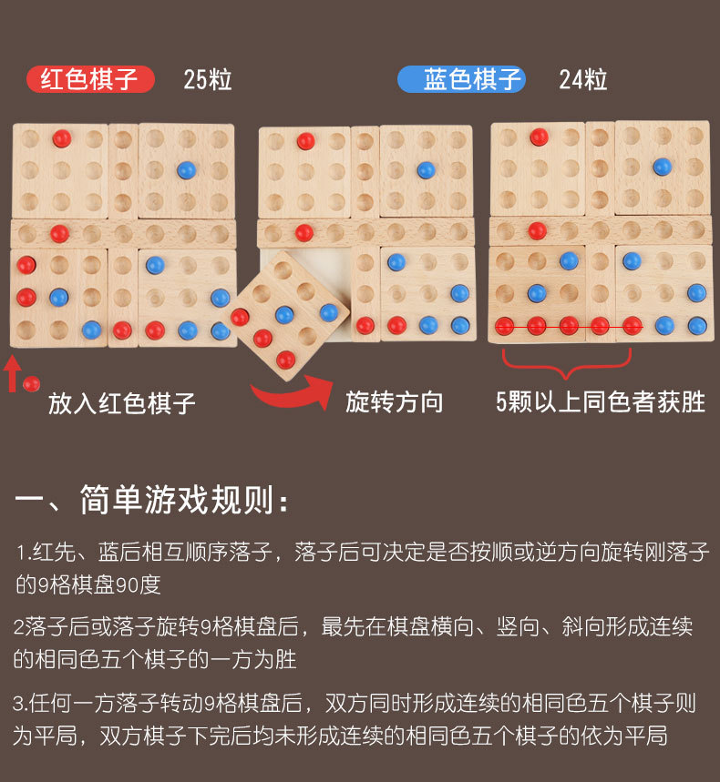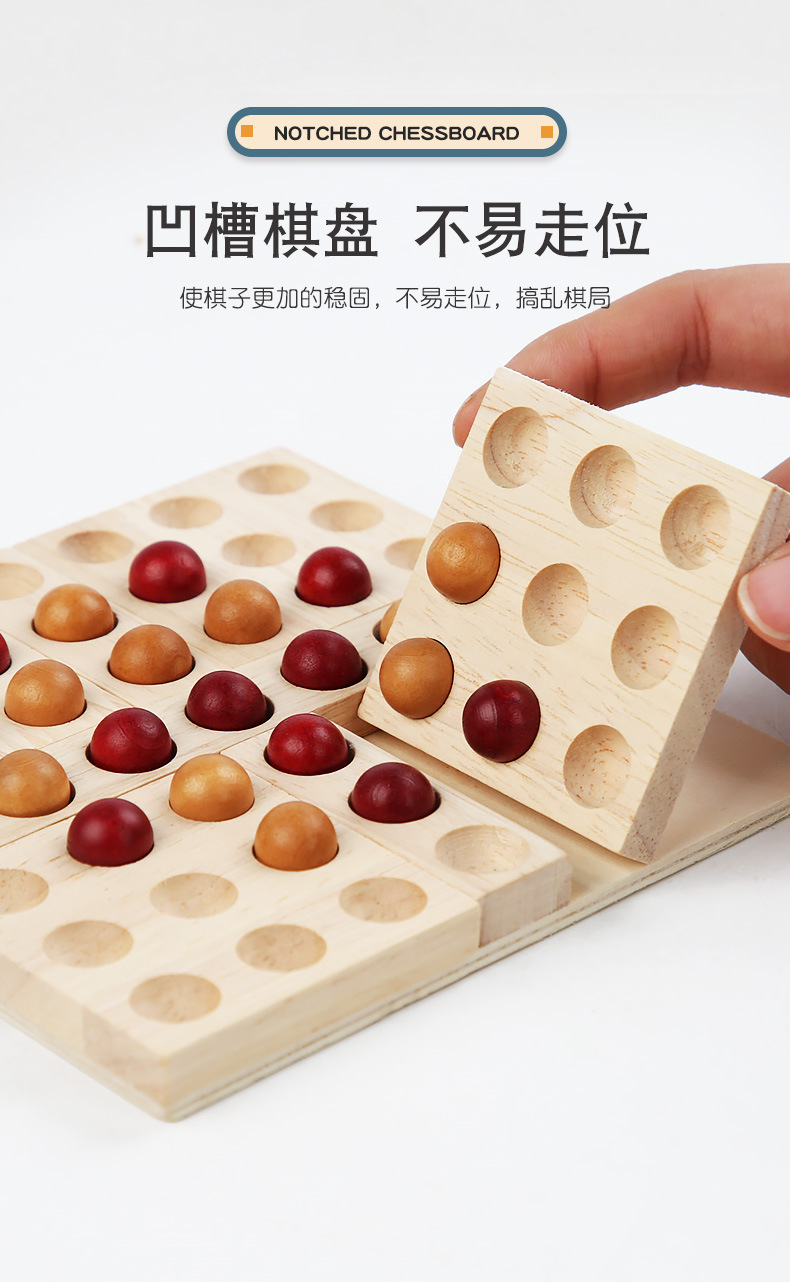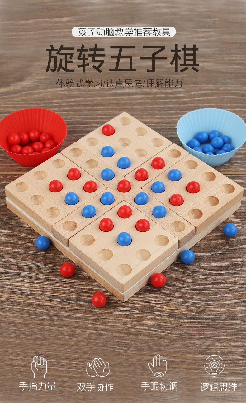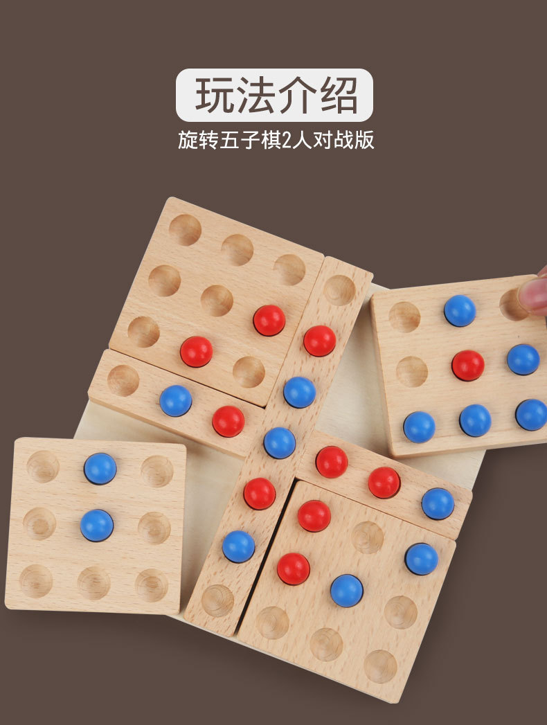 跨境 运动休闲传统棋牌桌游儿童木制玩具 动手动脑旋转五子游戏棋