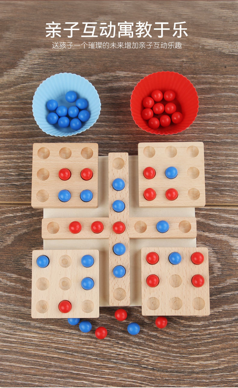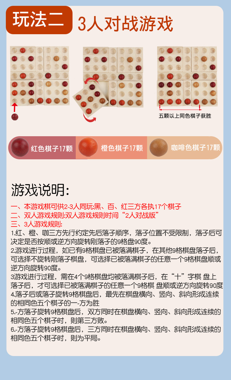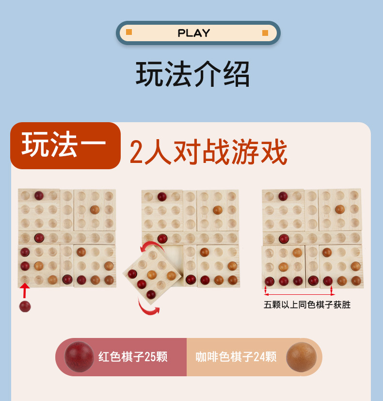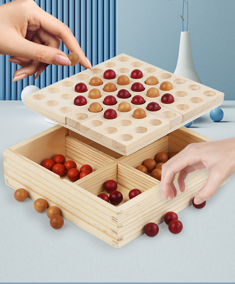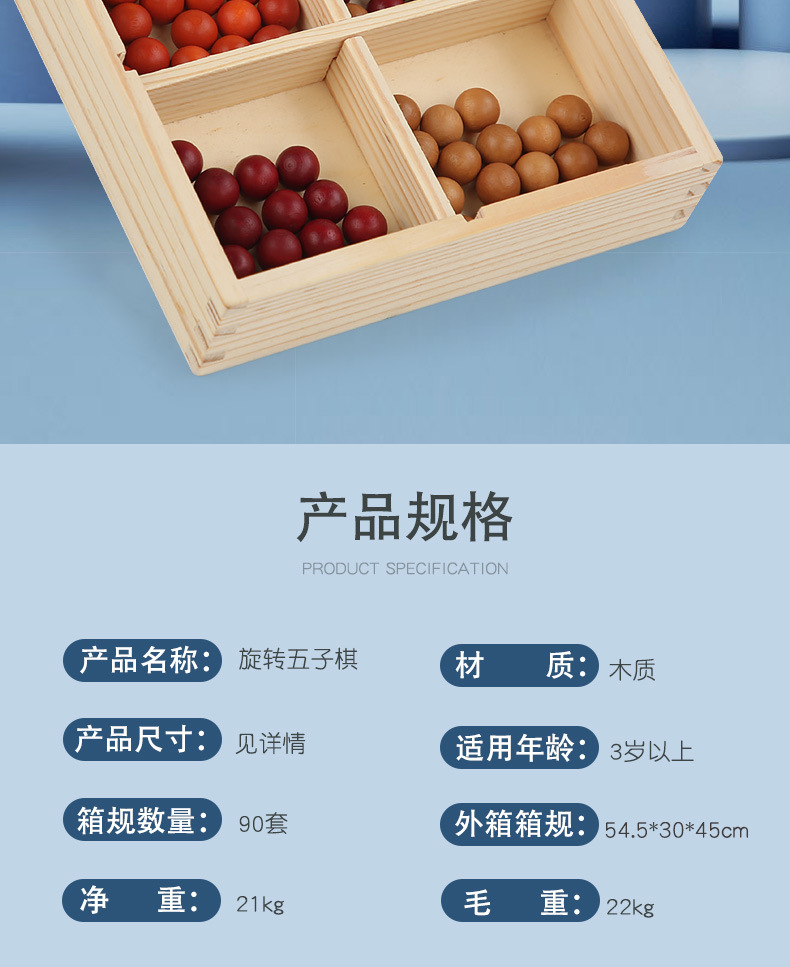 跨境 运动休闲传统棋牌桌游儿童木制玩具 动手动脑旋转五子游戏棋