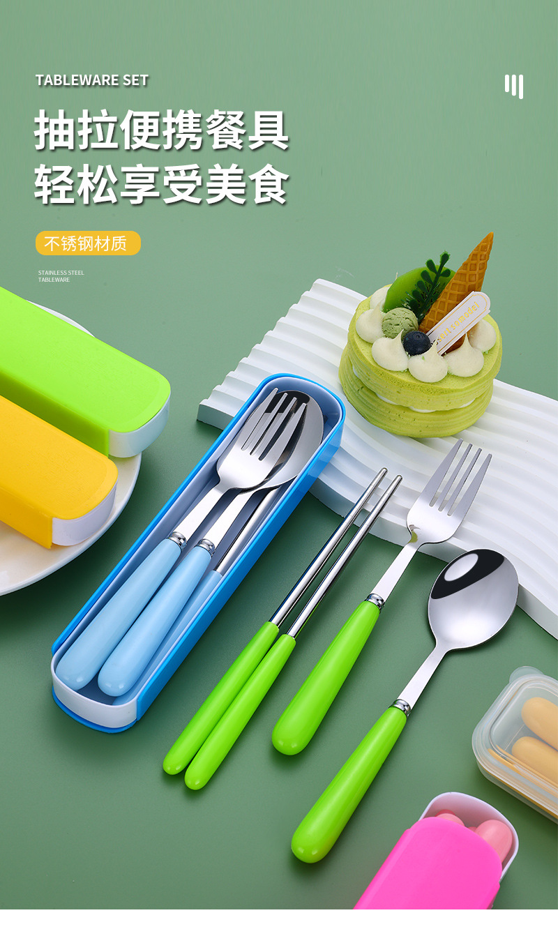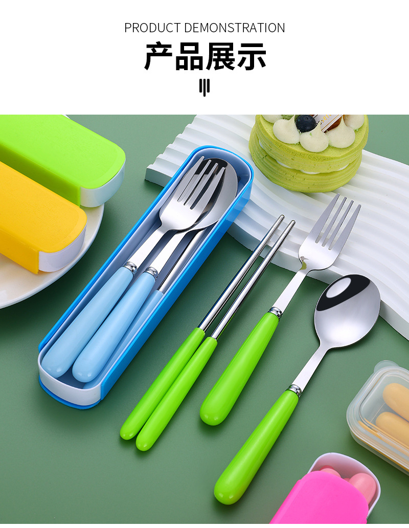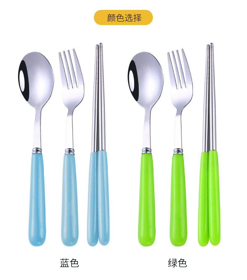 不锈钢便携餐具勺子筷子叉子三件套学生儿童户外旅行便捷礼品套装