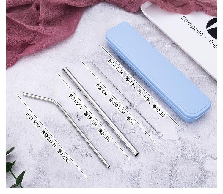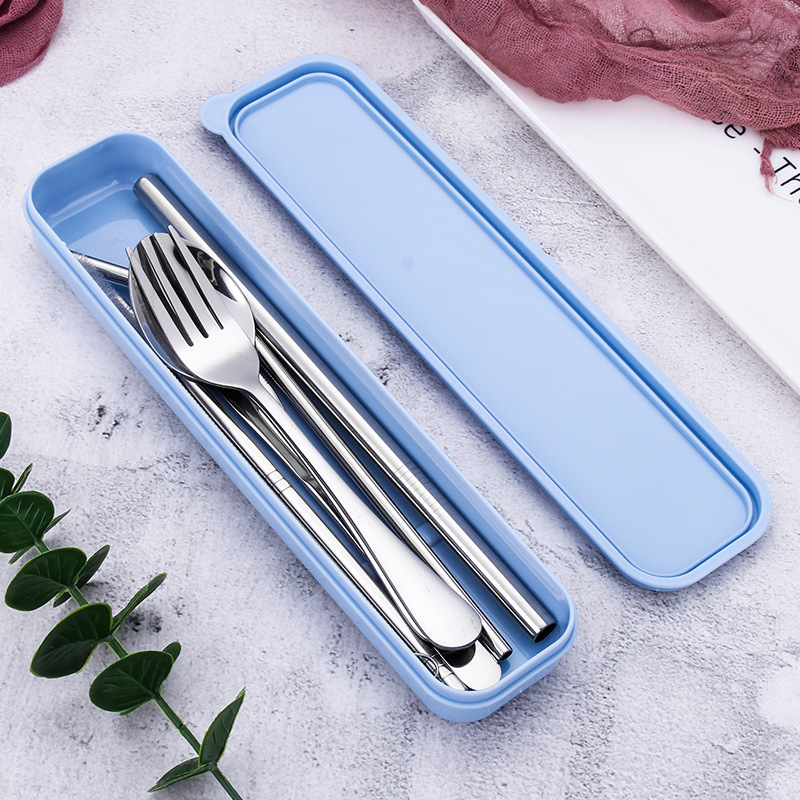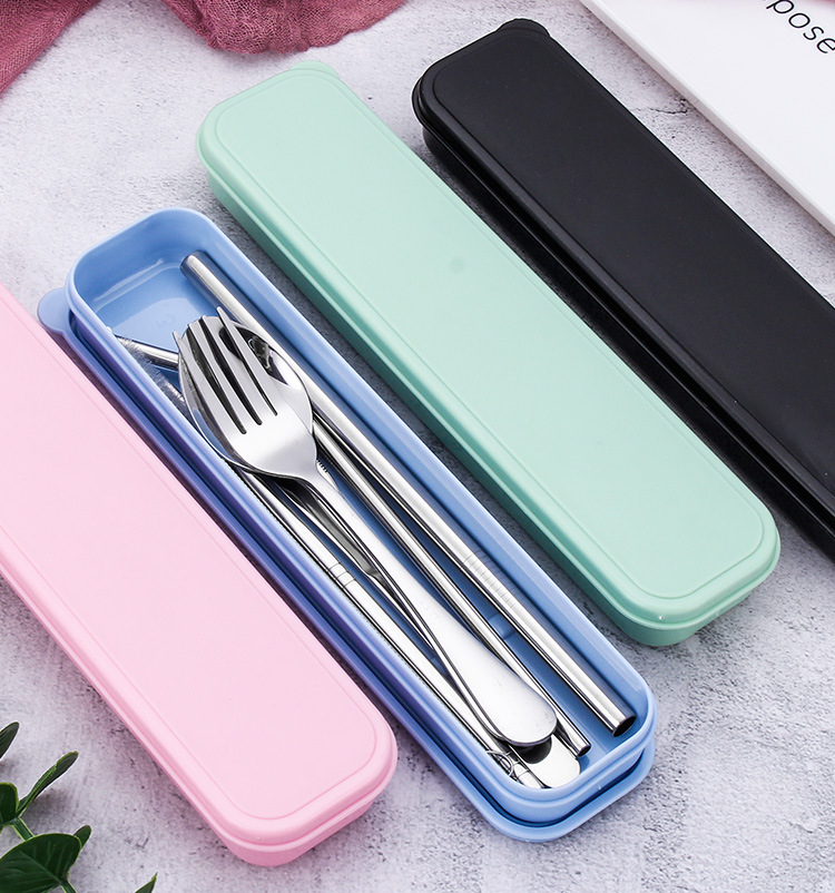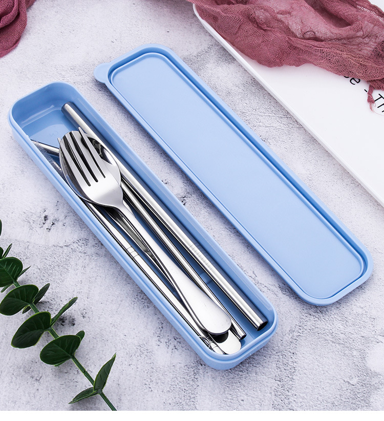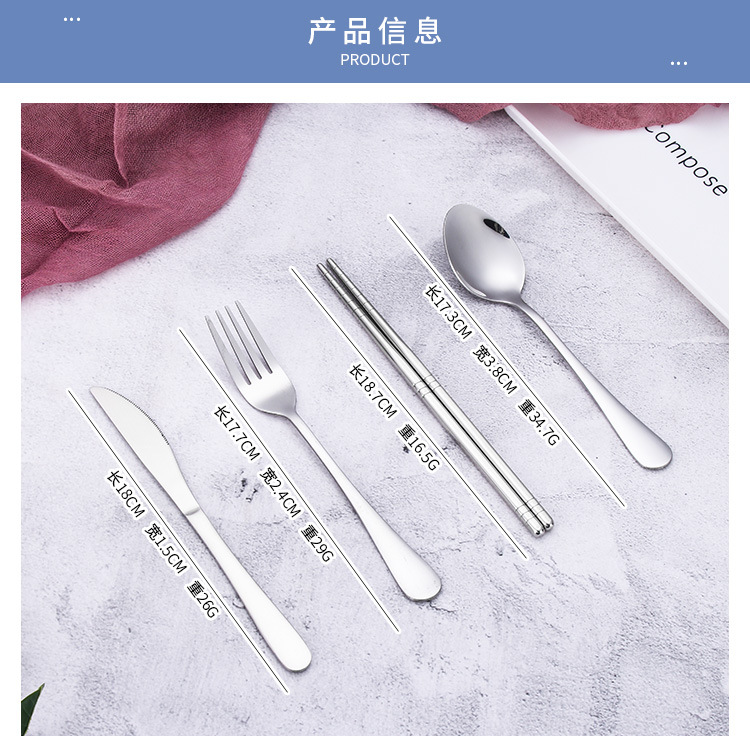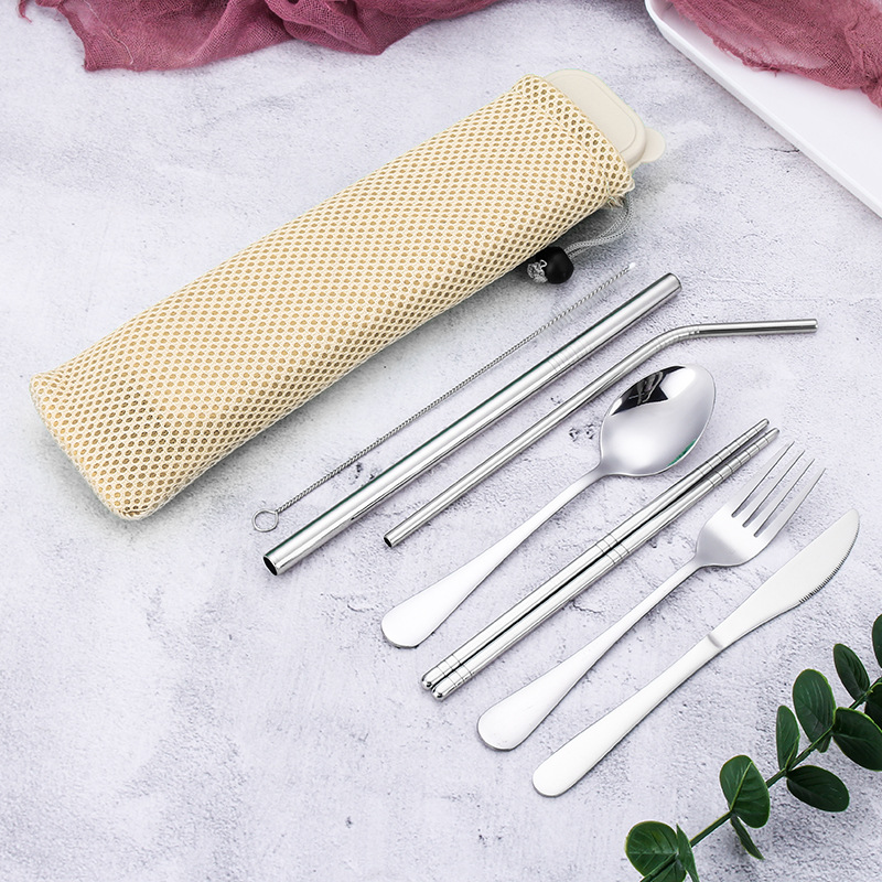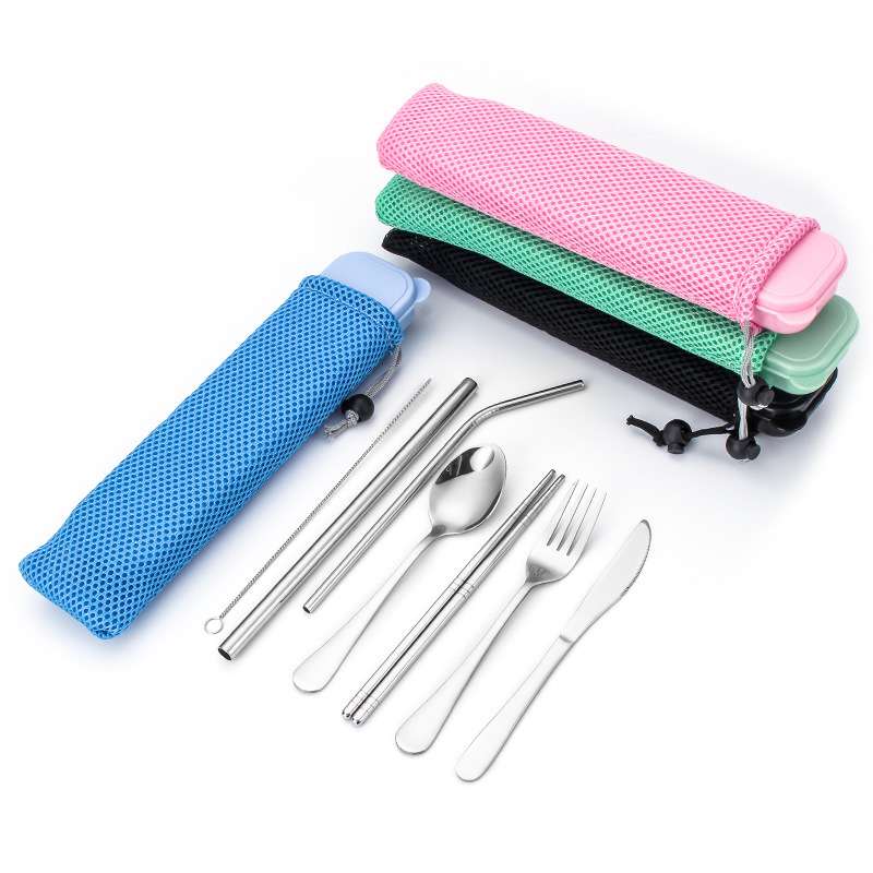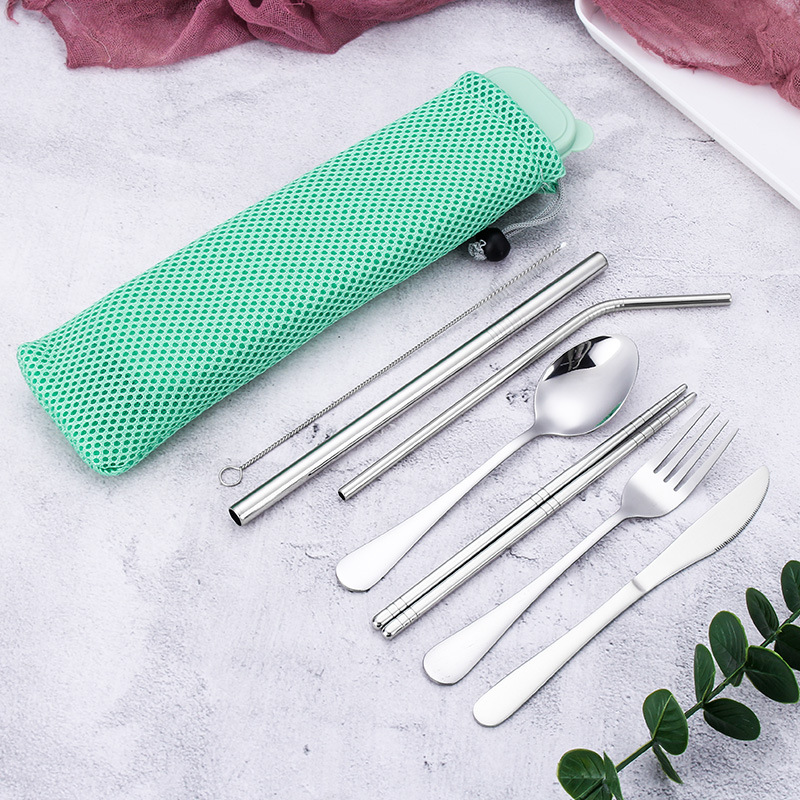 跨境便携式304不锈钢餐具刀叉勺筷子吸管户外礼品七件套餐具套装