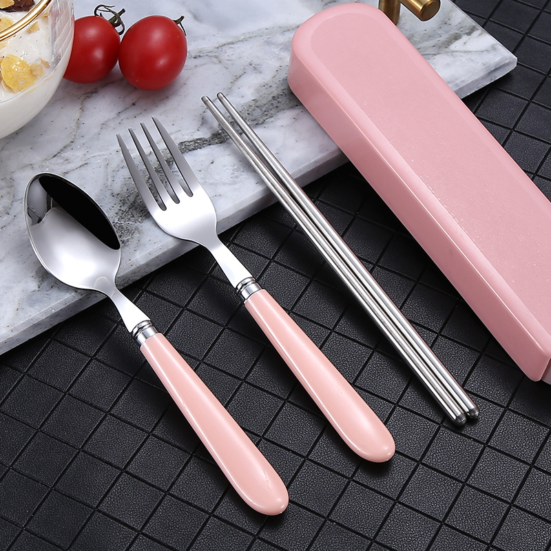 410不锈钢筷子餐具便携式学生上班族三件套勺子叉子收纳盒套装