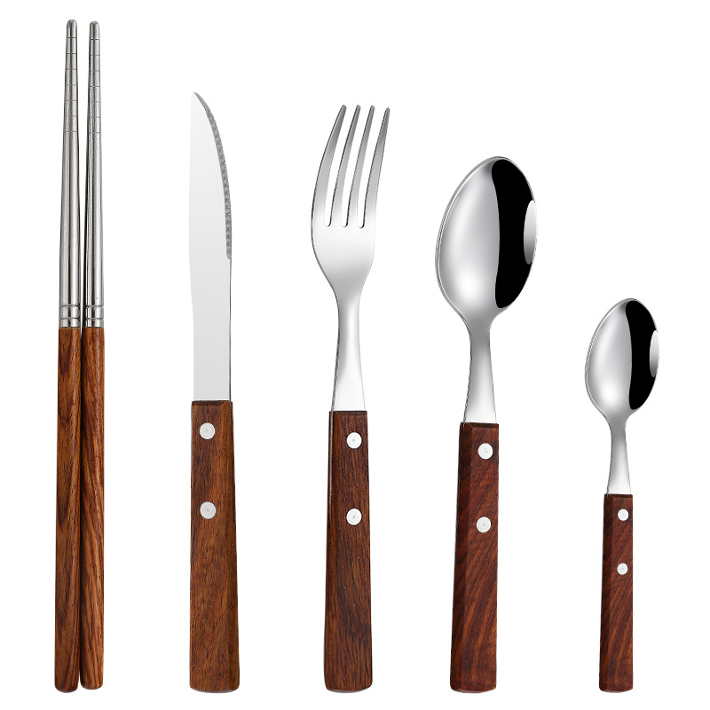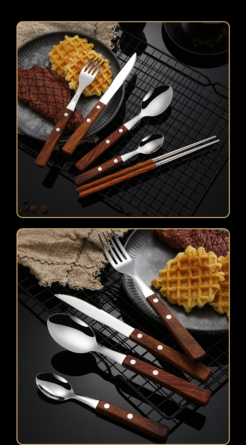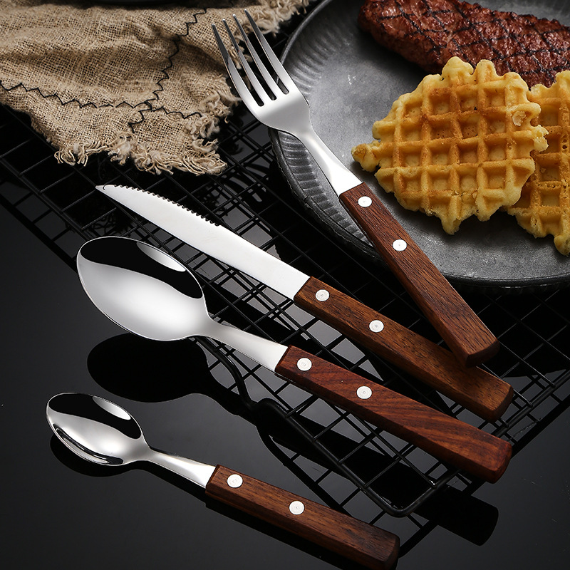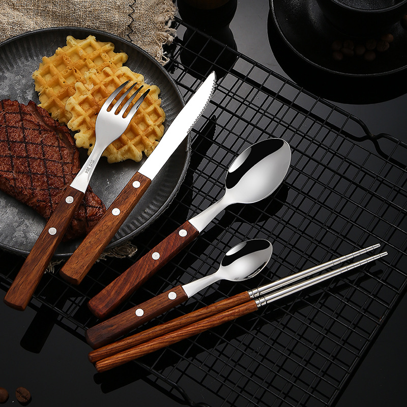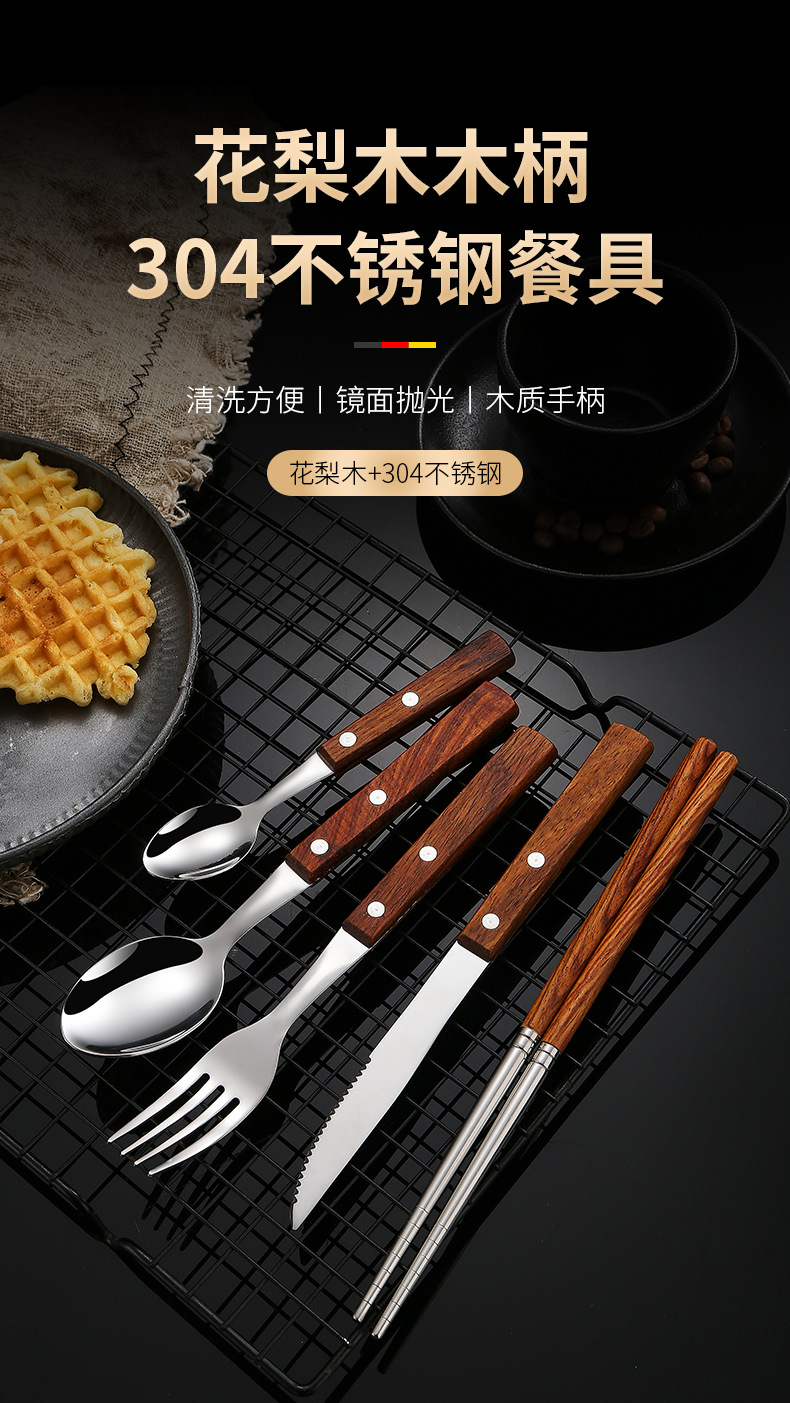 304不锈钢 花梨木夹柄刀叉勺西餐具酒店牛排刀叉勺甜品勺木筷子