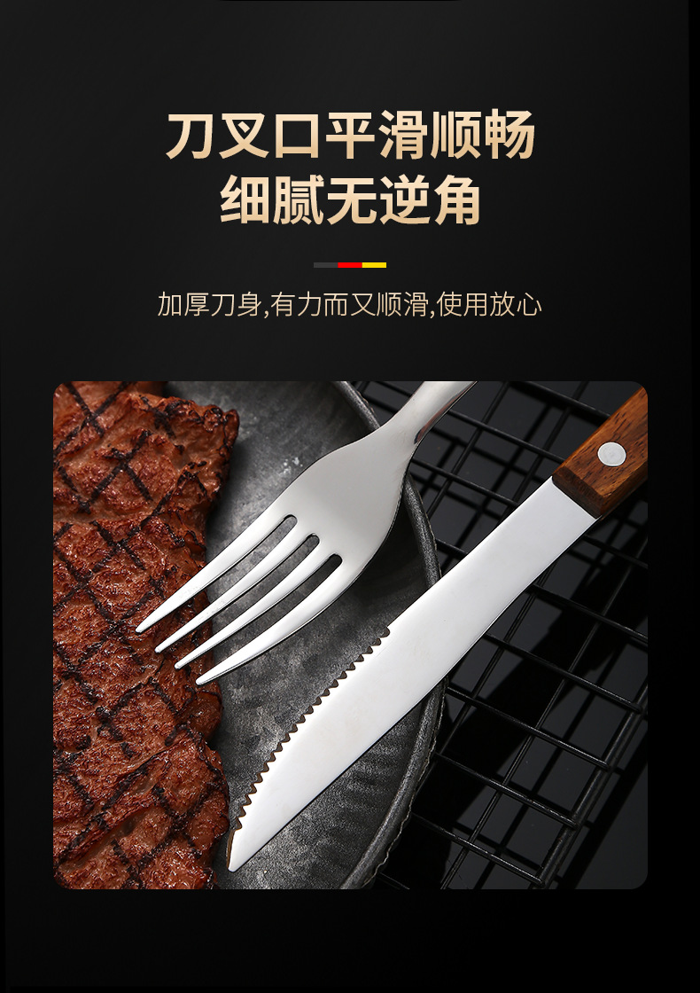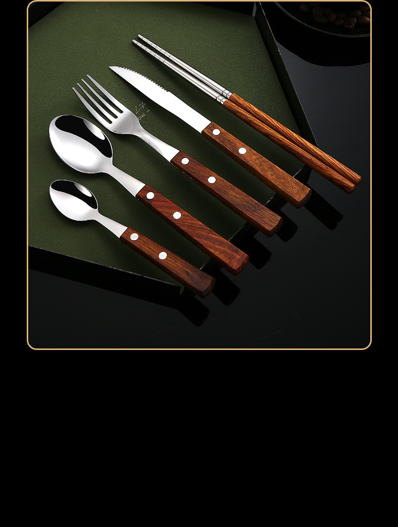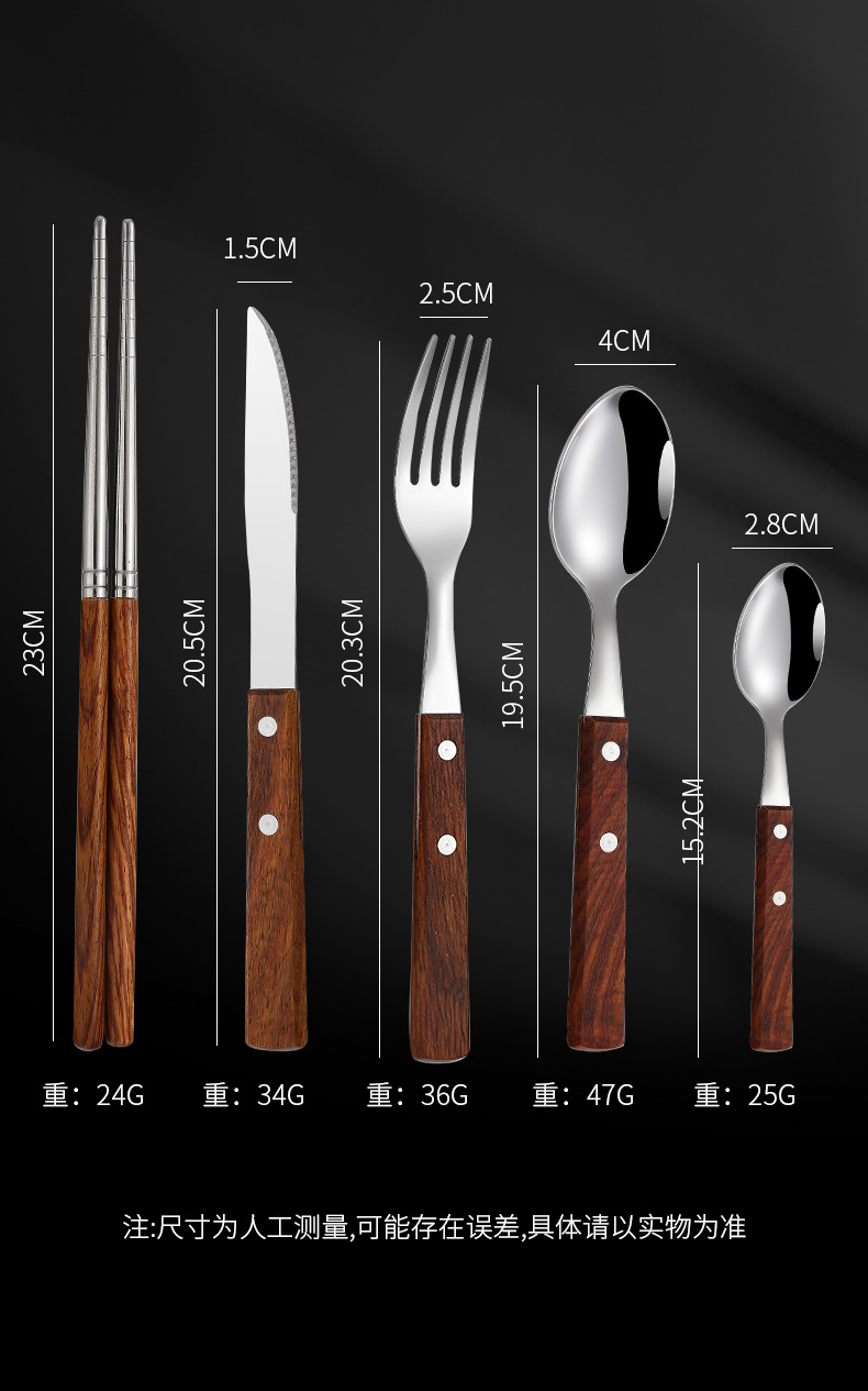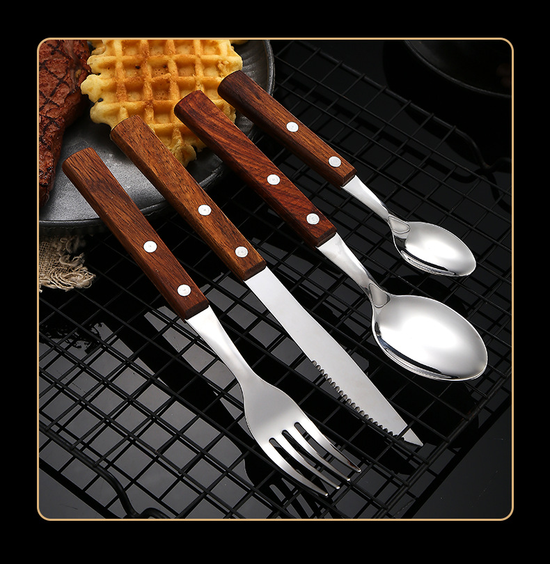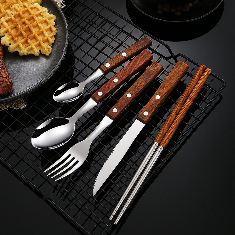 304不锈钢 花梨木夹柄刀叉勺西餐具酒店牛排刀叉勺甜品勺木筷子
