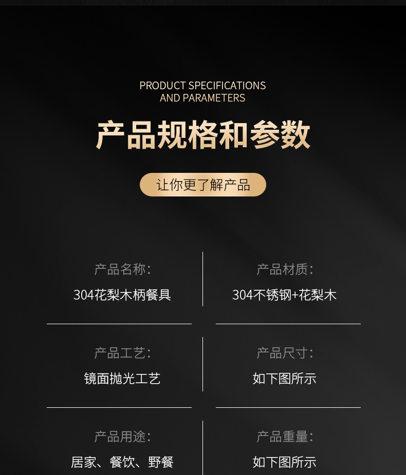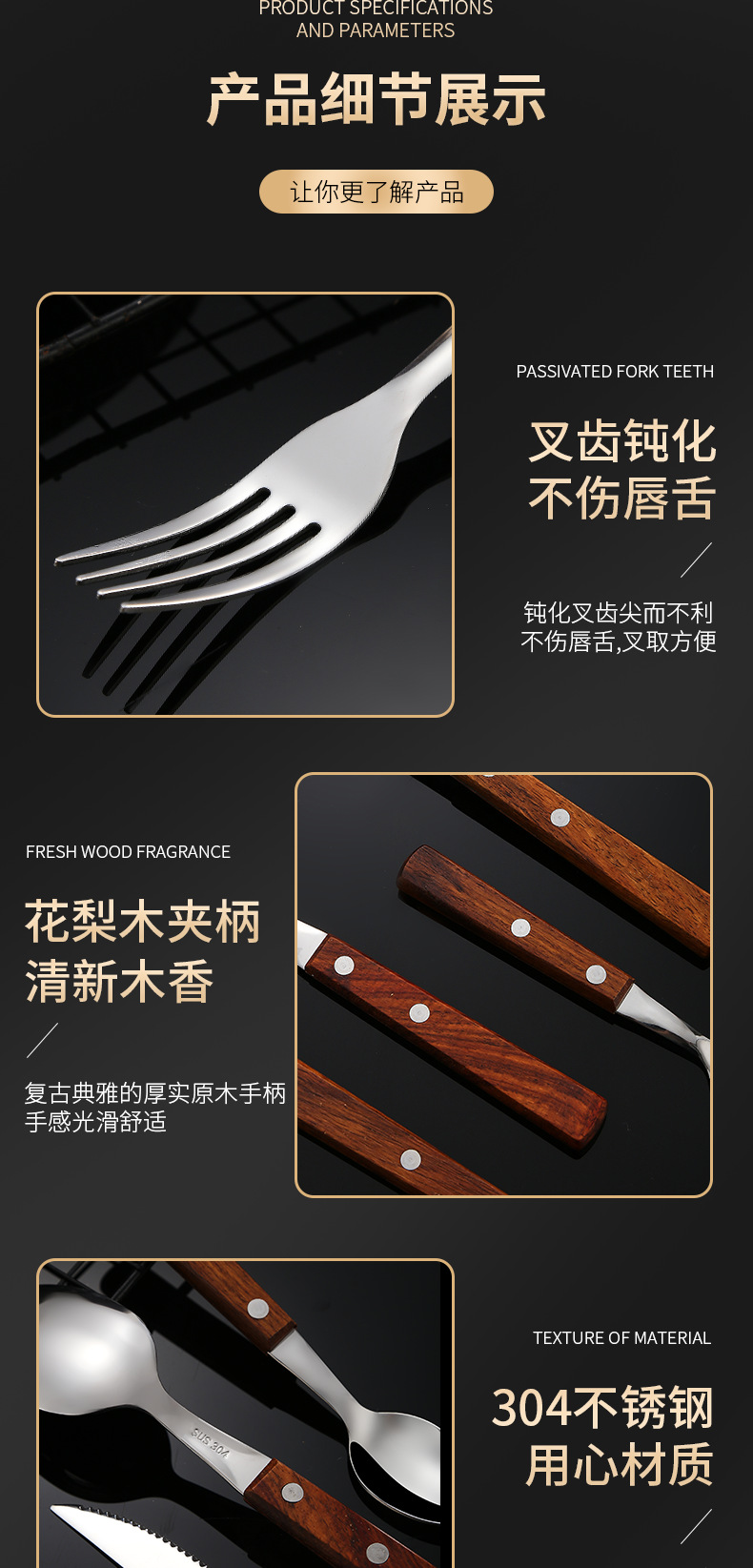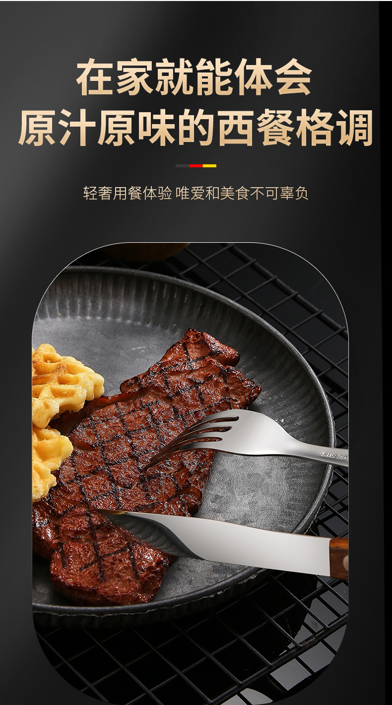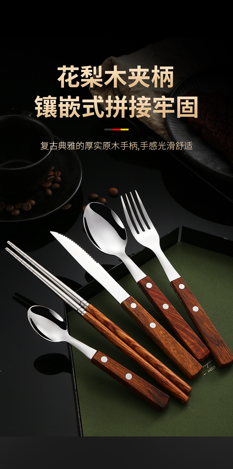 304不锈钢 花梨木夹柄刀叉勺西餐具酒店牛排刀叉勺甜品勺木筷子