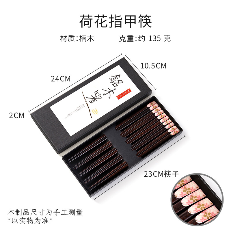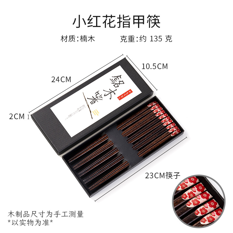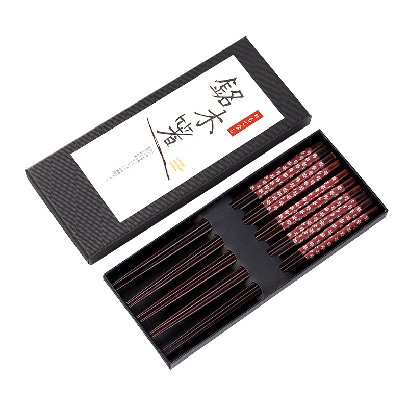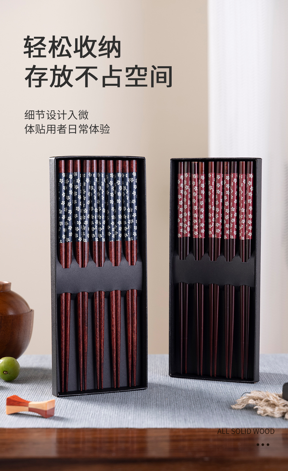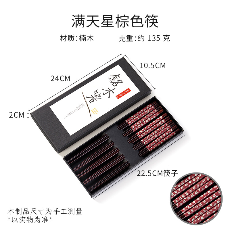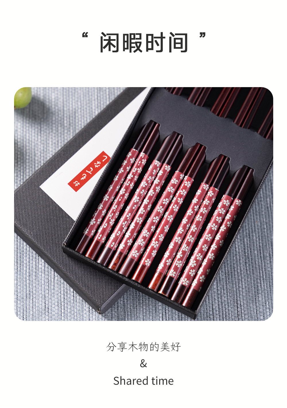 餐具木质筷子日式餐具樱花筷筷子套装家用一盒五双木筷套装木筷子