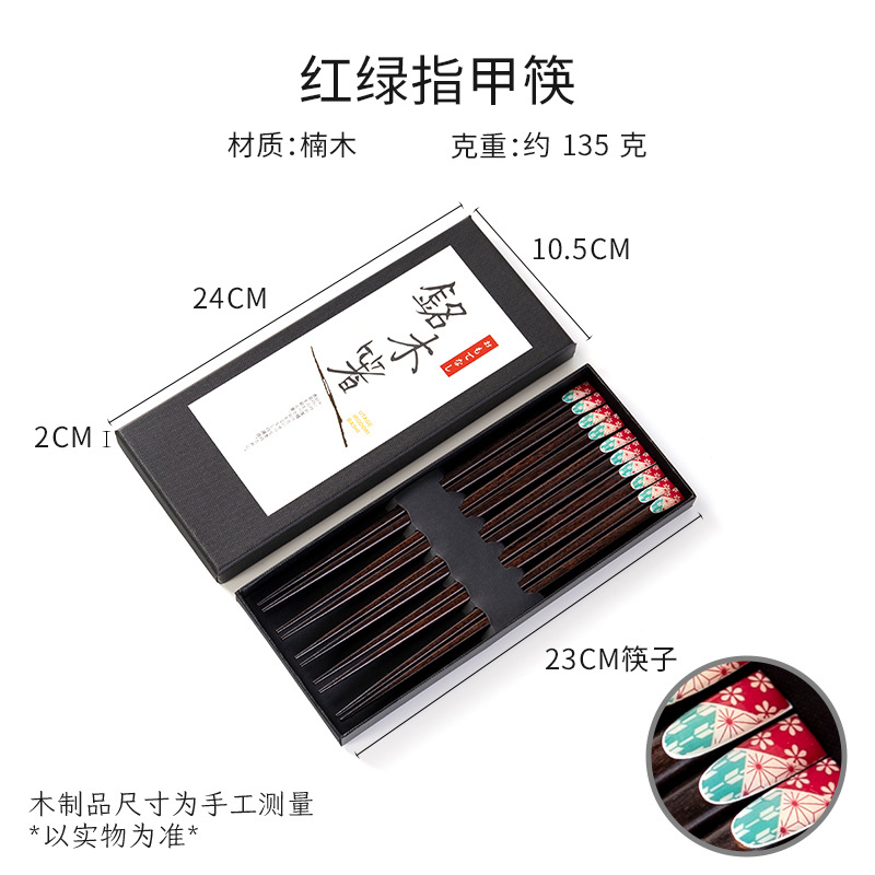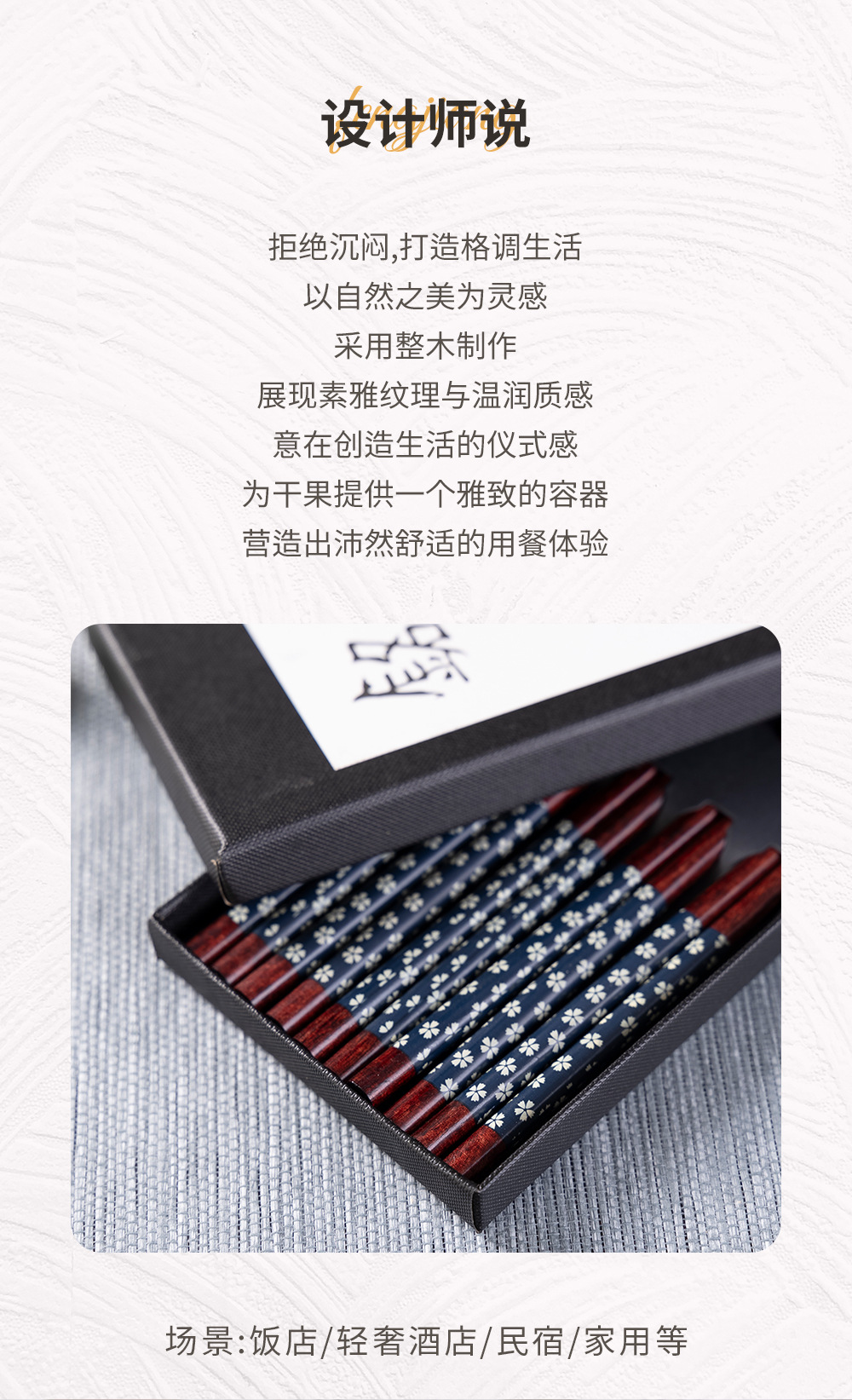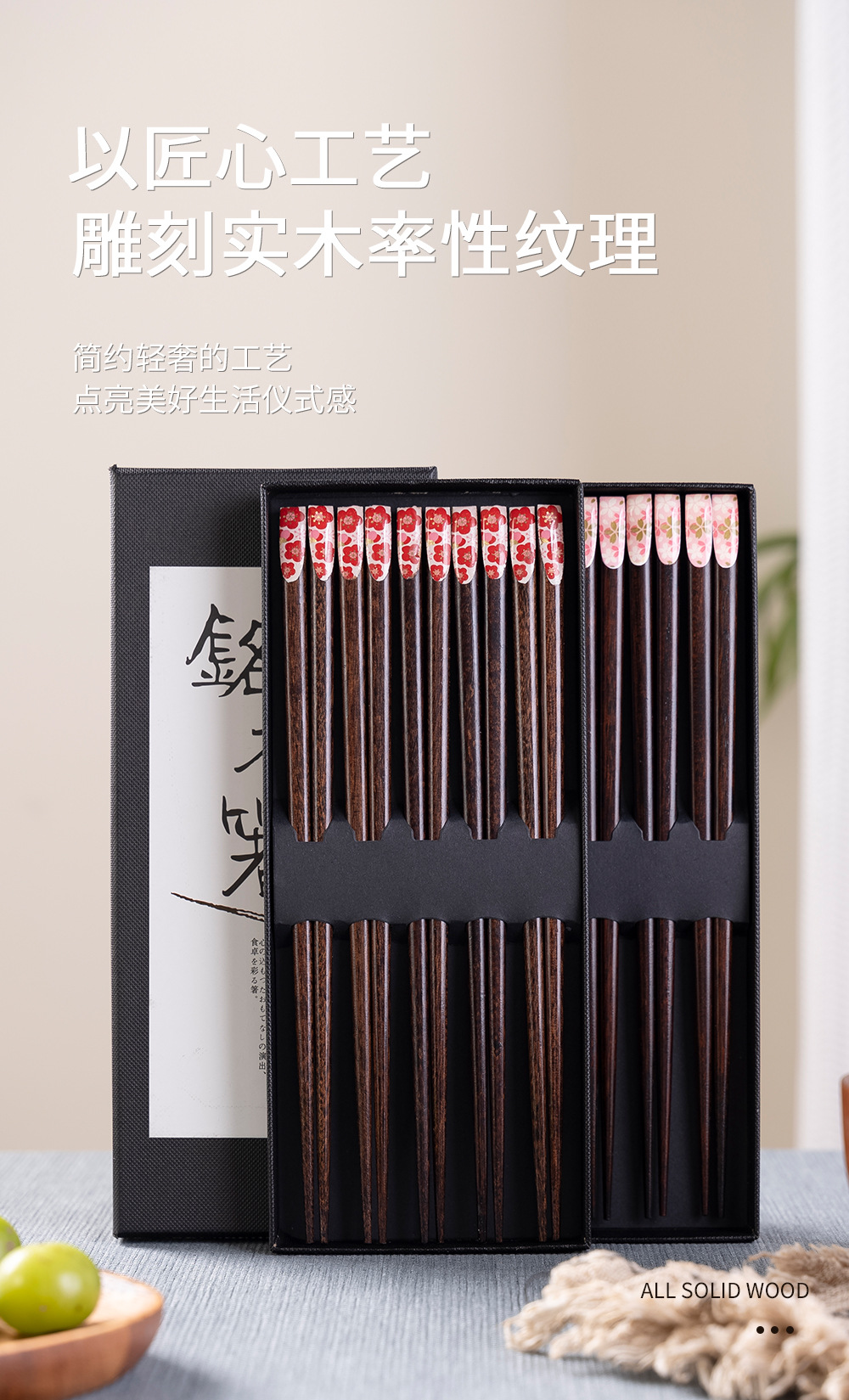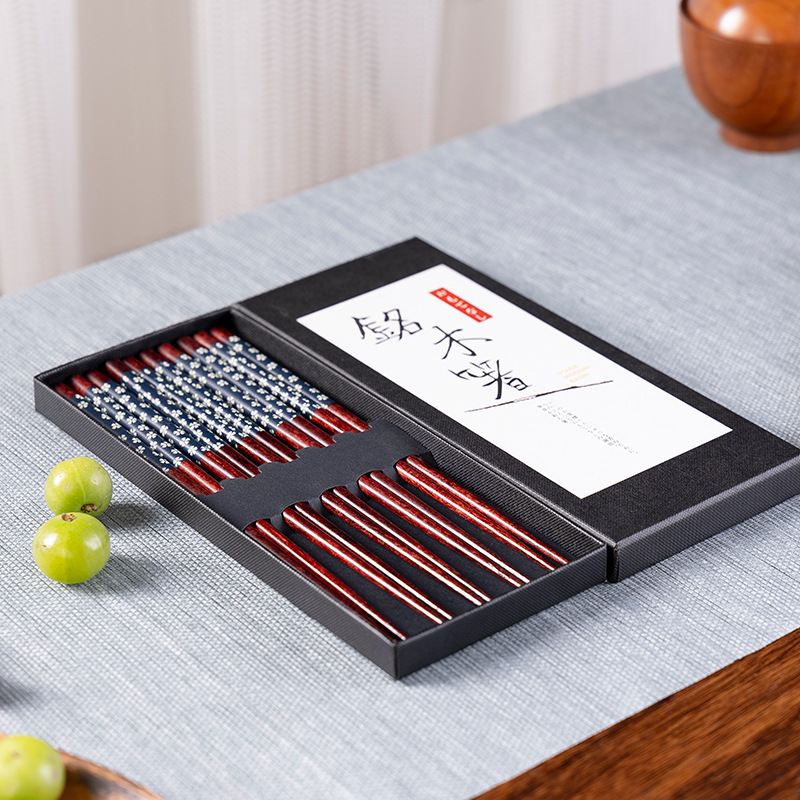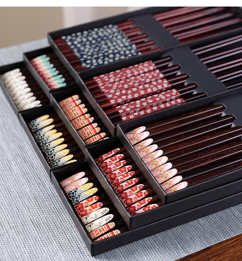 餐具木质筷子日式餐具樱花筷筷子套装家用一盒五双木筷套装木筷子