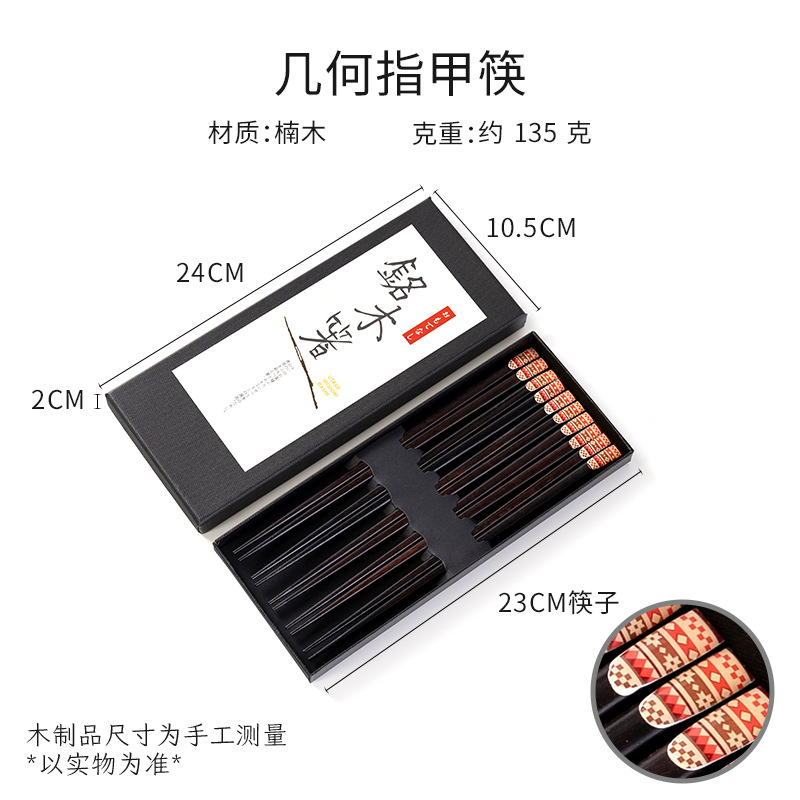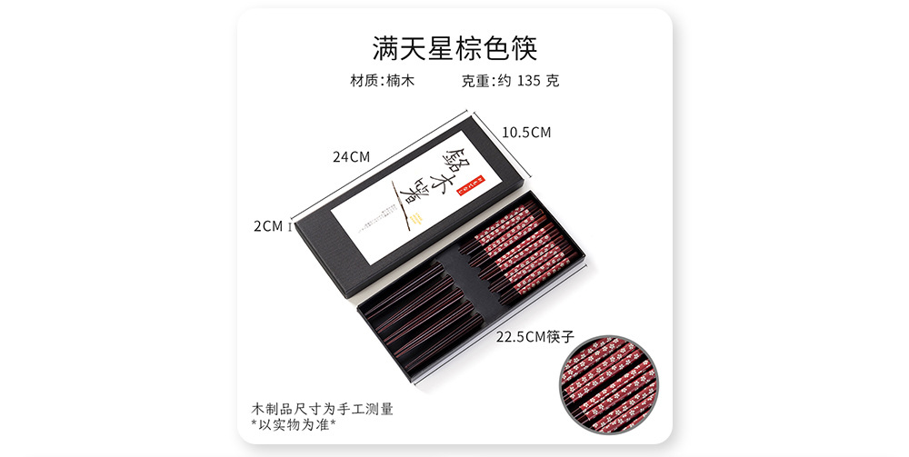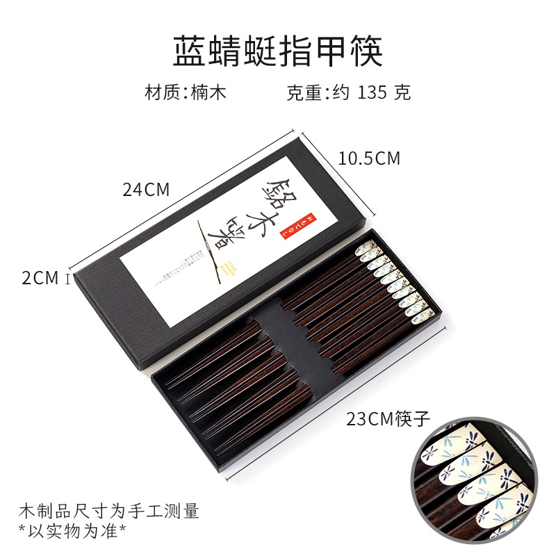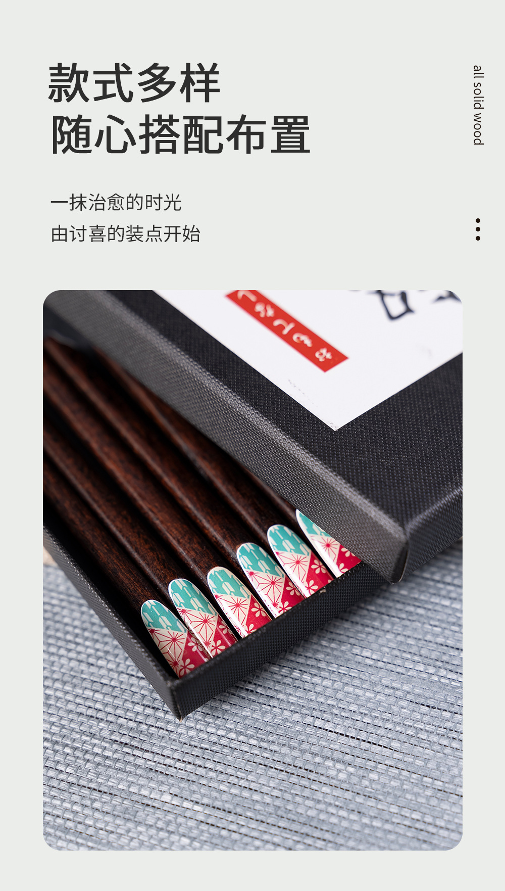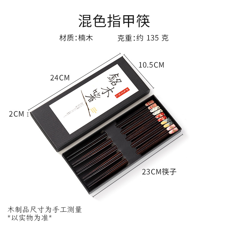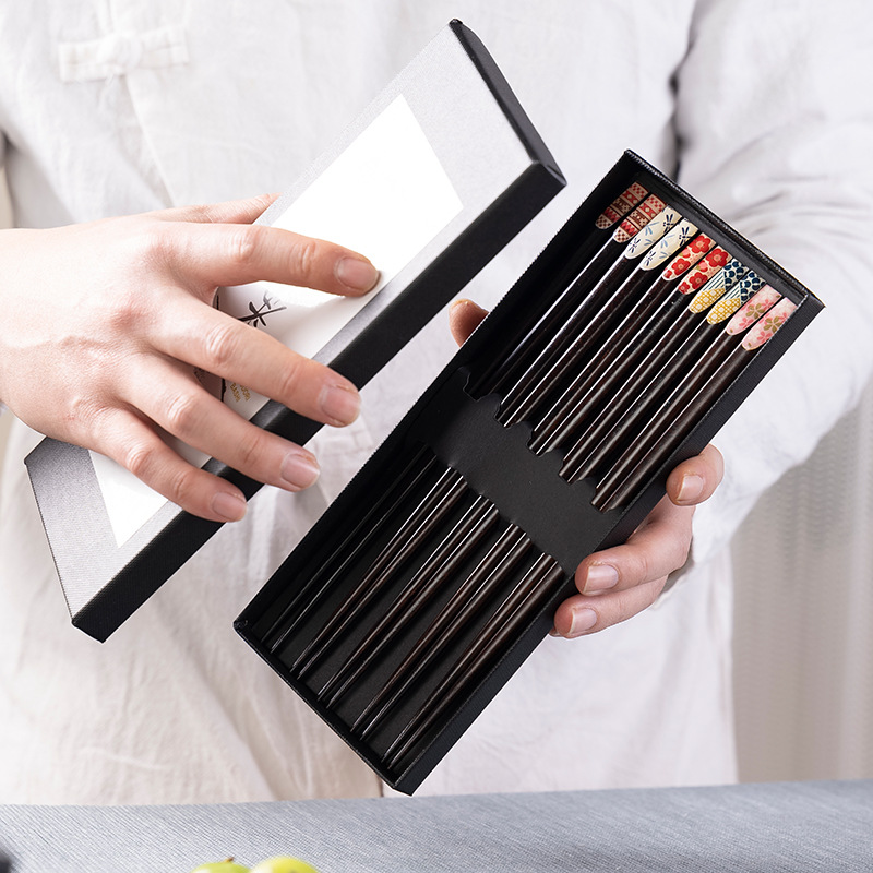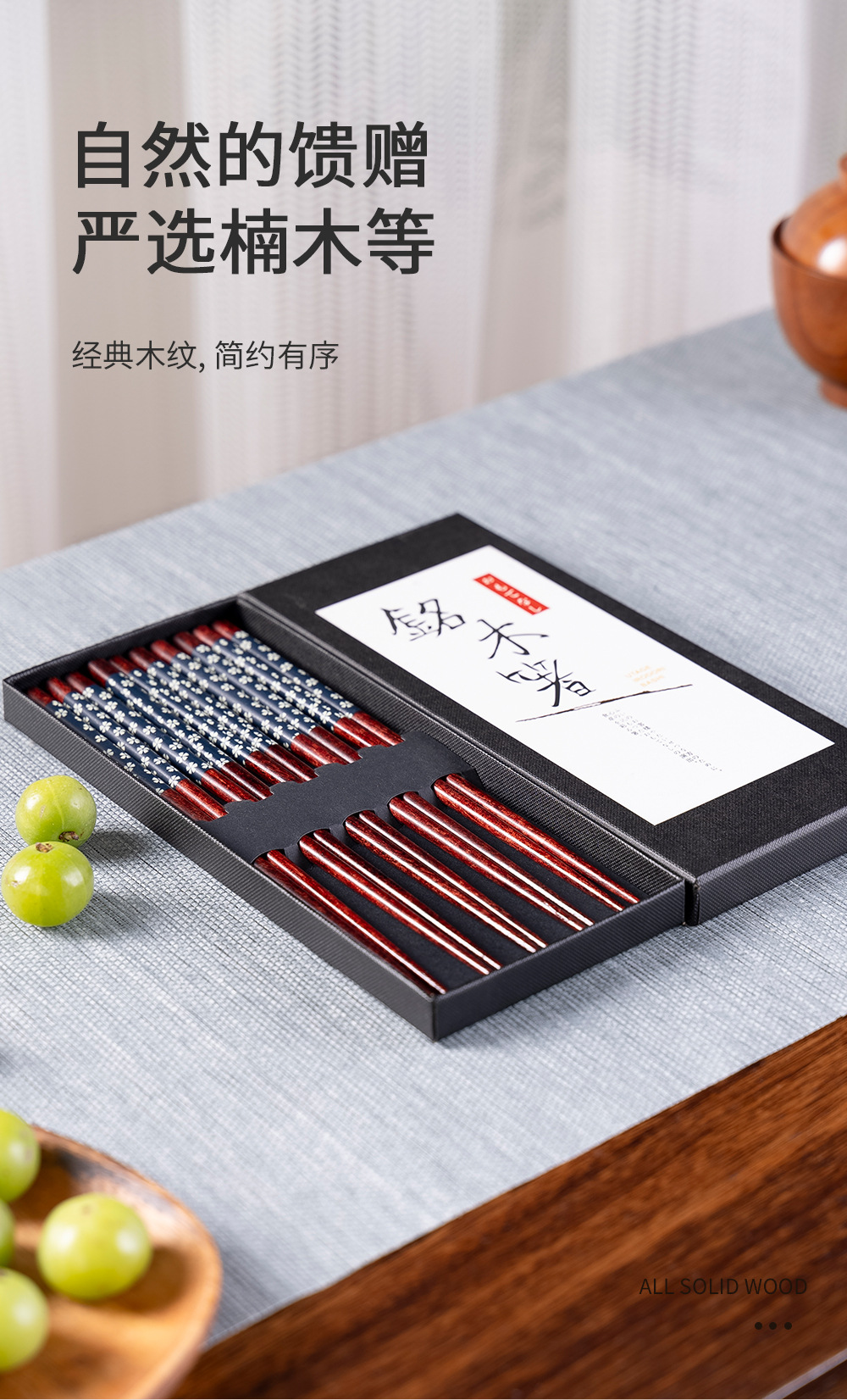 餐具木质筷子日式餐具樱花筷筷子套装家用一盒五双木筷套装木筷子