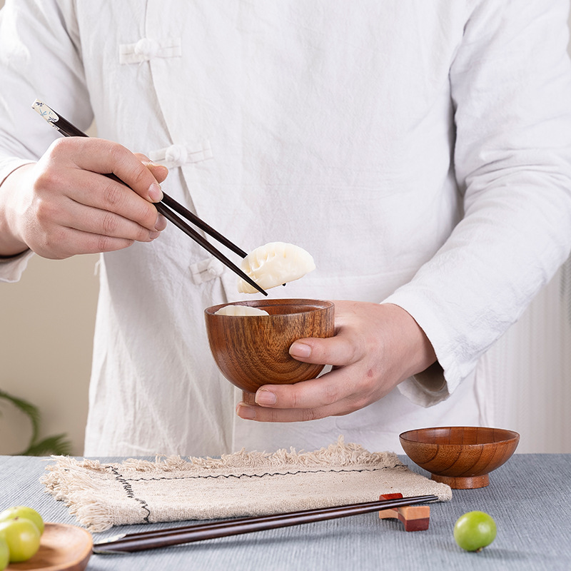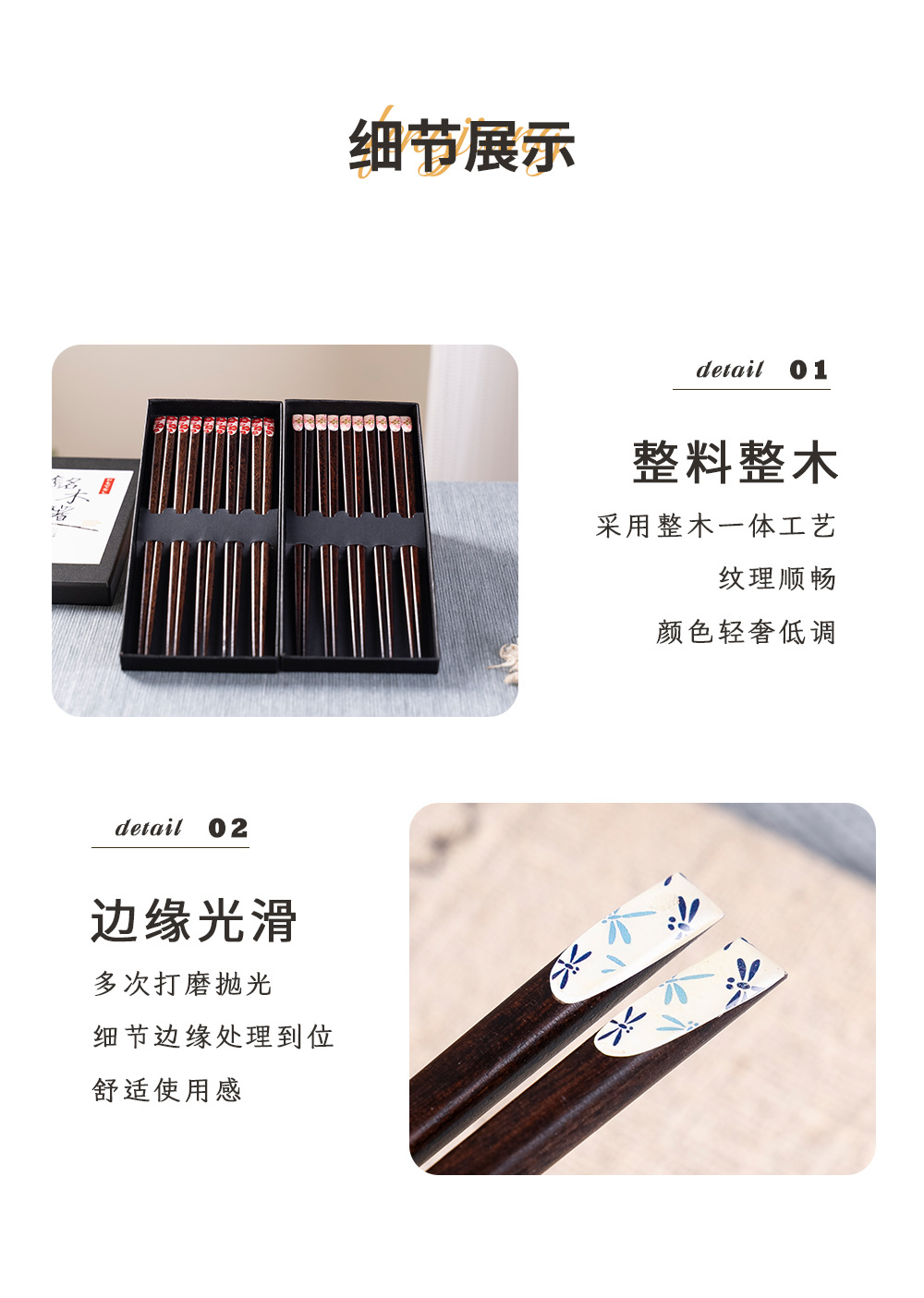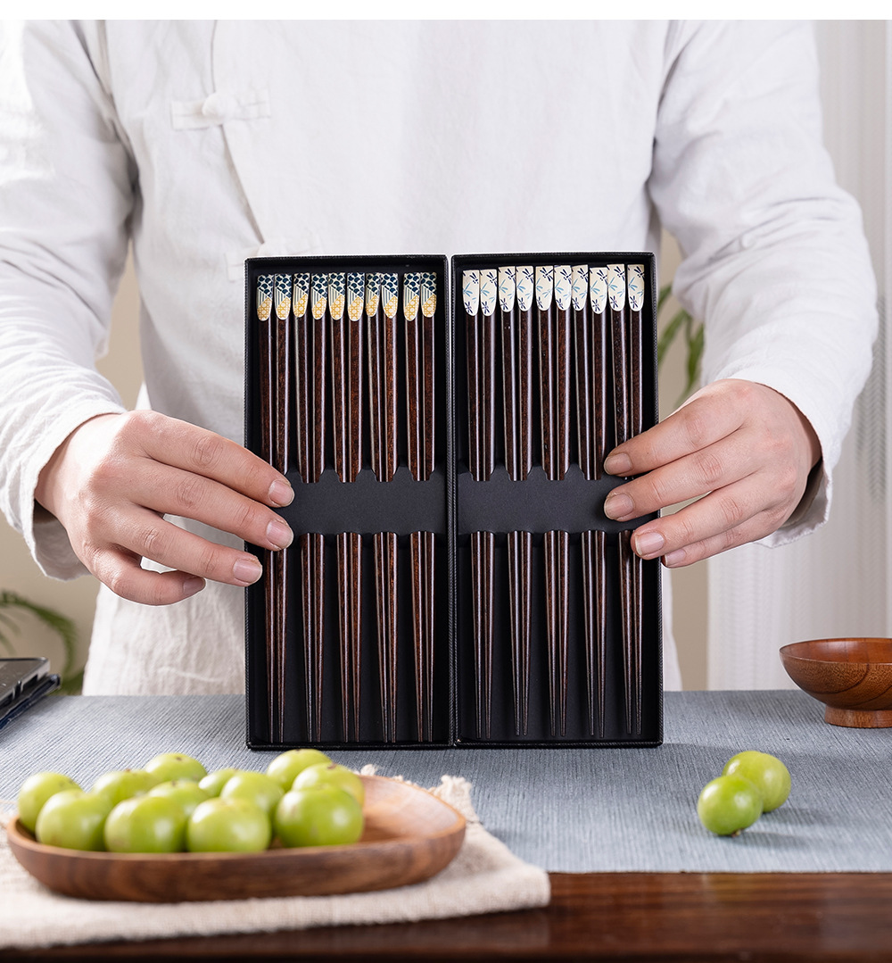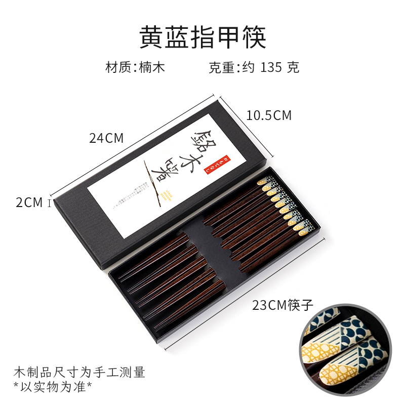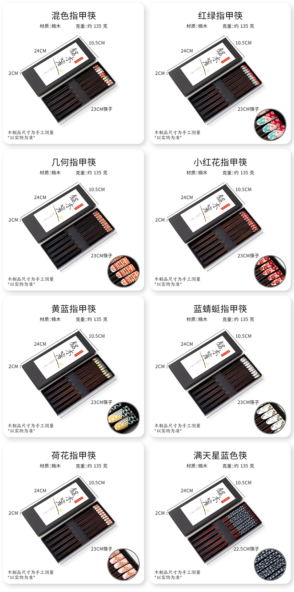 餐具木质筷子日式餐具樱花筷筷子套装家用一盒五双木筷套装木筷子