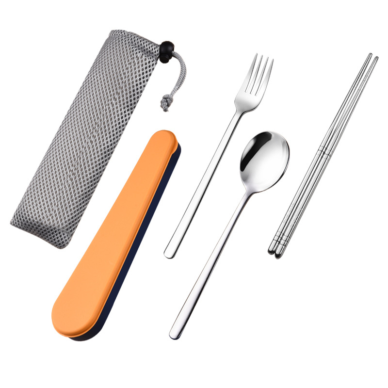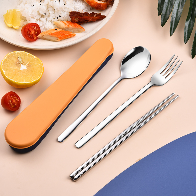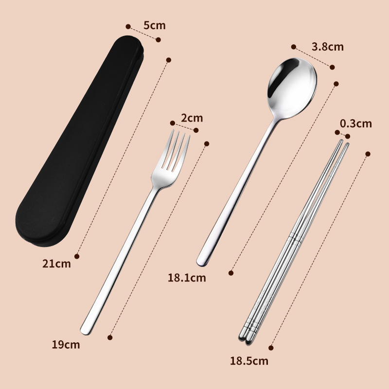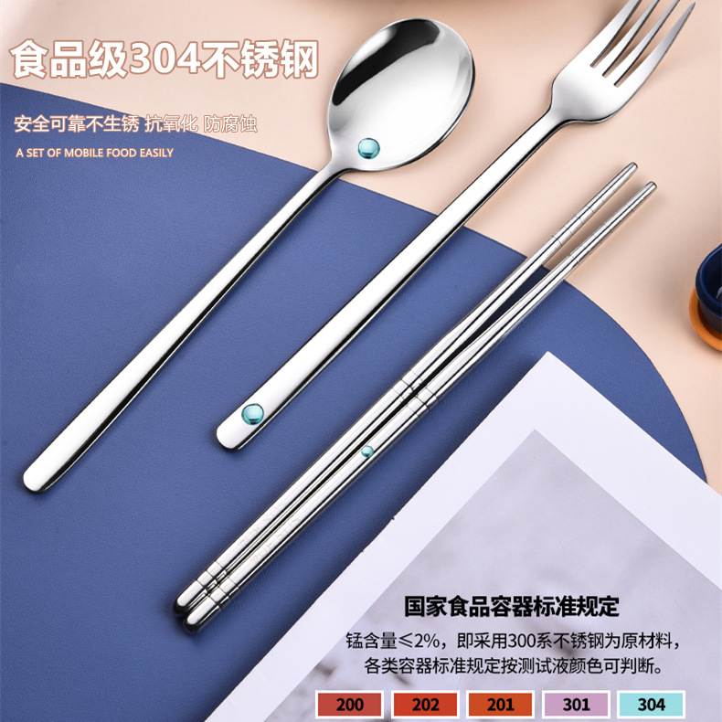 304不锈钢便携餐具叉子勺子筷子三件套收纳盒礼品学生餐具套装