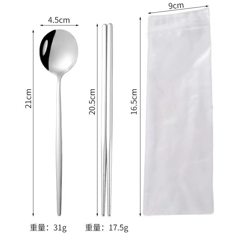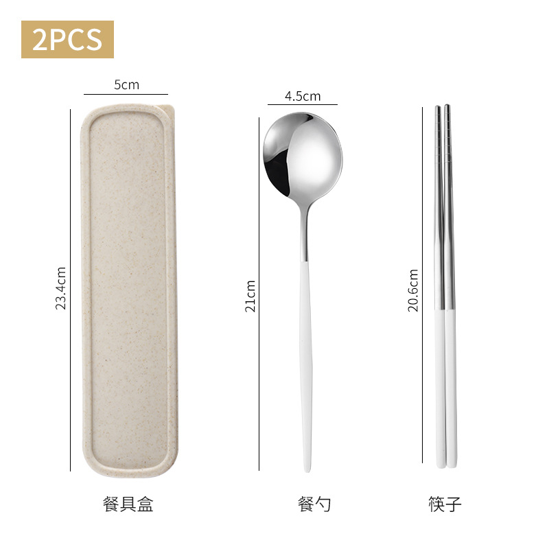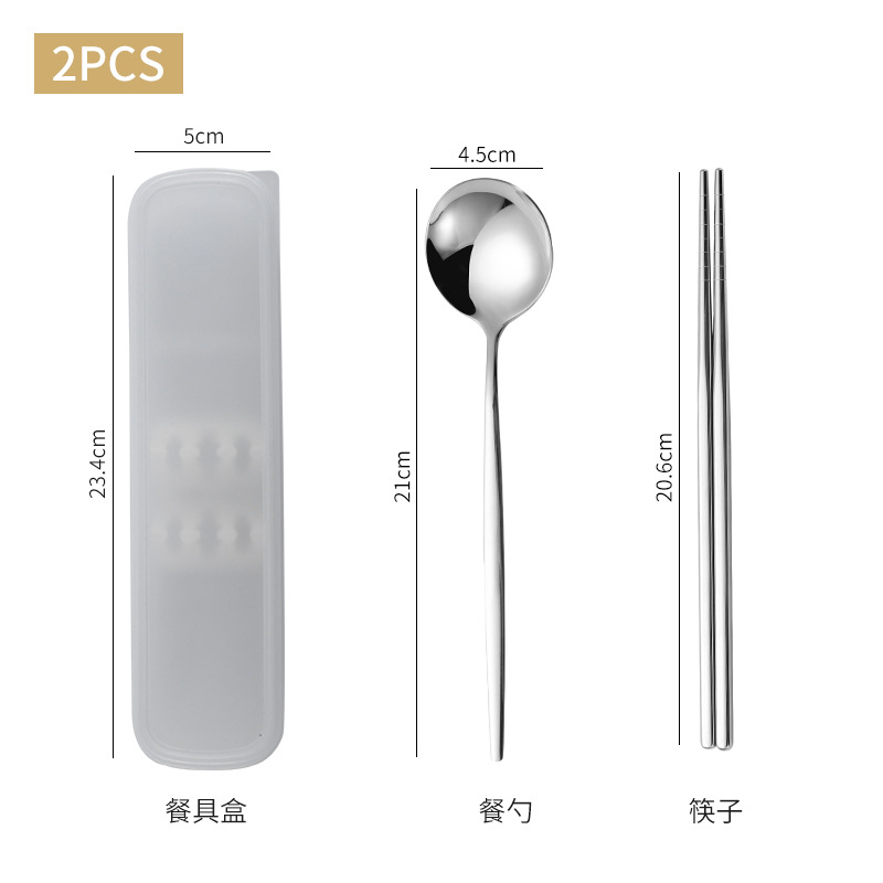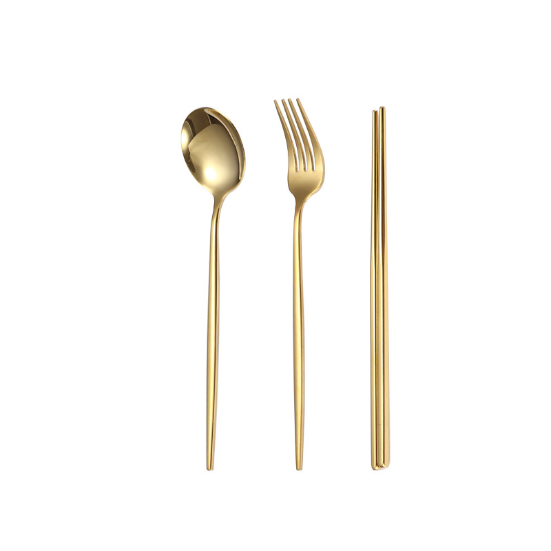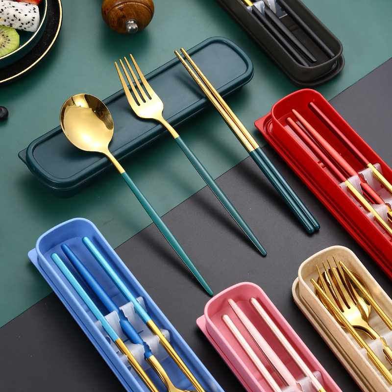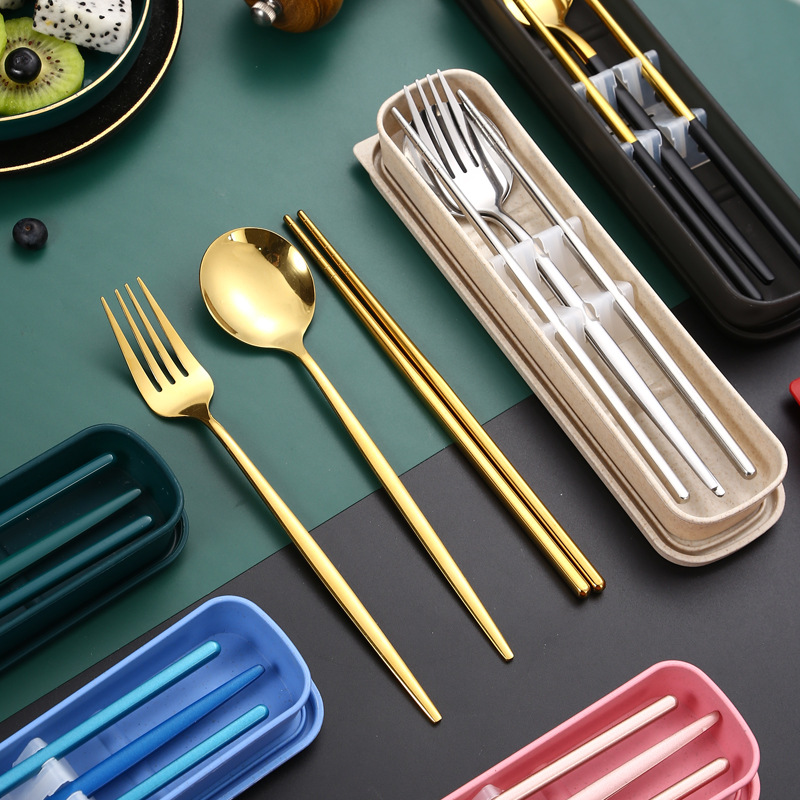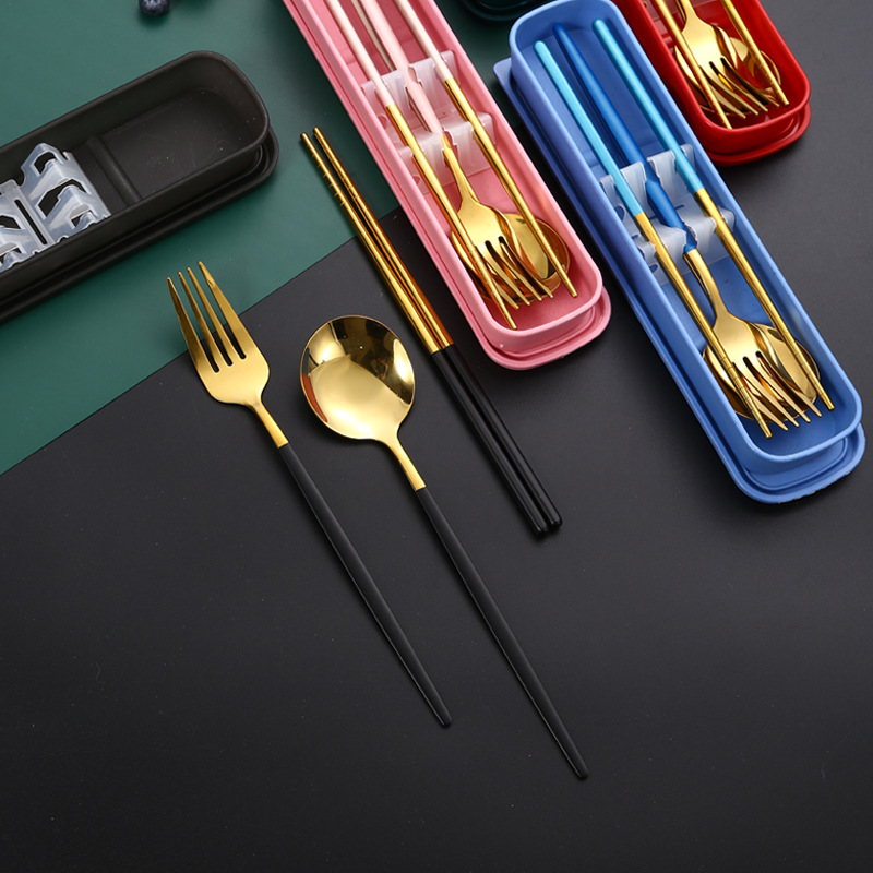 跨境加厚不锈钢餐具三件套葡萄牙筷子勺子叉子套装学生便携餐具盒