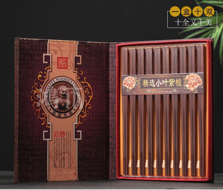 小叶紫檀筷子10双礼盒装木质筷子家用酒店筷子餐具套装批发厂家