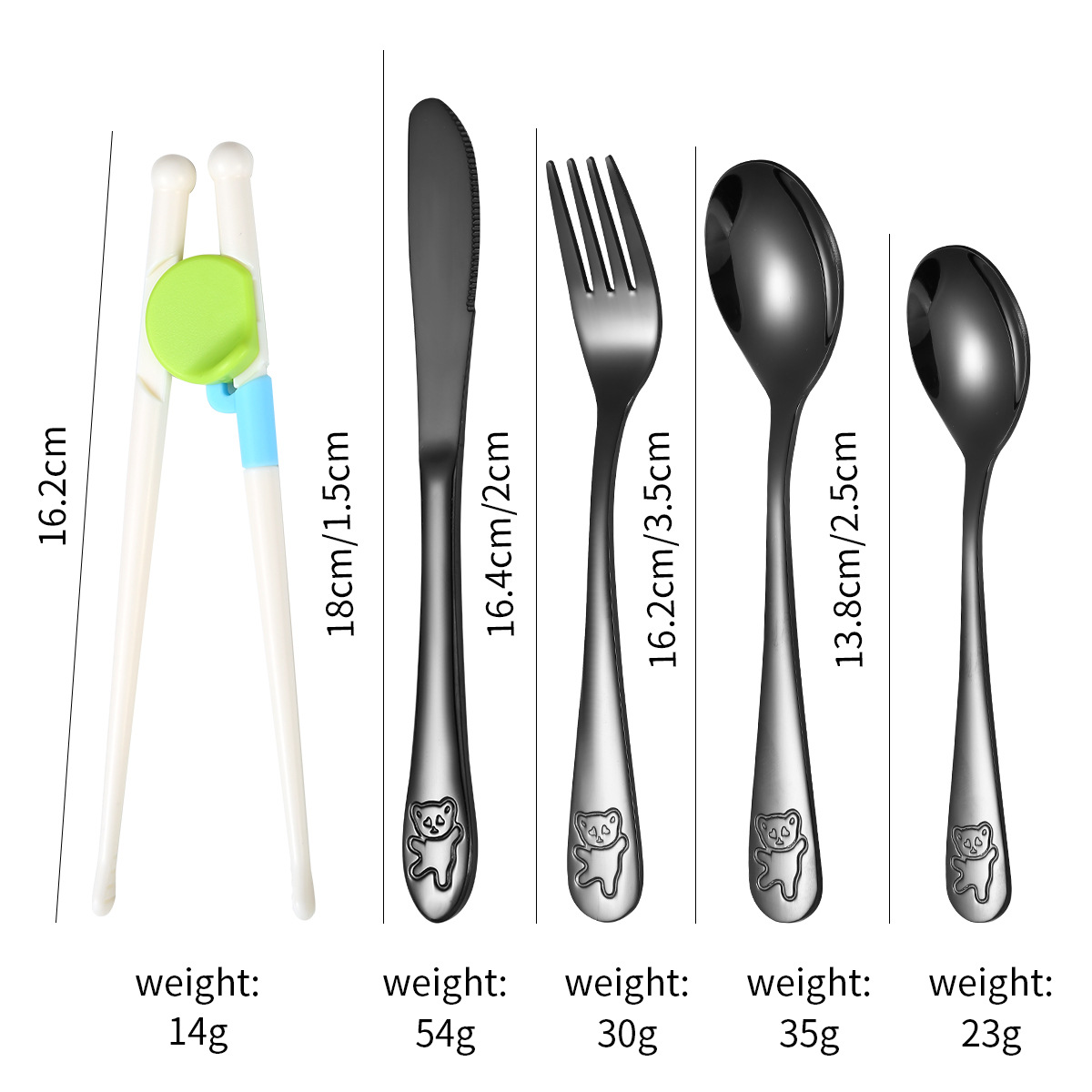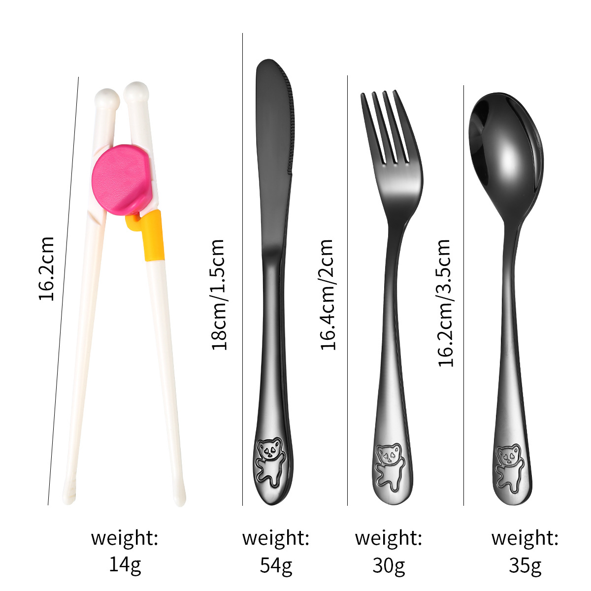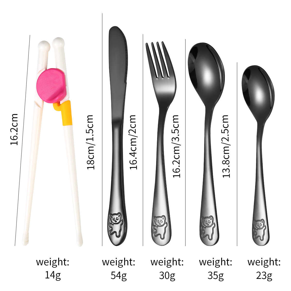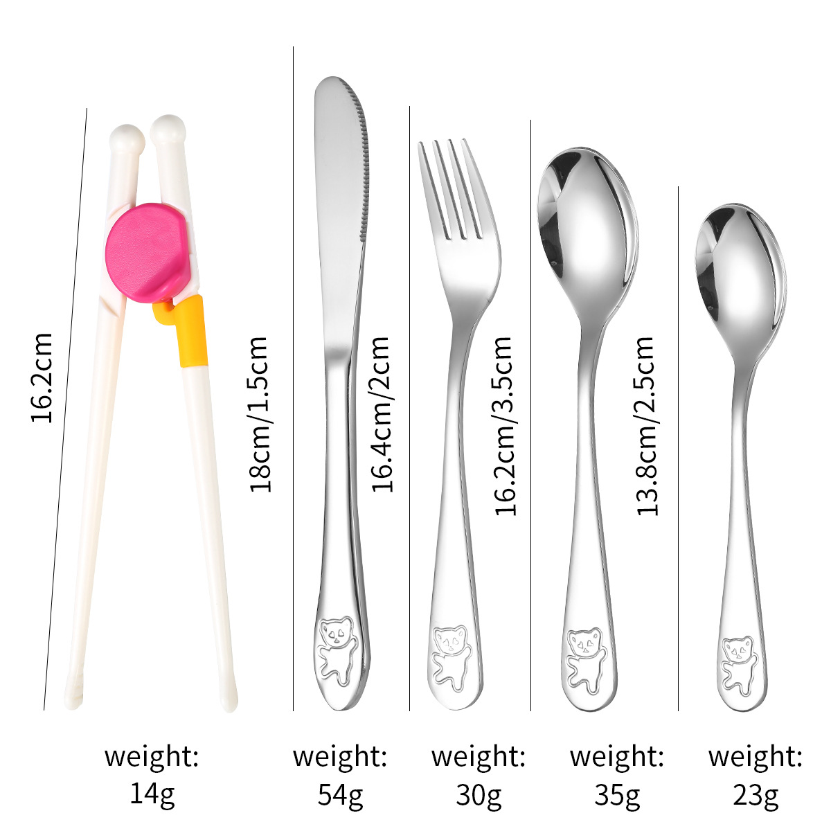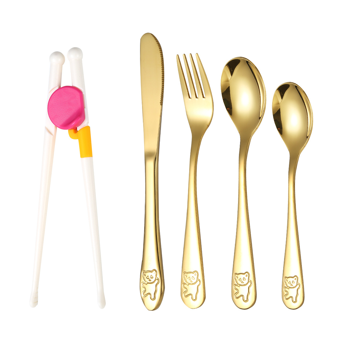 跨境 儿童小熊西餐牛排刀叉训练筷宝宝不锈钢餐具刀叉勺筷子5件套