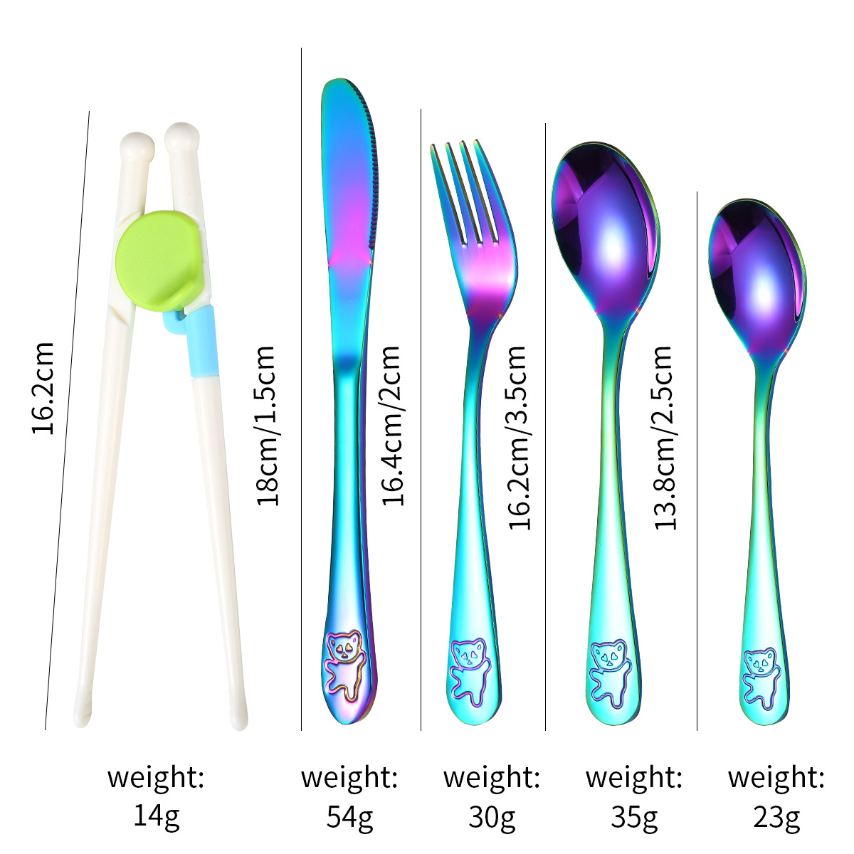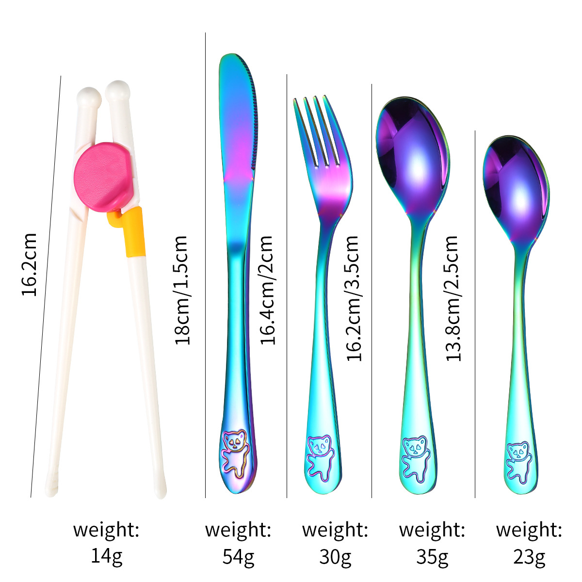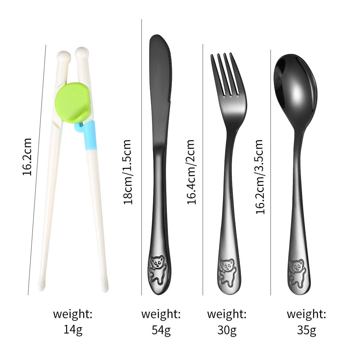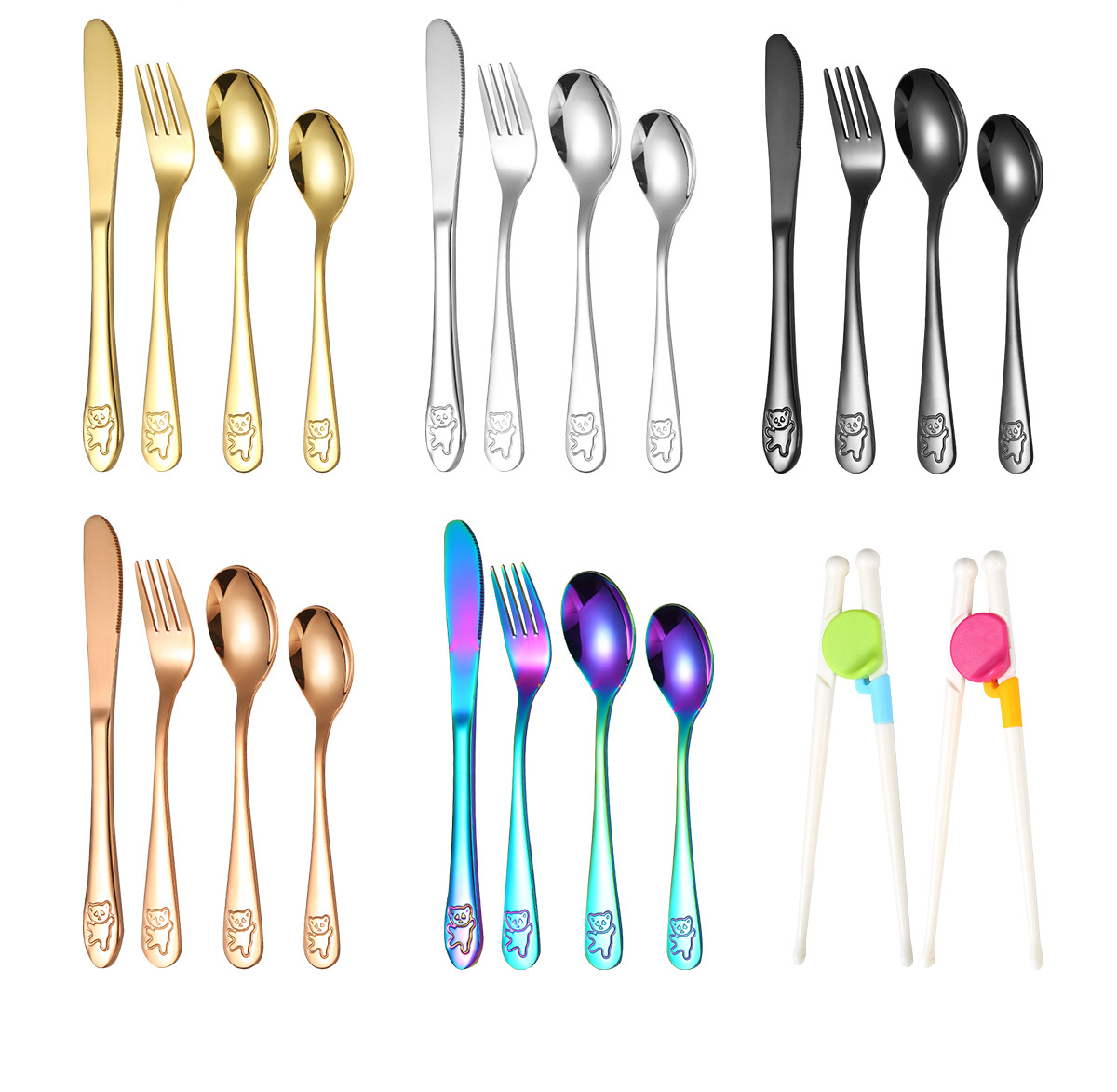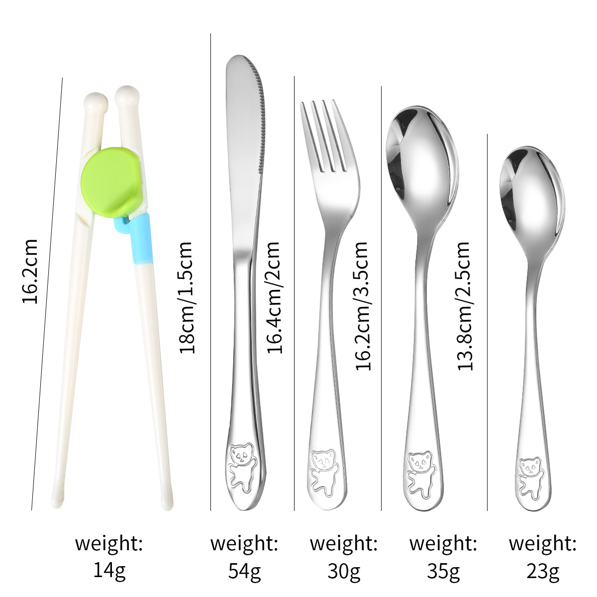 跨境 儿童小熊西餐牛排刀叉训练筷宝宝不锈钢餐具刀叉勺筷子5件套