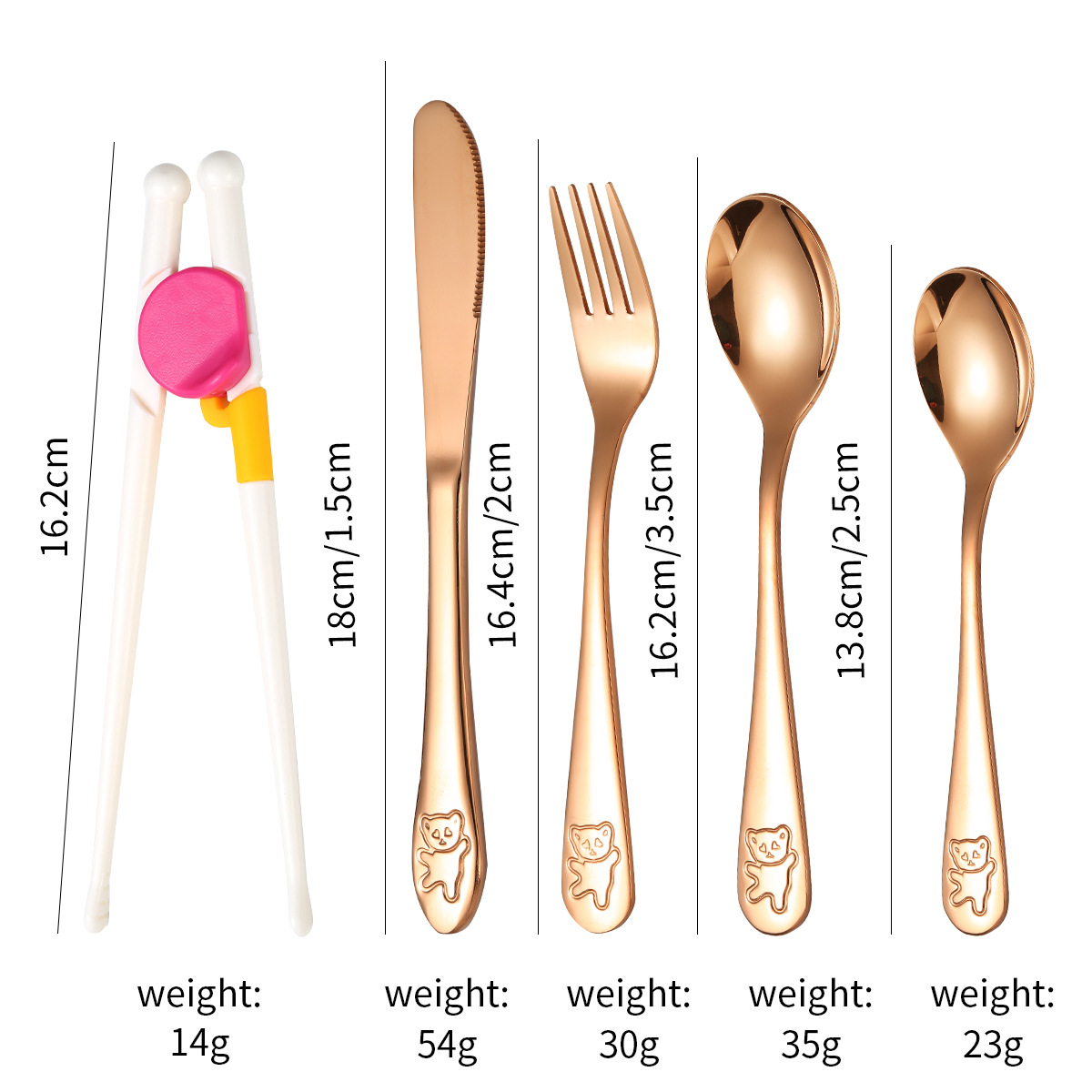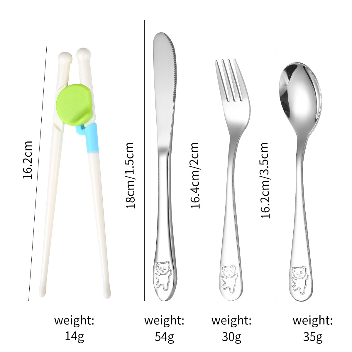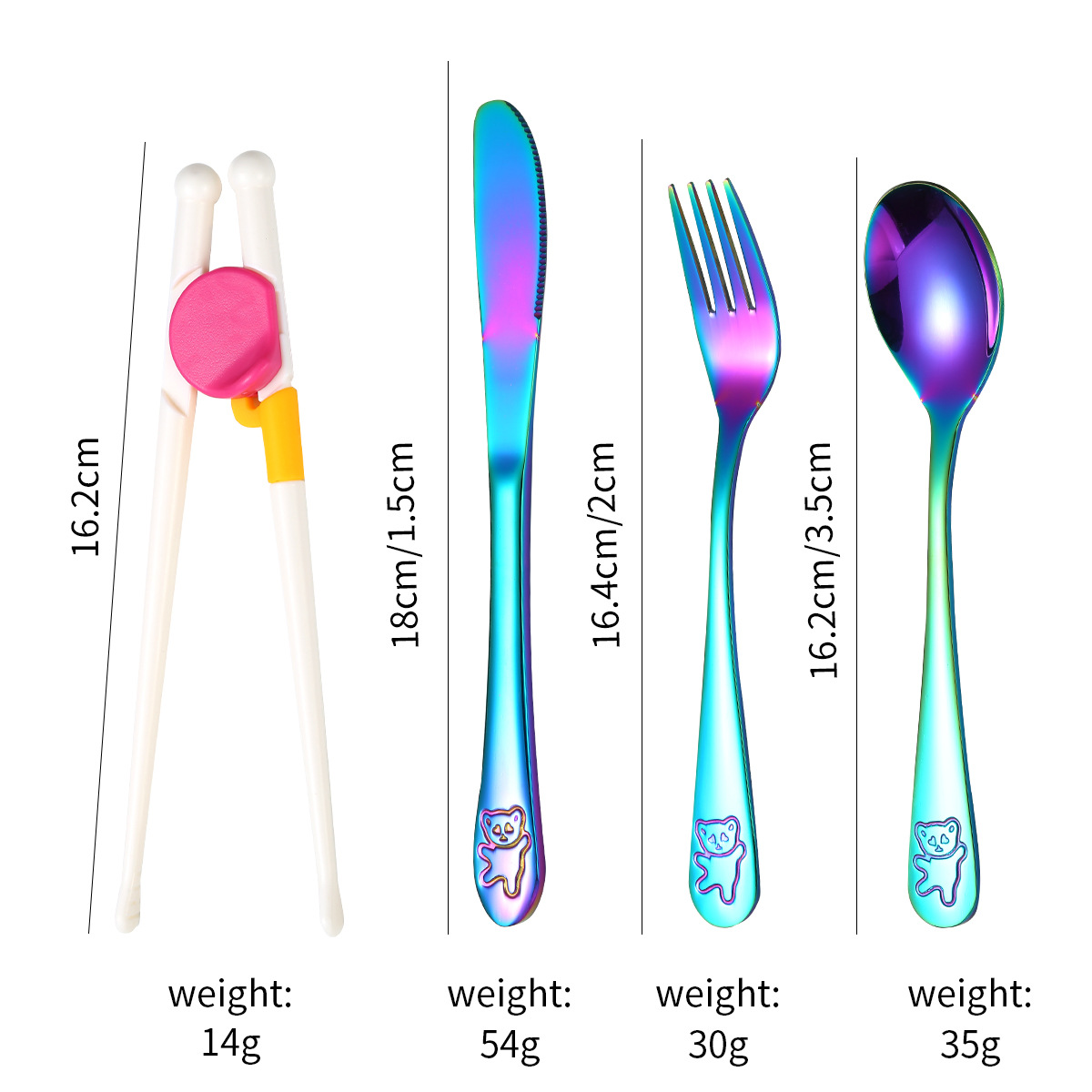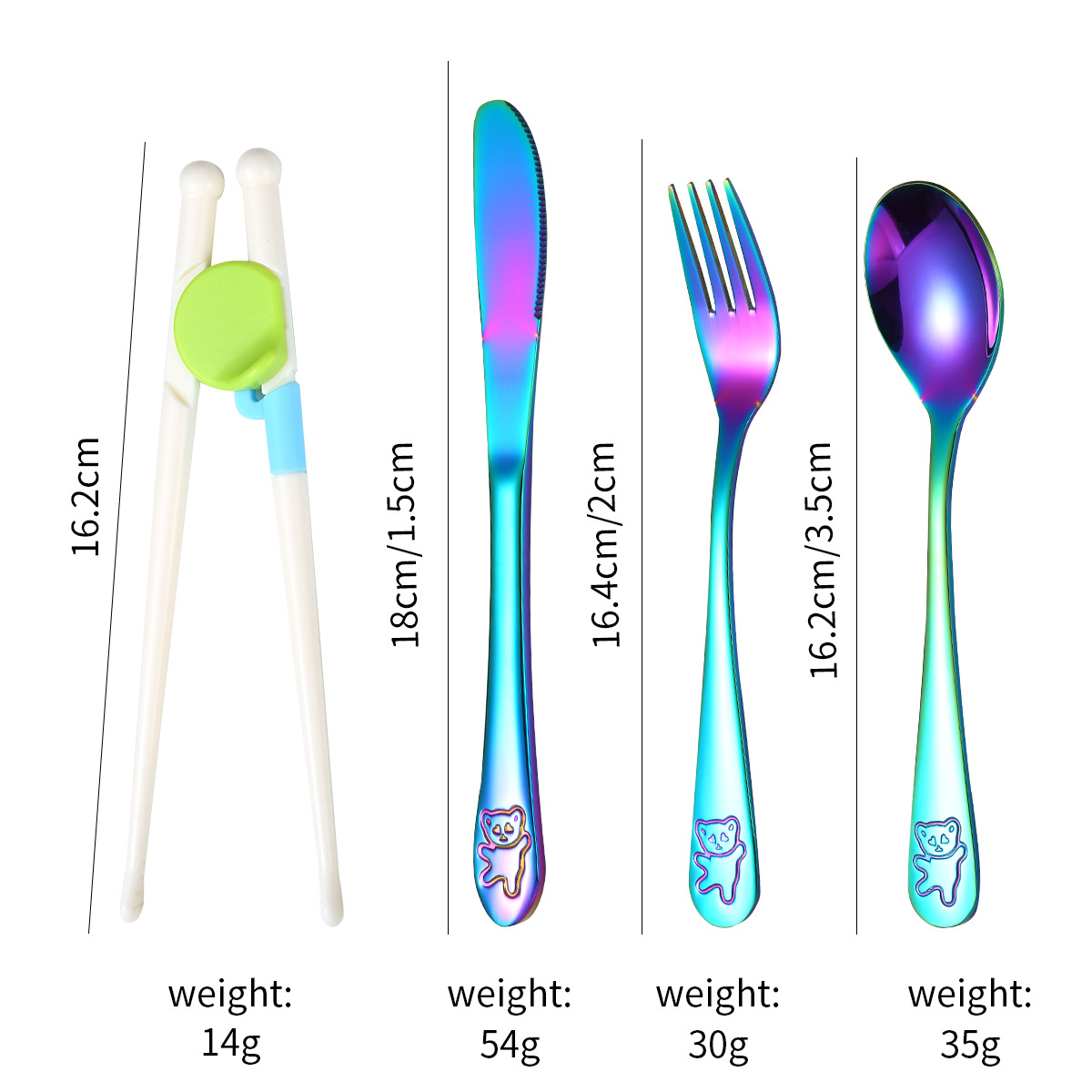 跨境 儿童小熊西餐牛排刀叉训练筷宝宝不锈钢餐具刀叉勺筷子5件套
