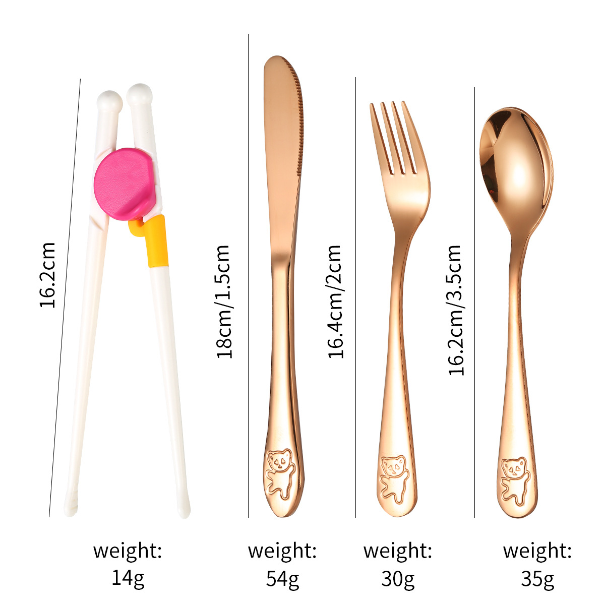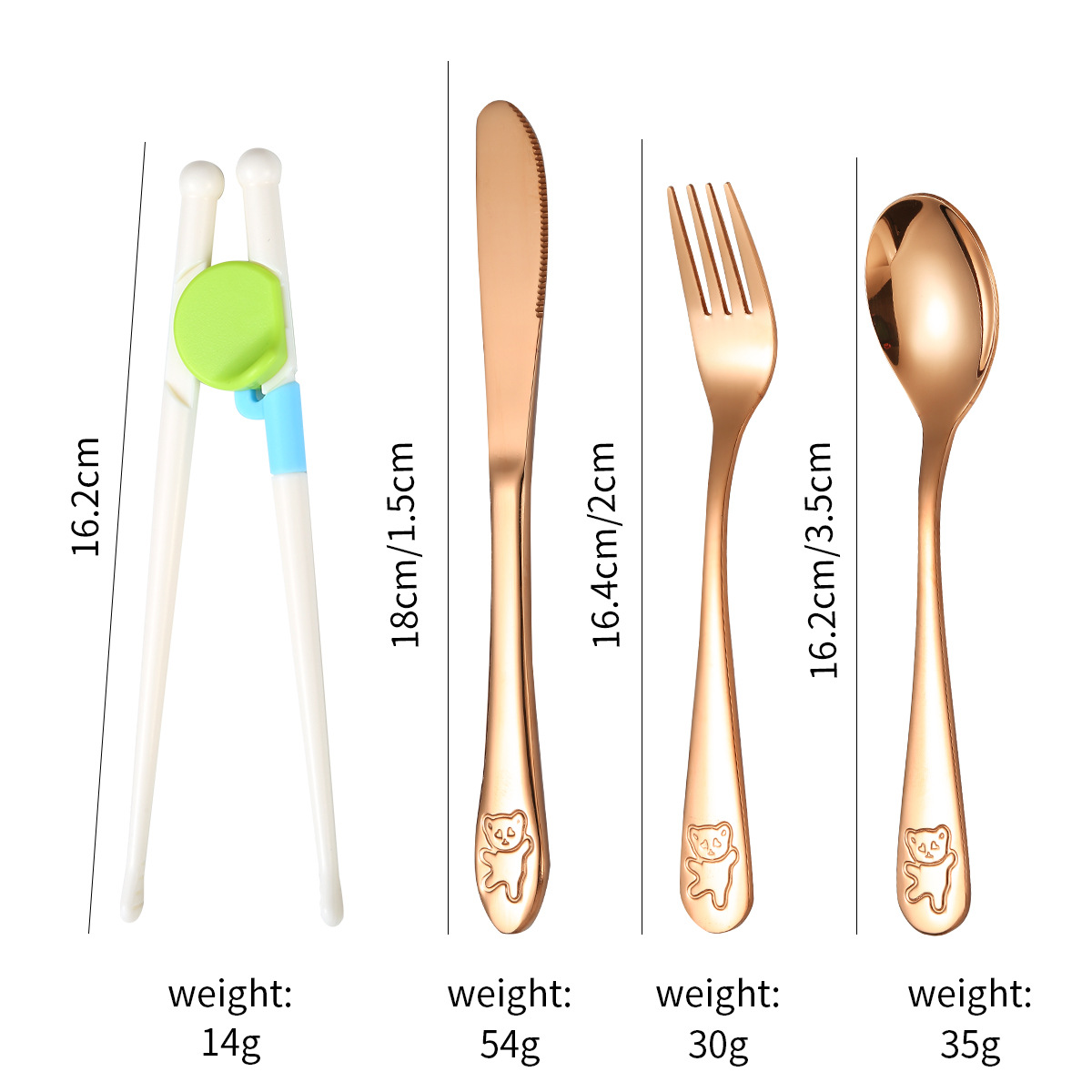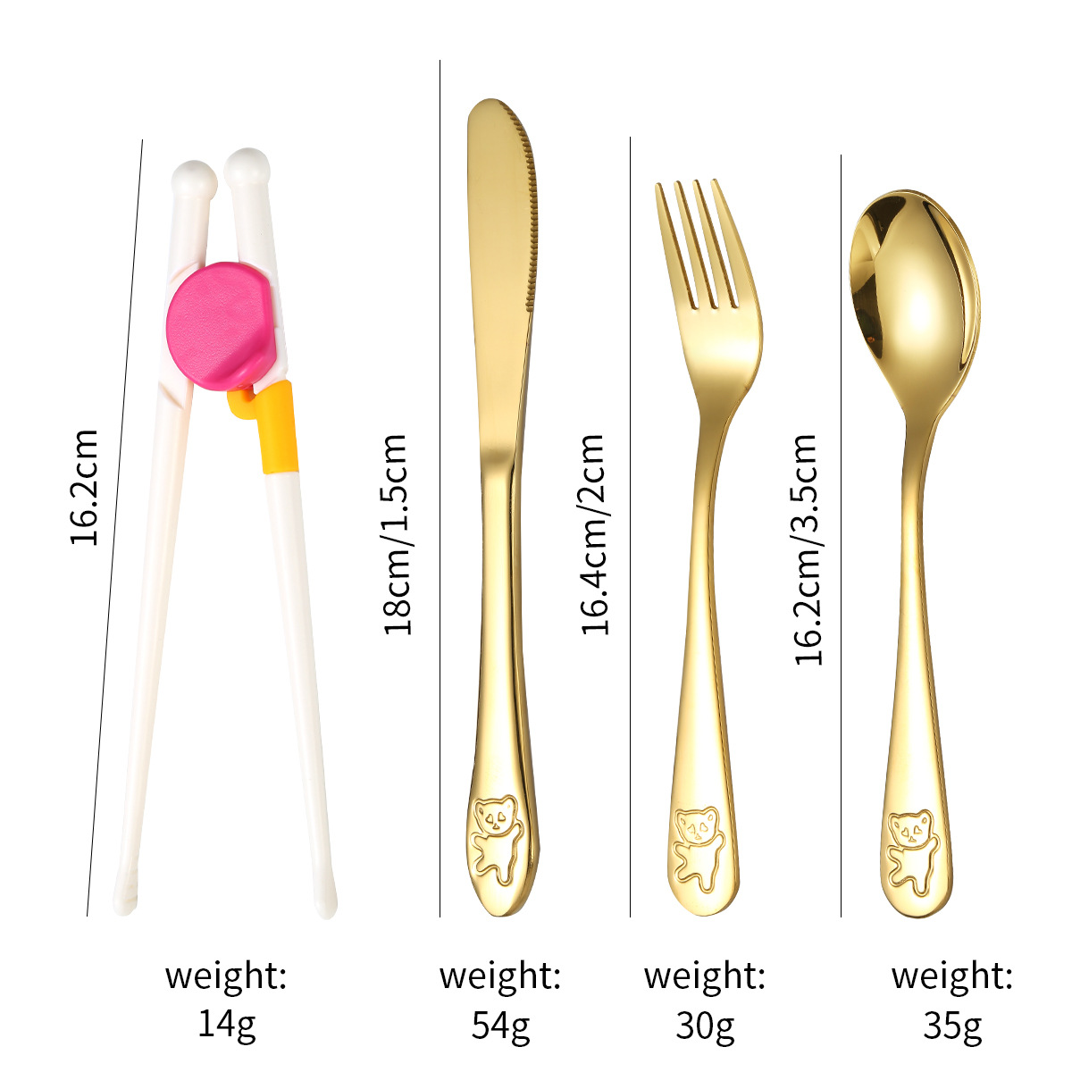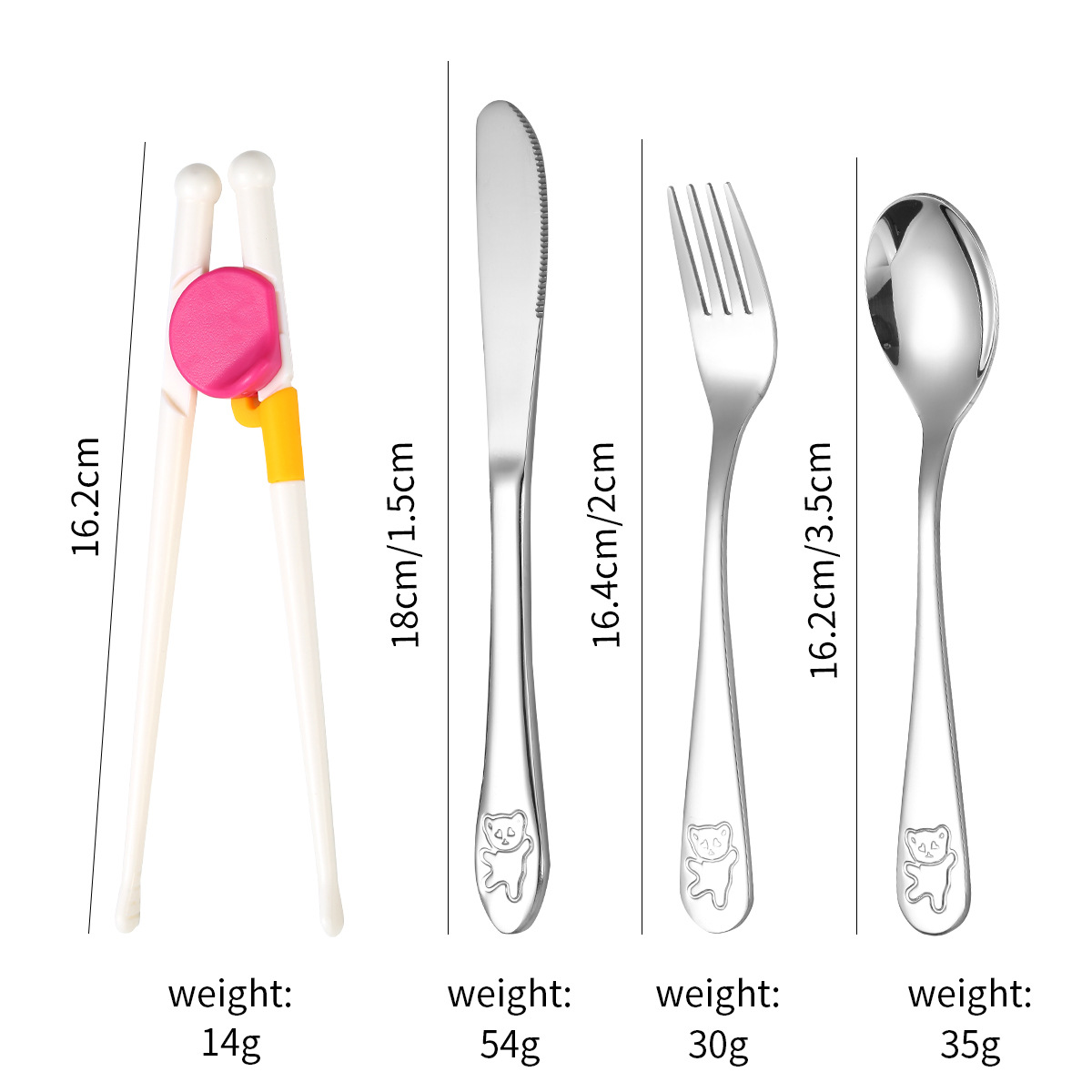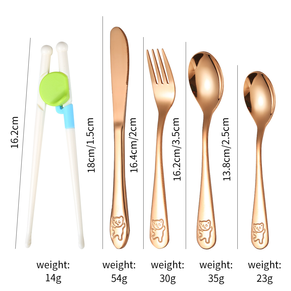 跨境 儿童小熊西餐牛排刀叉训练筷宝宝不锈钢餐具刀叉勺筷子5件套