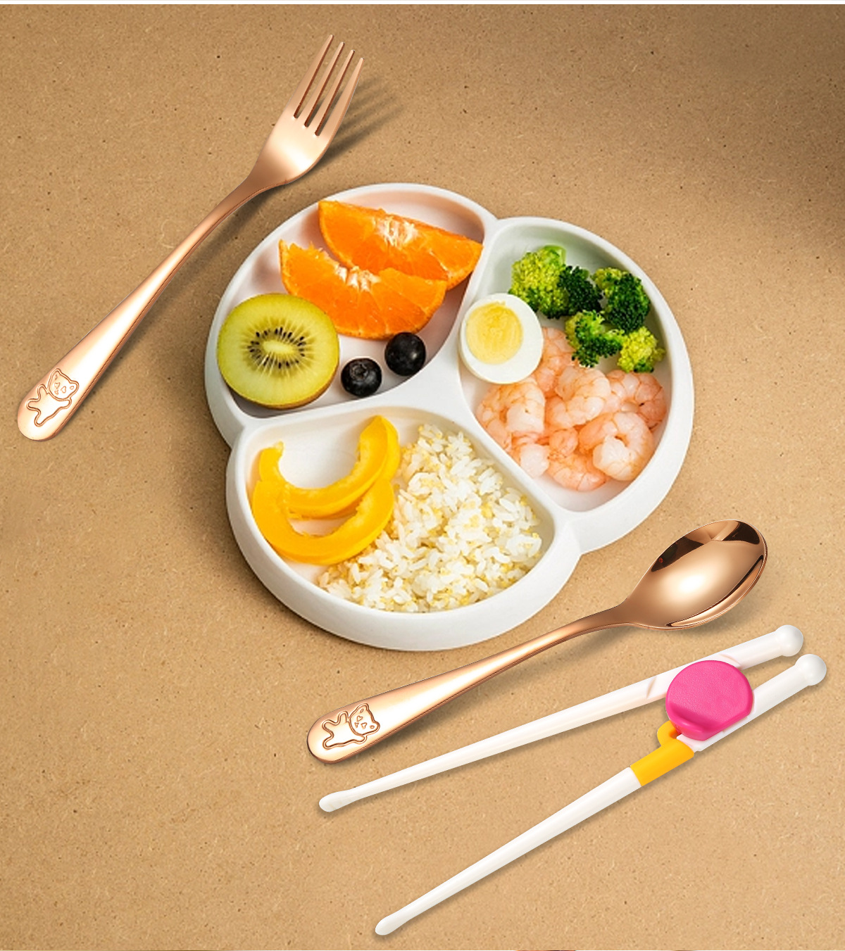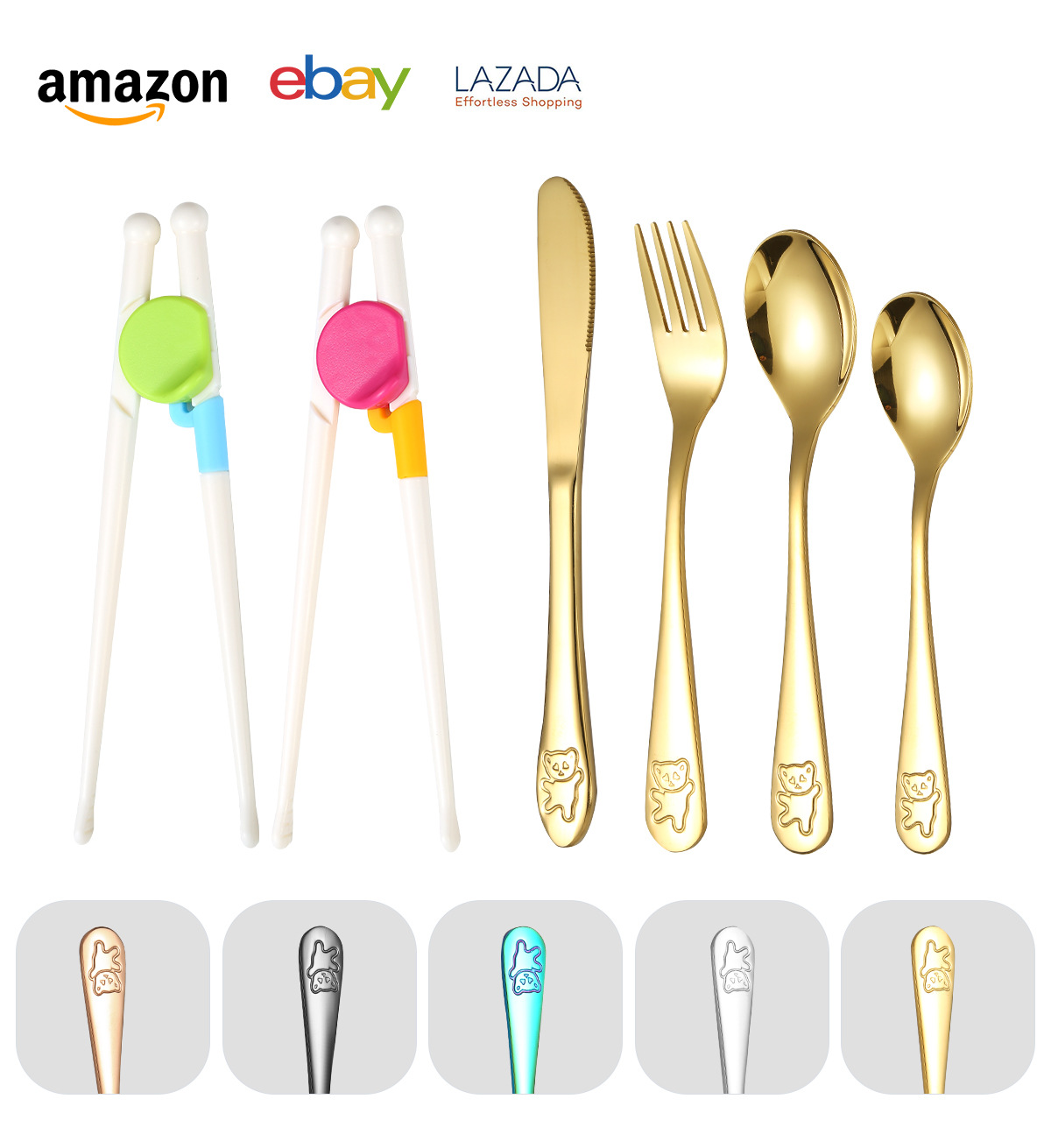 亚马逊儿童西餐具小熊刀叉练习筷套装幼儿吃饭训练筷不锈钢刀叉勺