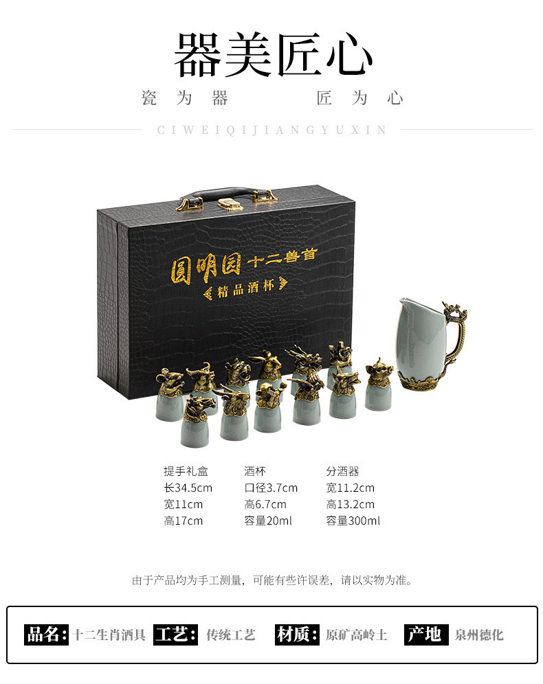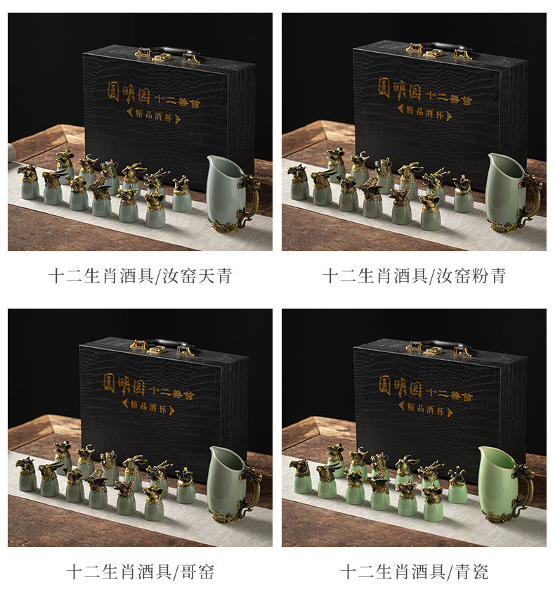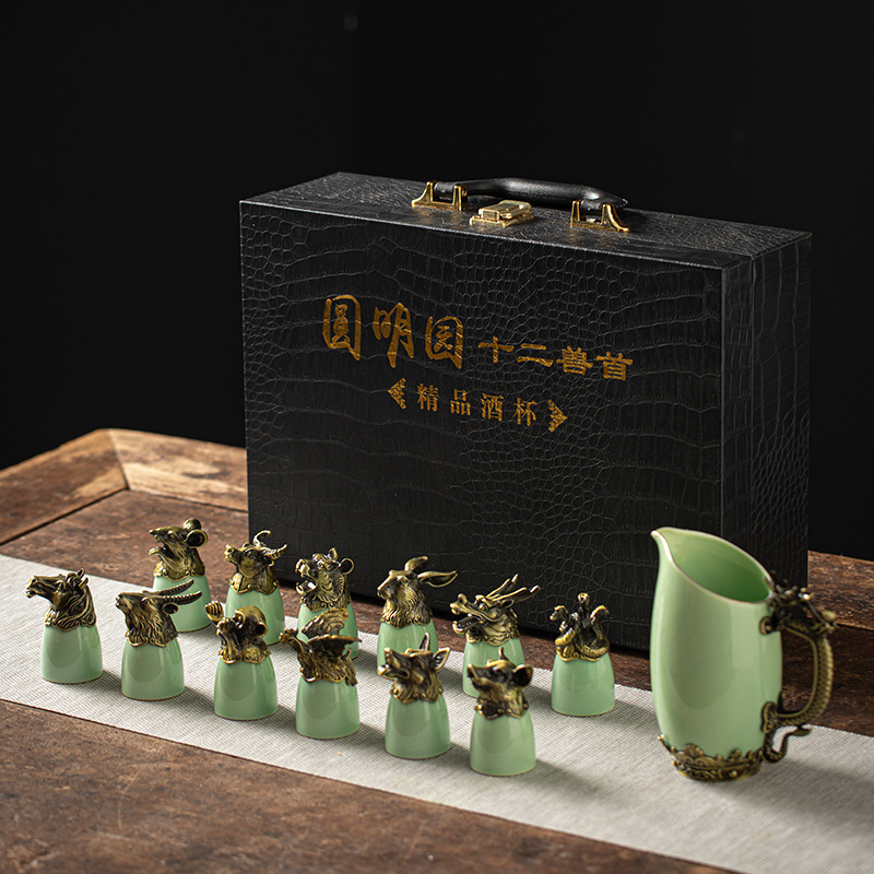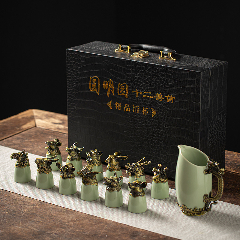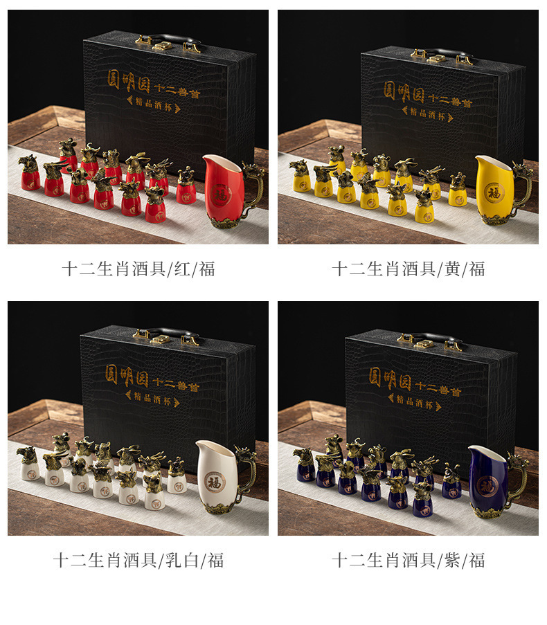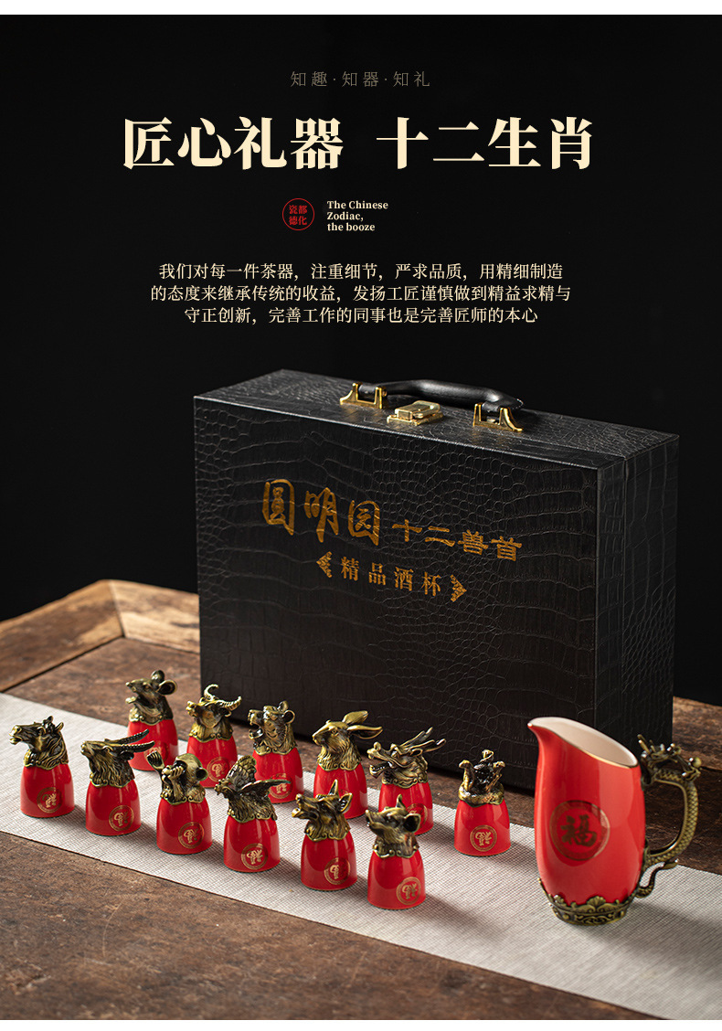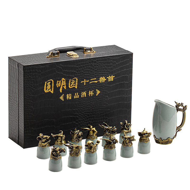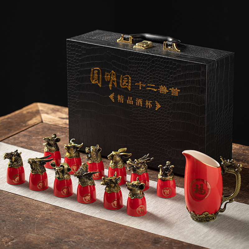 十二生肖陶瓷酒具礼盒套装兽首白酒杯分酒器节日商务伴手礼品LOGO