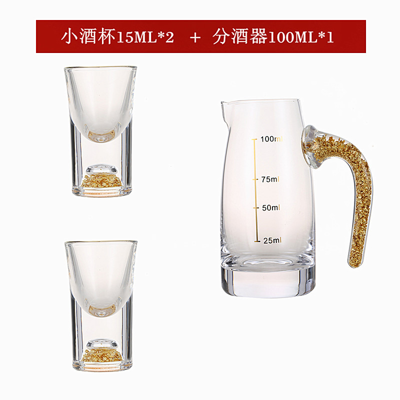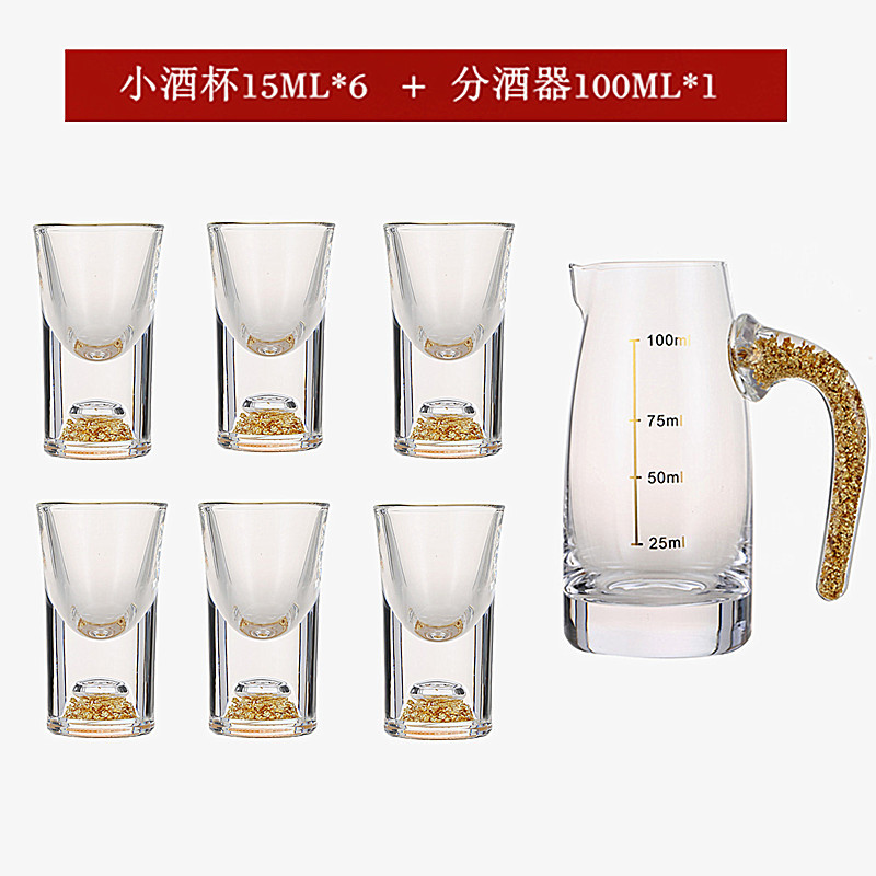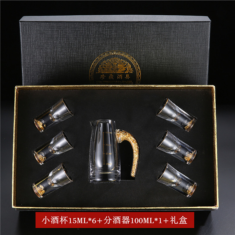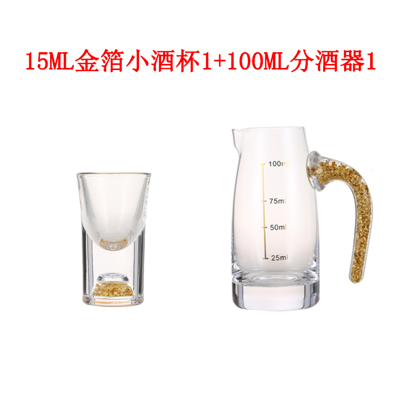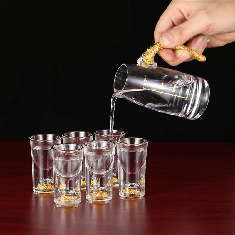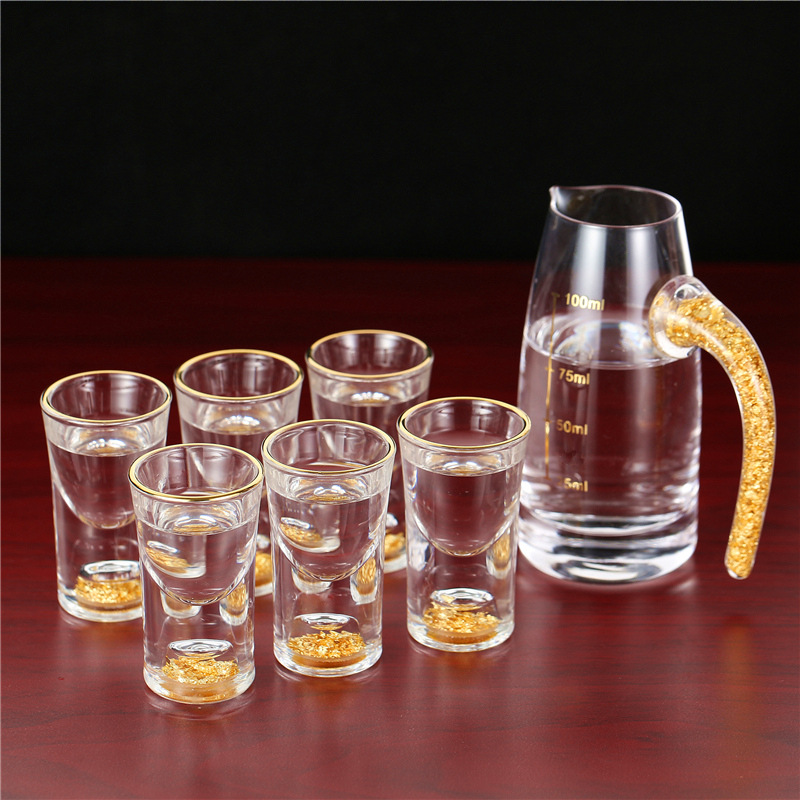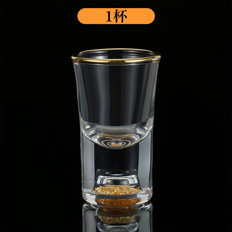 轻奢金箔白酒杯套装 家用小号一口杯玻璃酒具分酒器烈酒杯印logo