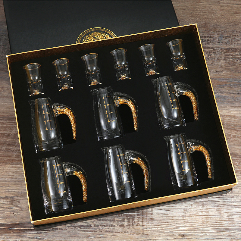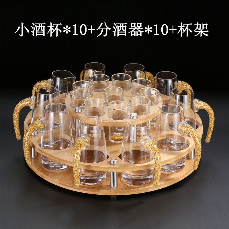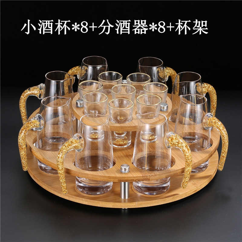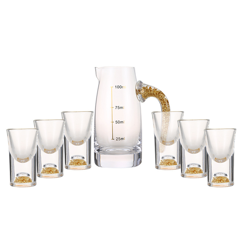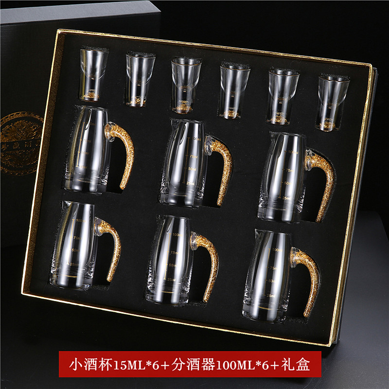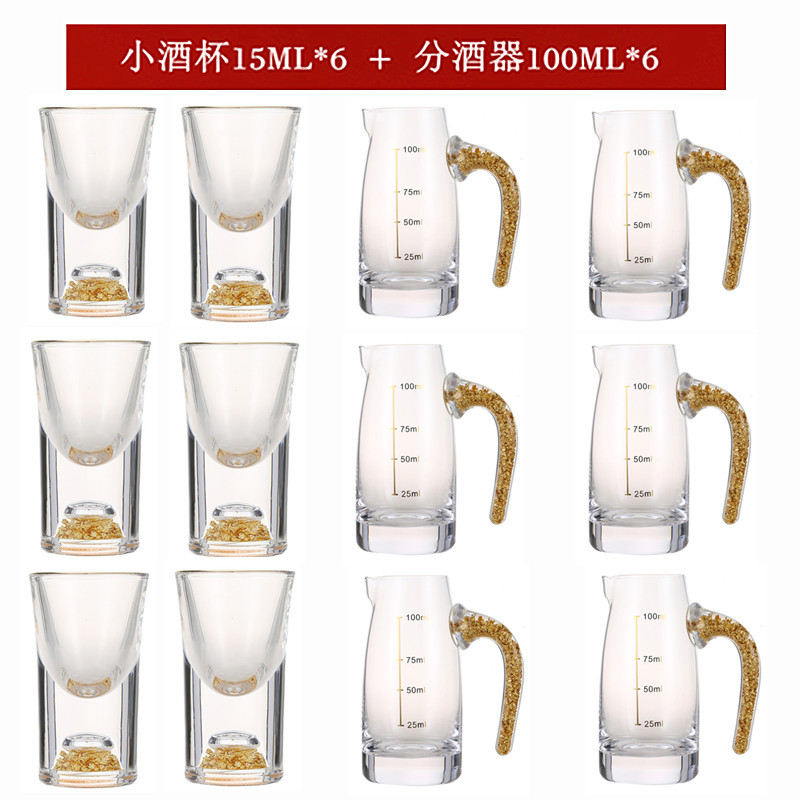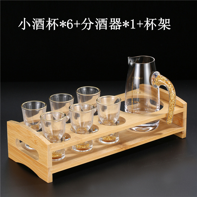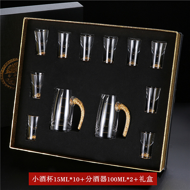 轻奢金箔白酒杯套装 家用小号一口杯玻璃酒具分酒器烈酒杯印logo