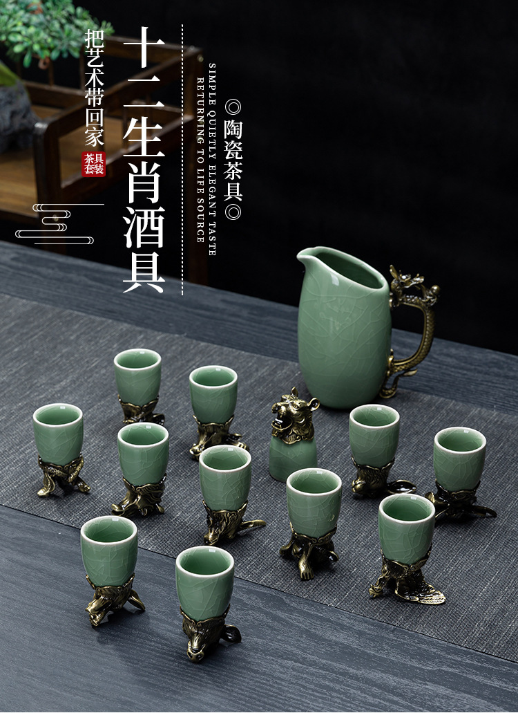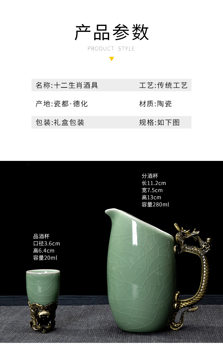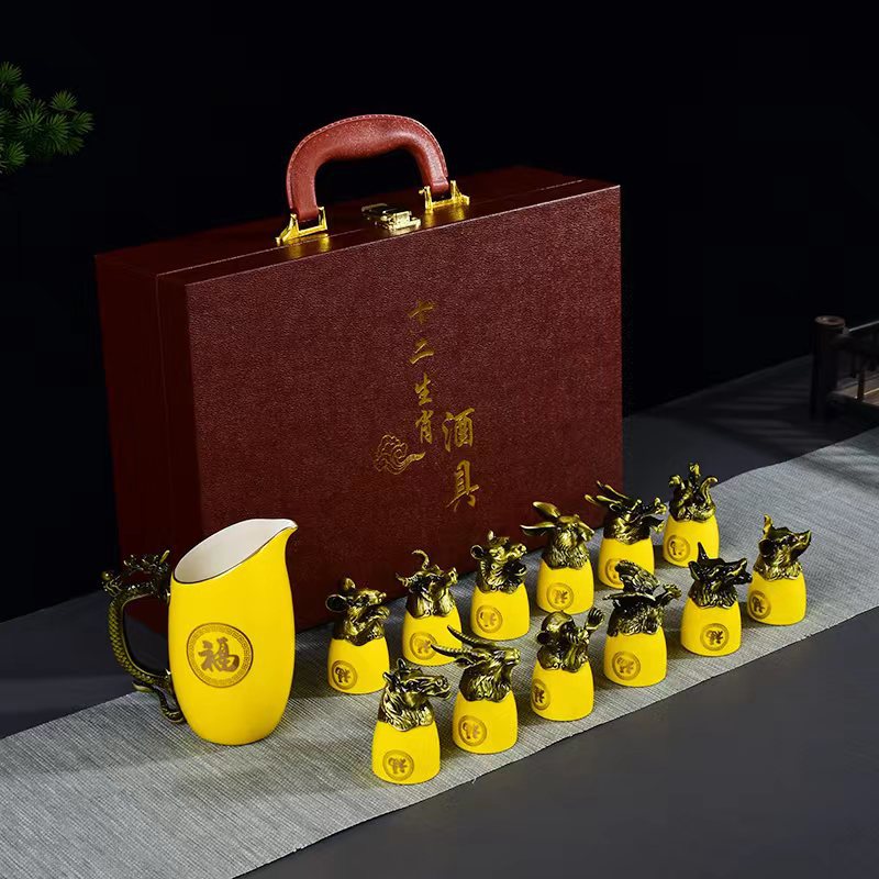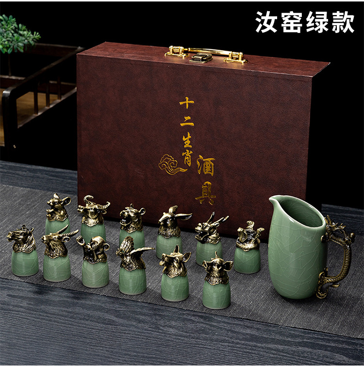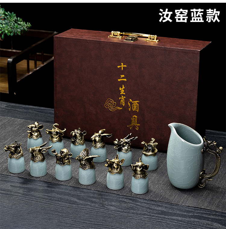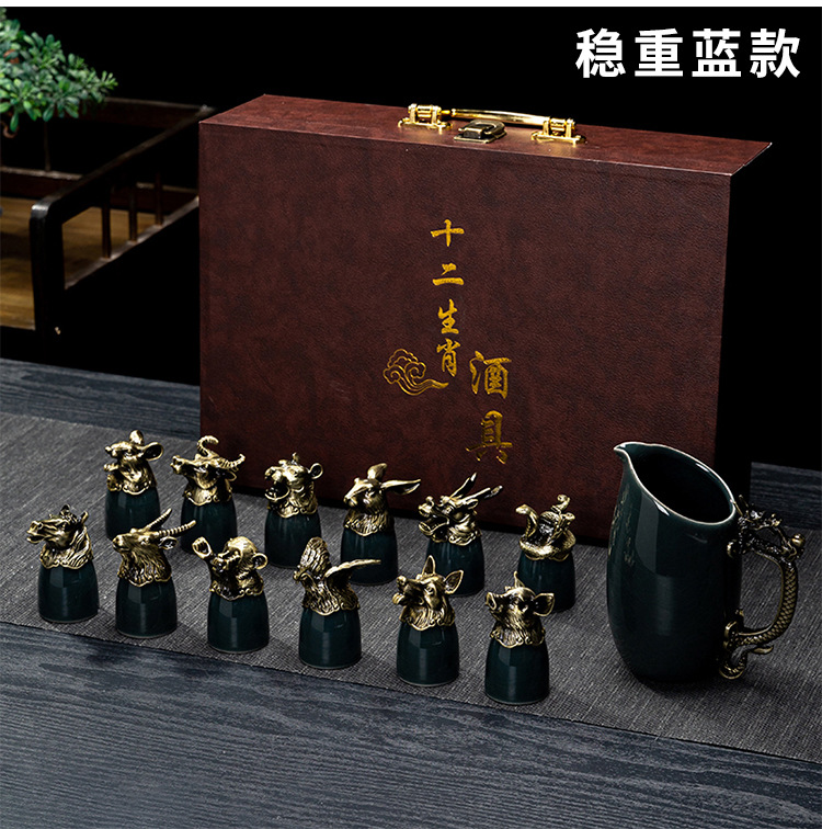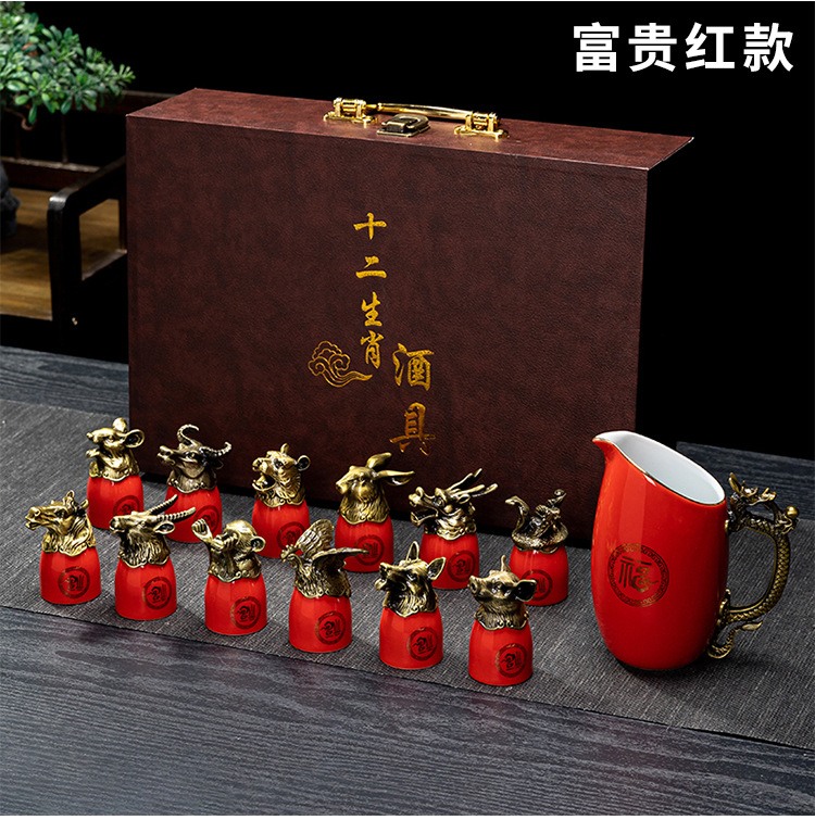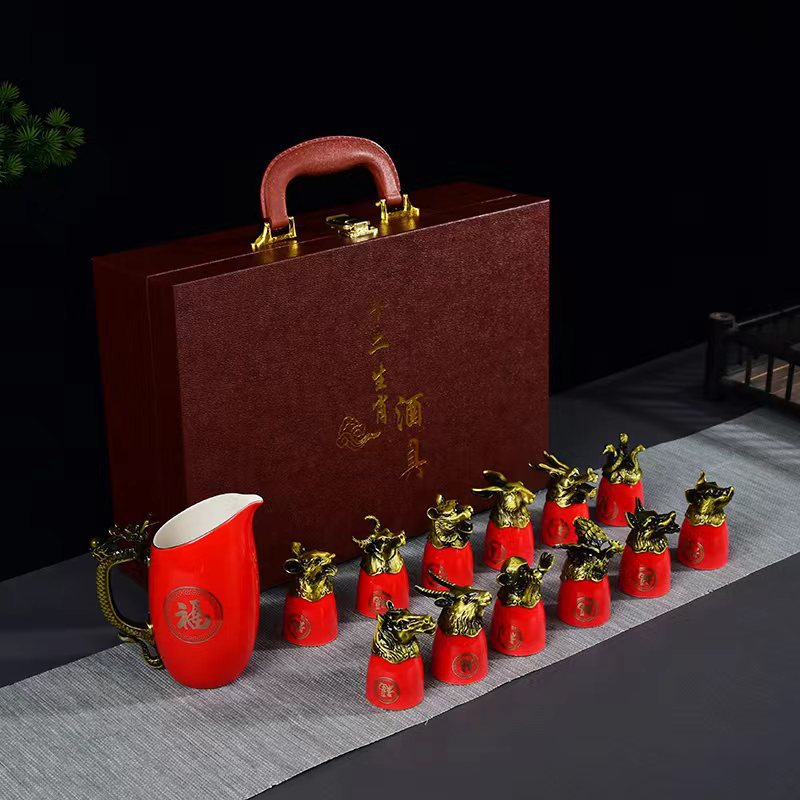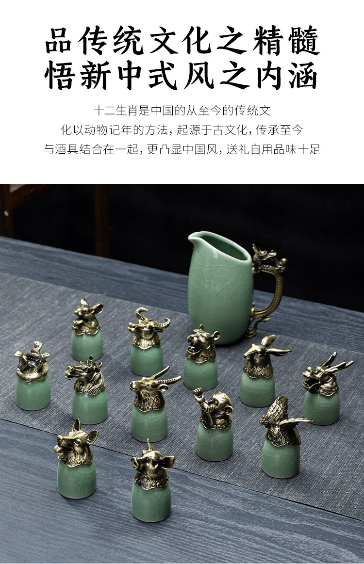 陶瓷酒具十二生肖兽首白酒杯分酒器礼品酒杯高档礼盒包装套装礼品