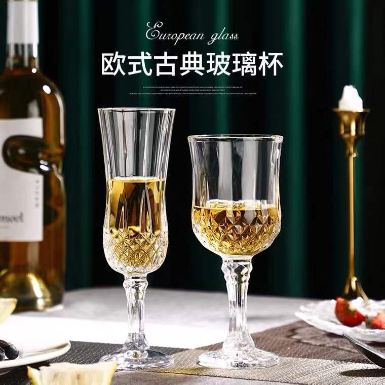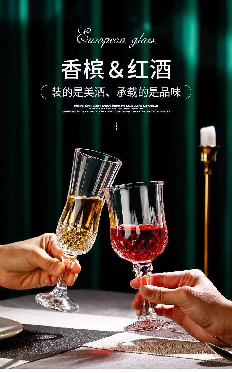 批发玉晶高脚杯红酒杯创意酒杯水晶洋酒杯白酒香槟杯钻石杯玻璃杯