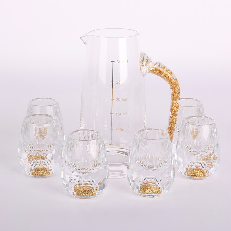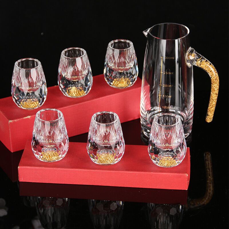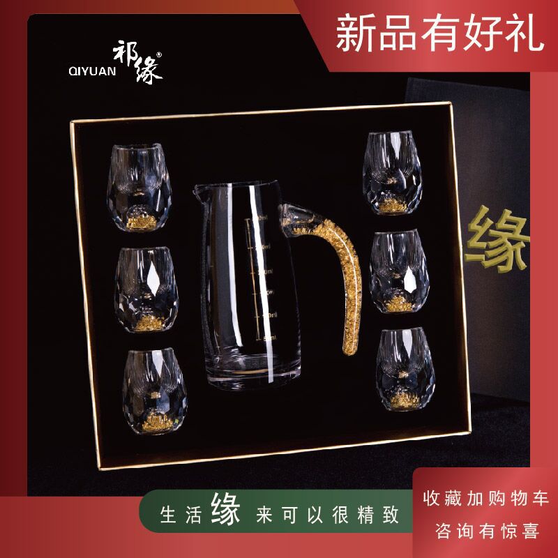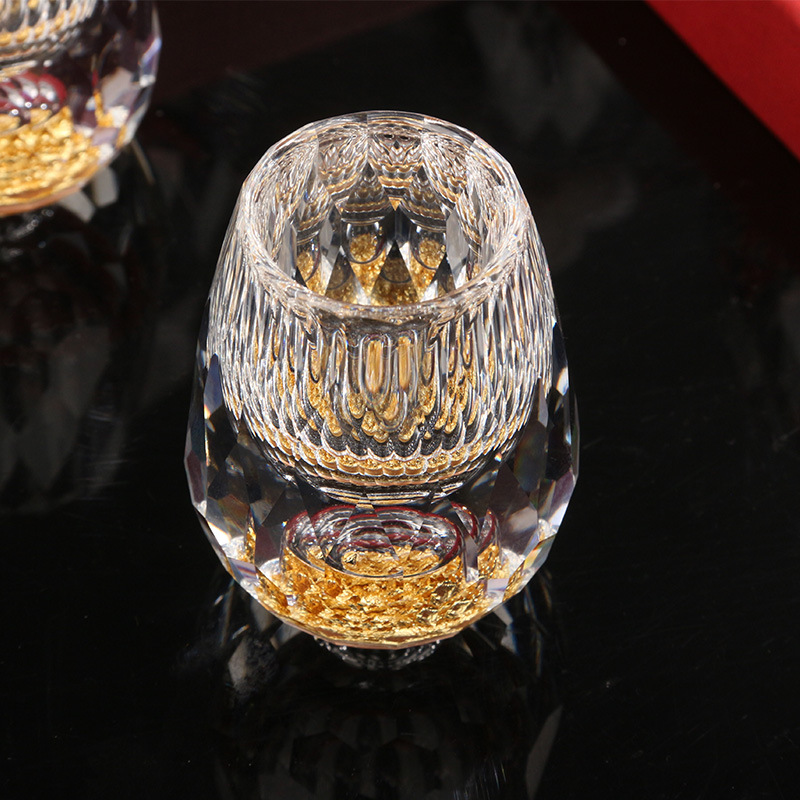 金箔水晶玻璃金山杯具和创意礼品皮质礼盒烈酒杯白酒杯分酒器套装
