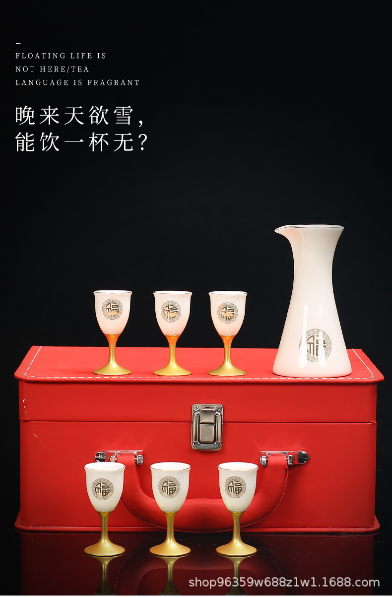 羊脂玉中式酒具分酒器套装家用陶瓷白酒杯酒壶龙年小酒杯烈酒杯