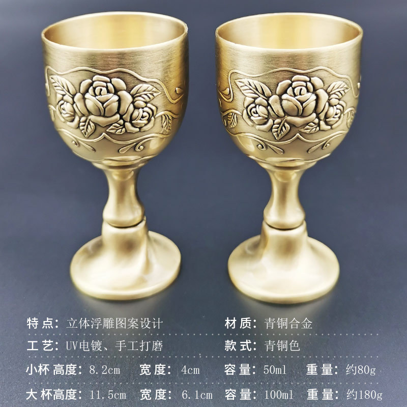 批发仿古高脚杯婚庆交杯白酒杯创意青铜锡器烈酒杯酒具家用一两杯