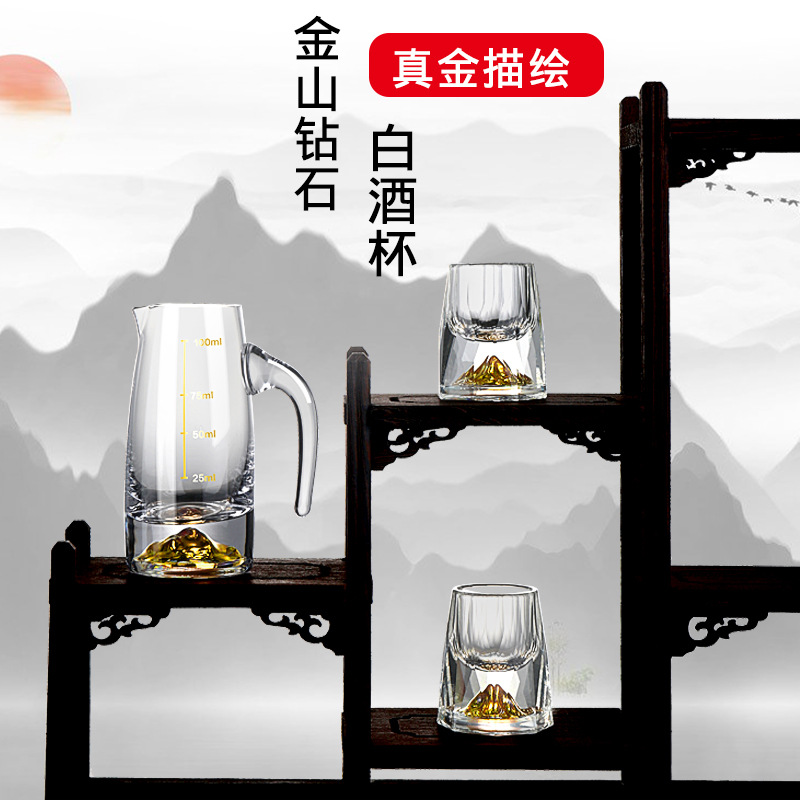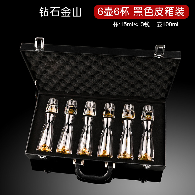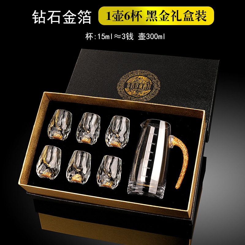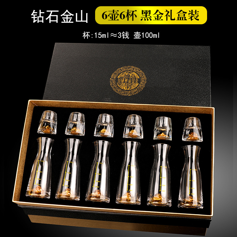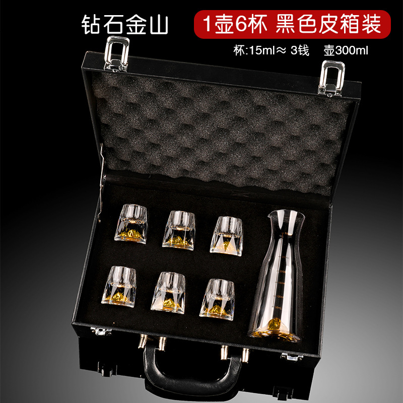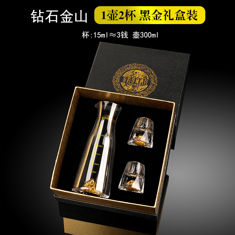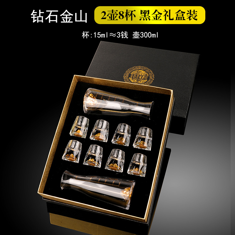 金箔钻石金山白酒杯套装创意家用水晶玻璃分酒器小一口杯酒盅