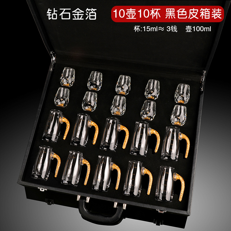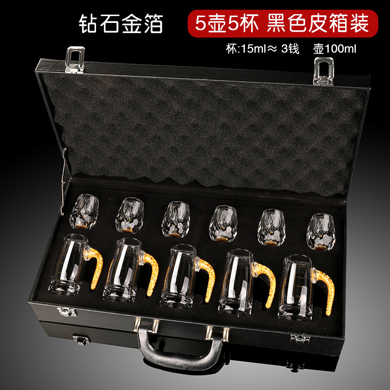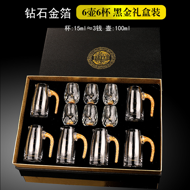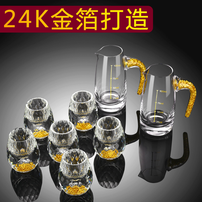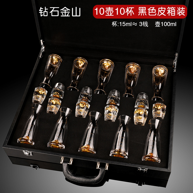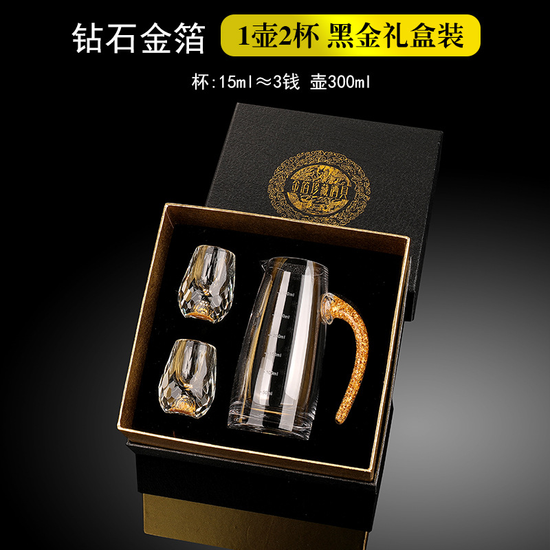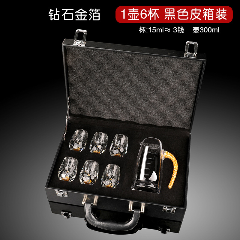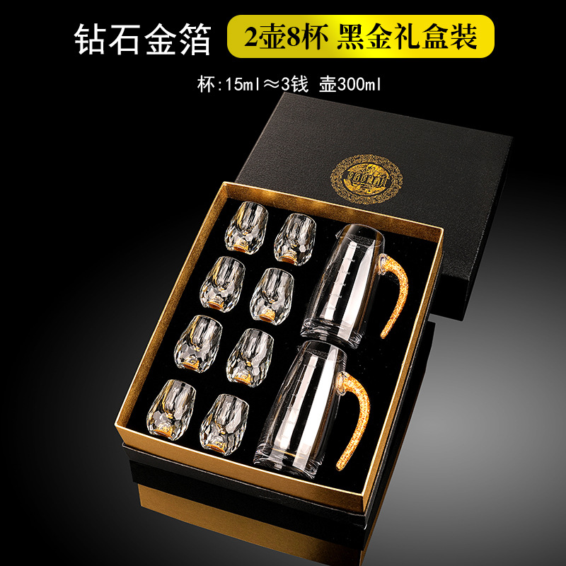 金箔钻石金山白酒杯套装创意家用水晶玻璃分酒器小一口杯酒盅