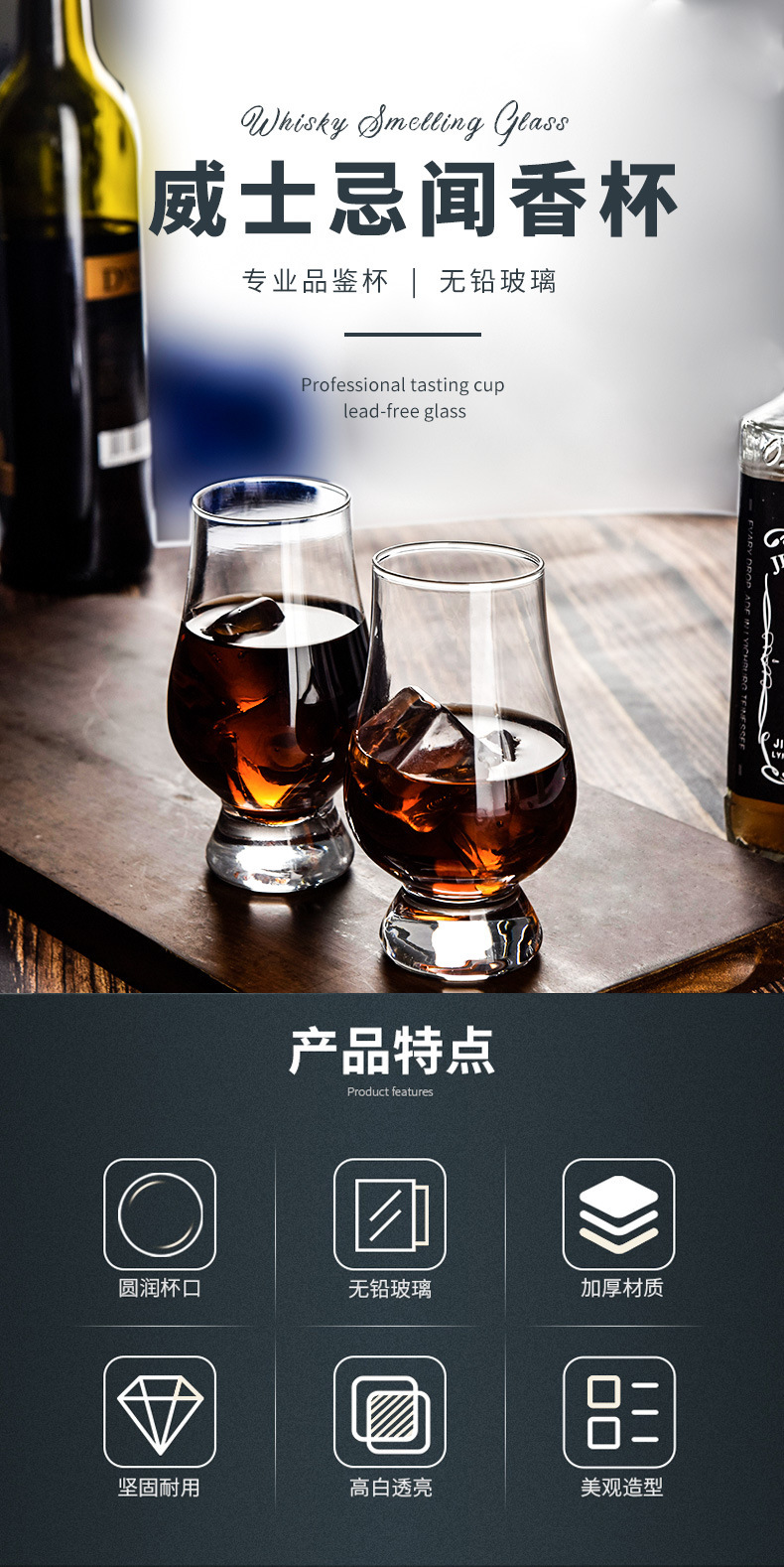 威士忌酒杯套装创意水晶玻璃洋酒品鉴试酒杯家用烈酒杯批发闻香杯