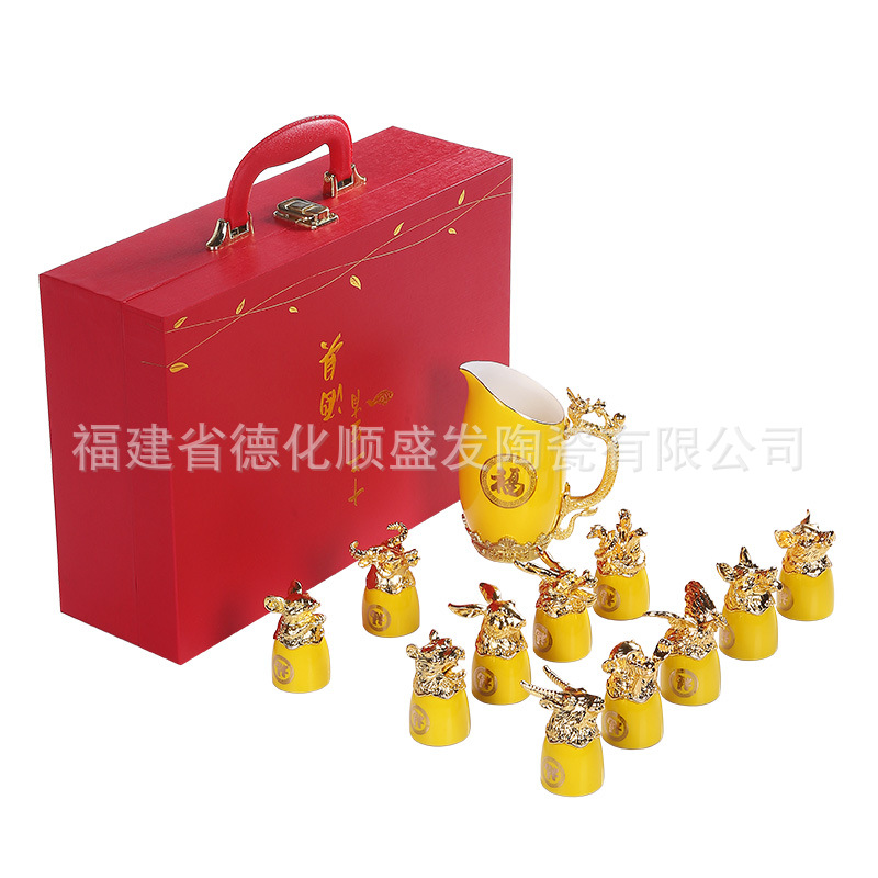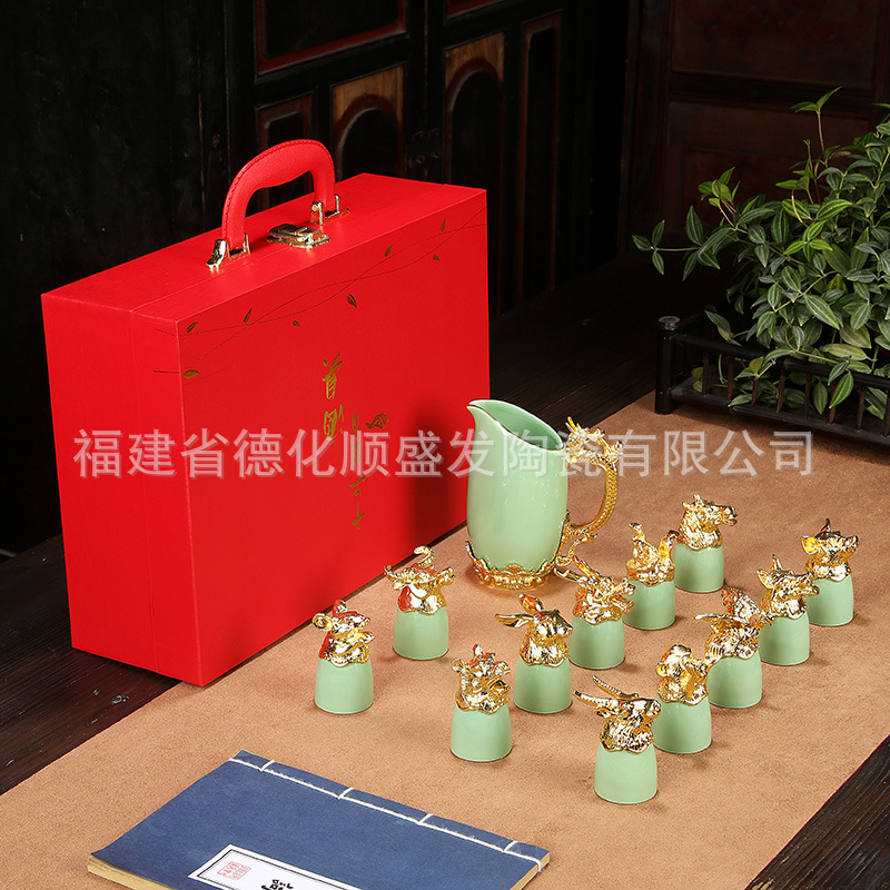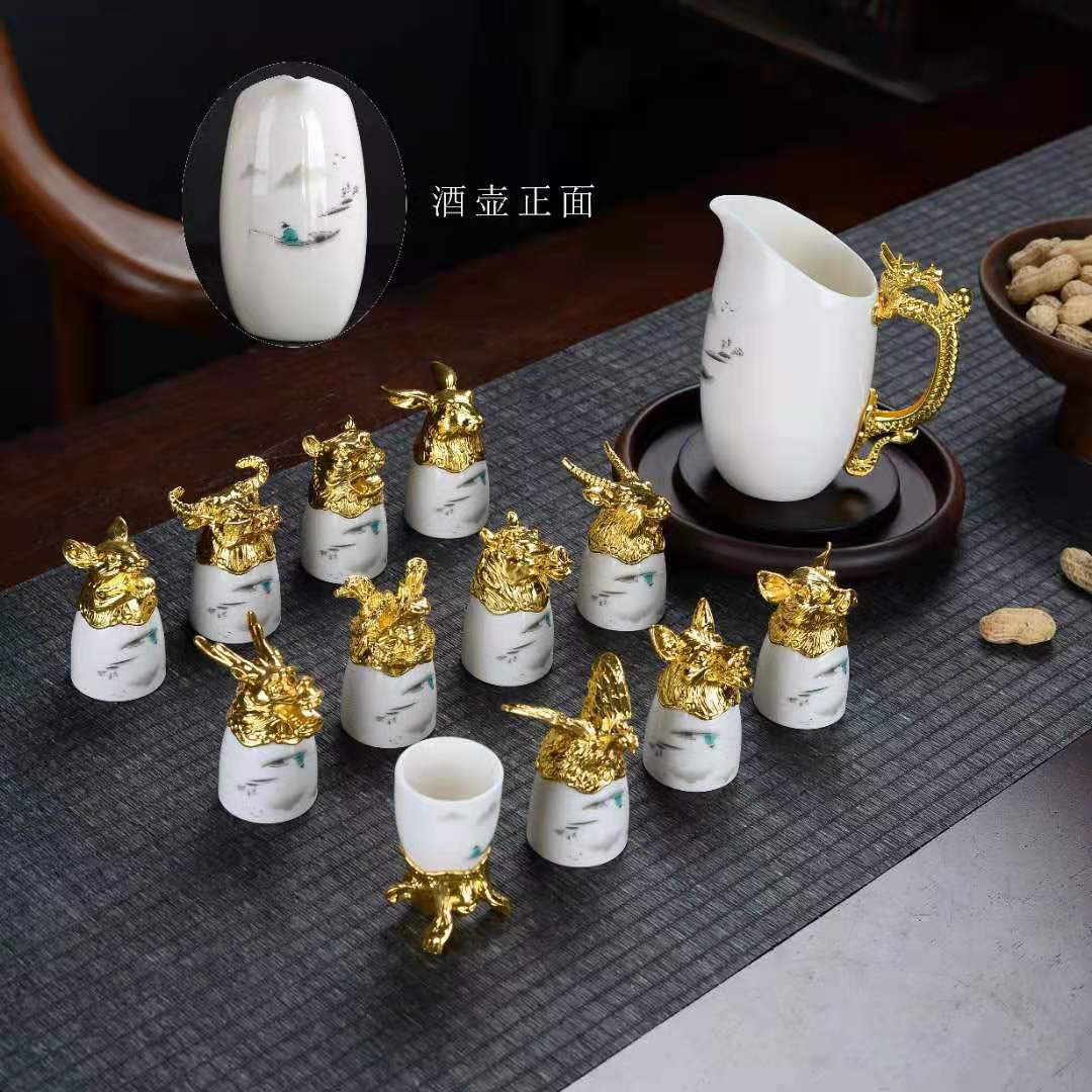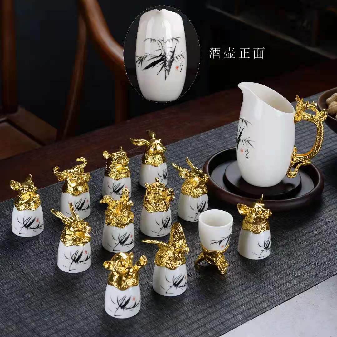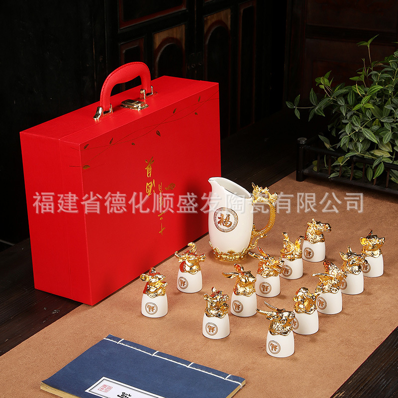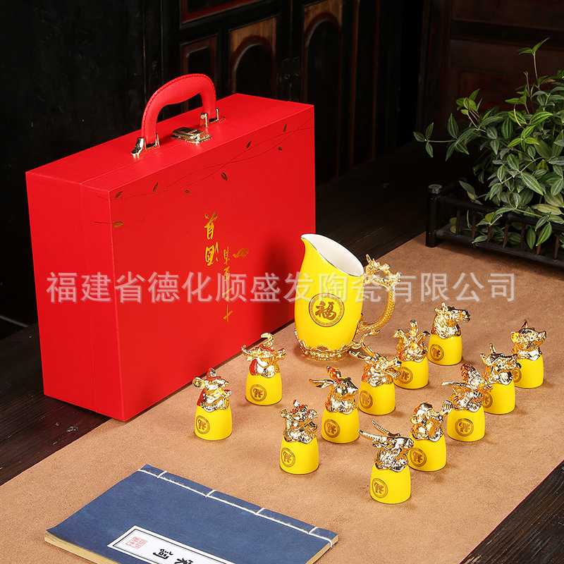 13头陶瓷分酒器十二生肖酒具礼盒套装家用烫温酒壶白酒杯LOGO烈酒