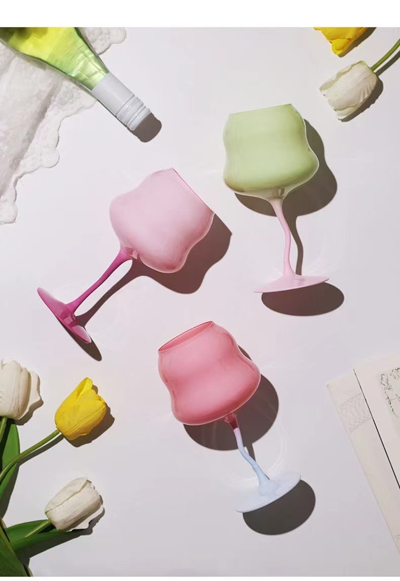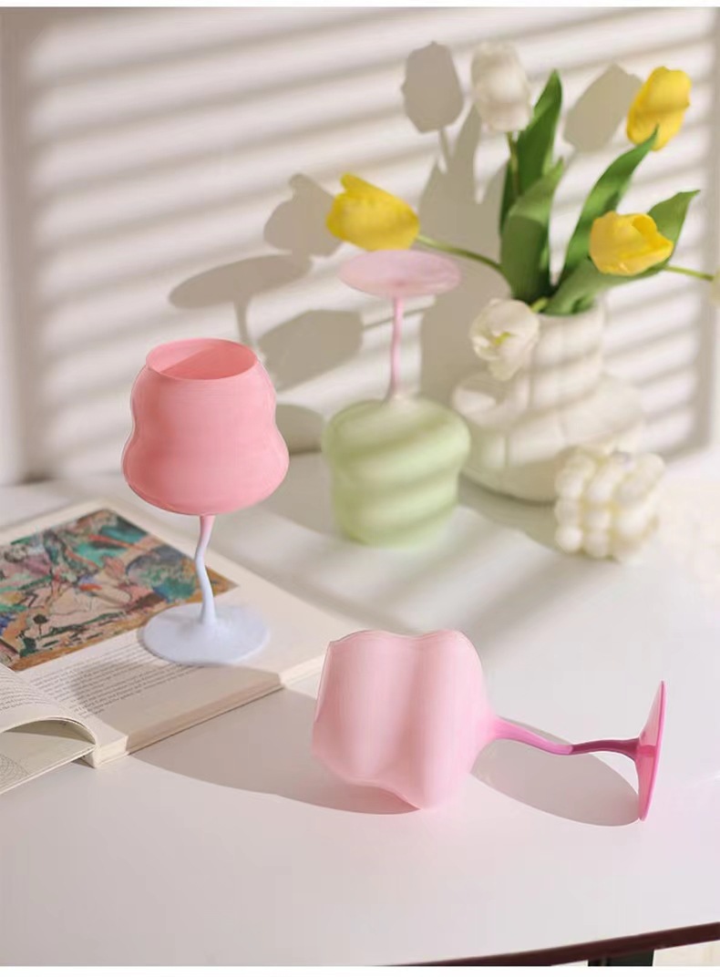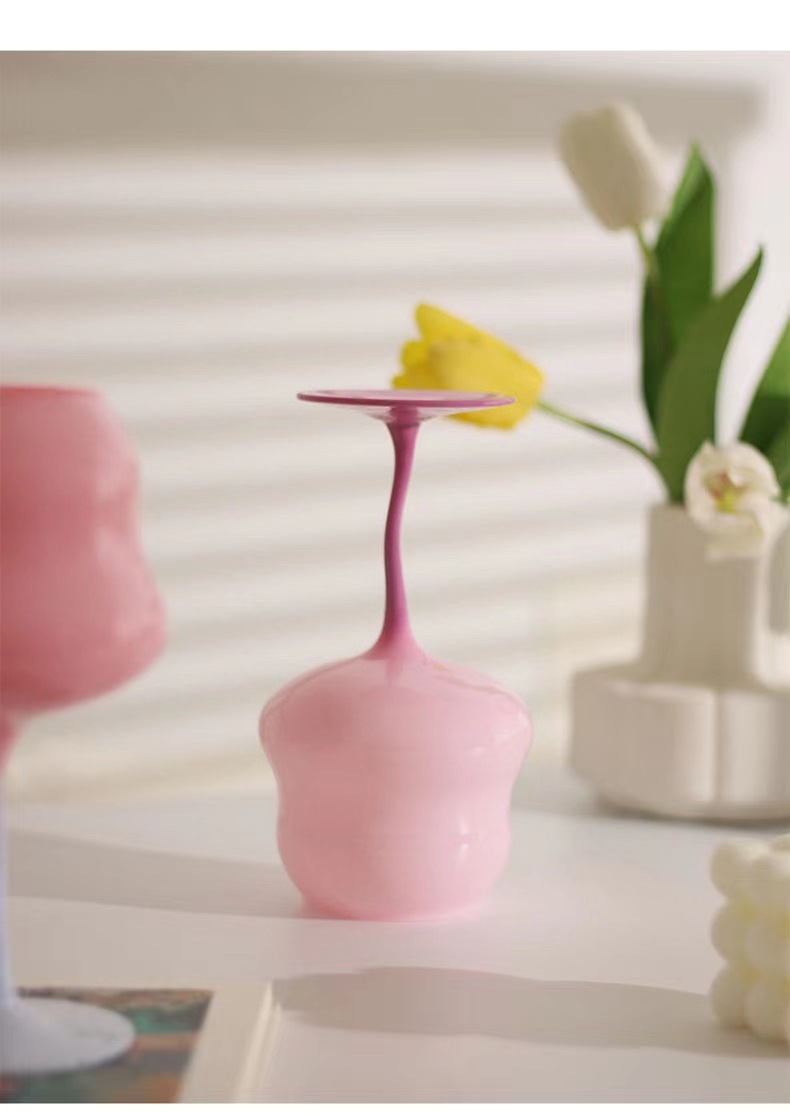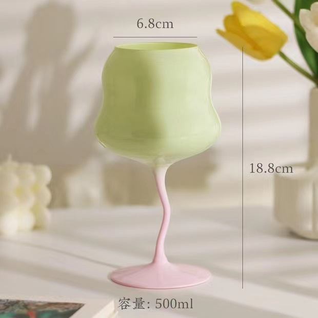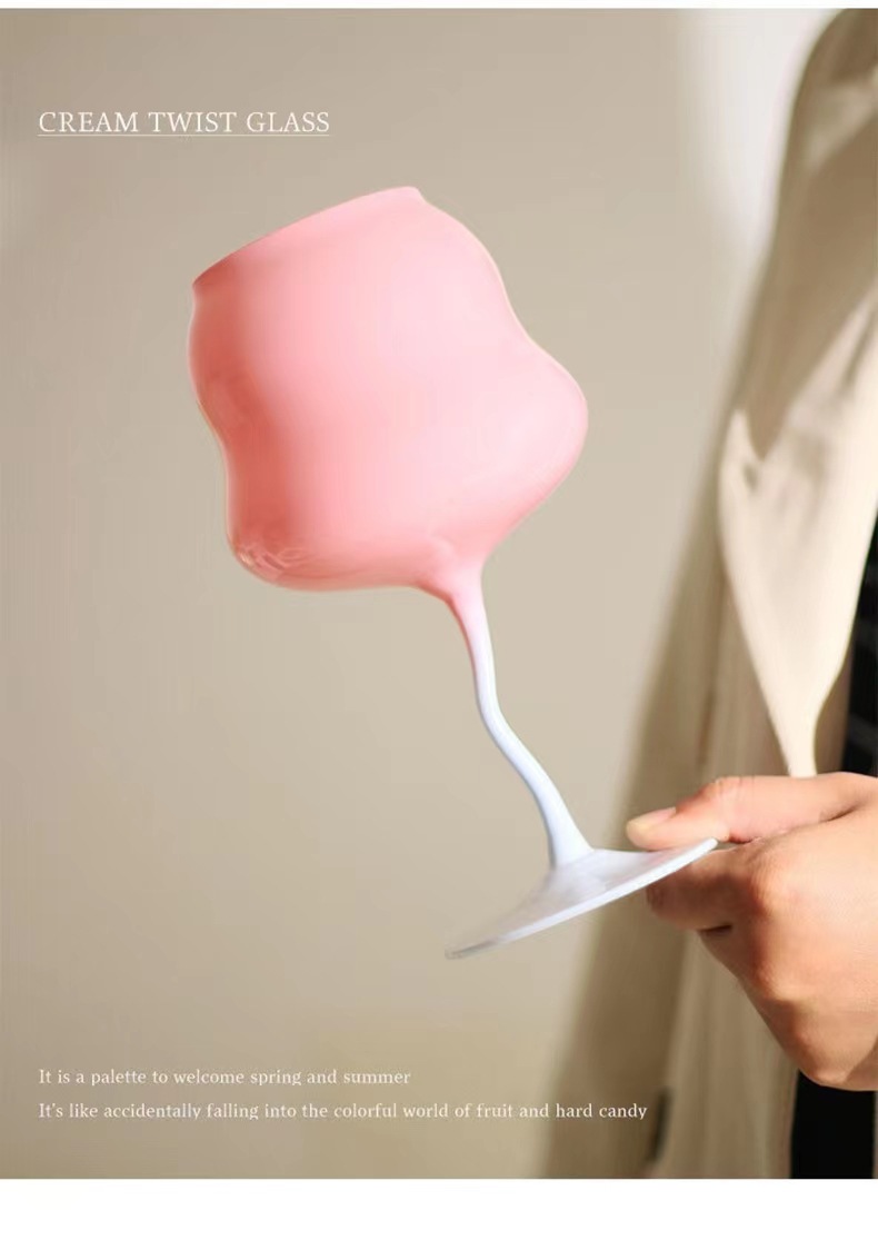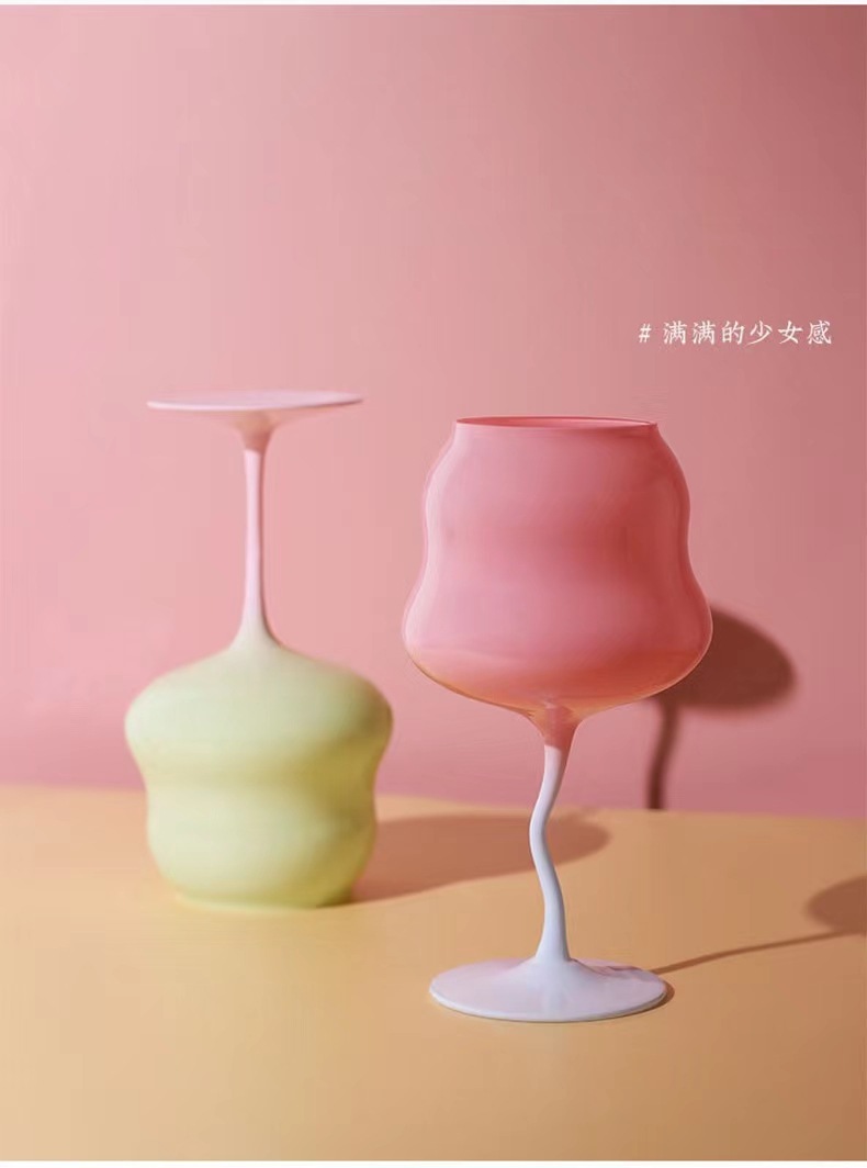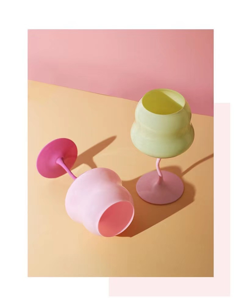 高颜值马卡龙奶油扭扭杯高脚杯红酒杯撞色少女心糖果创意酒神杯子