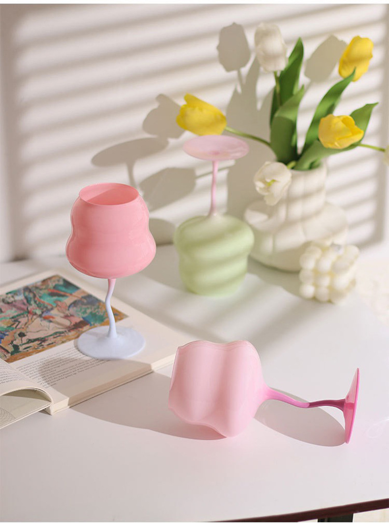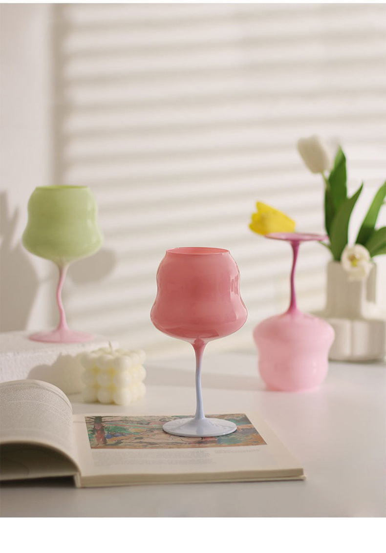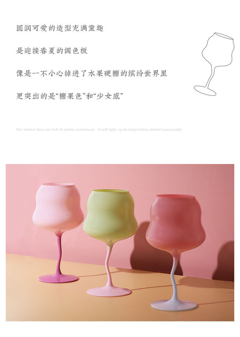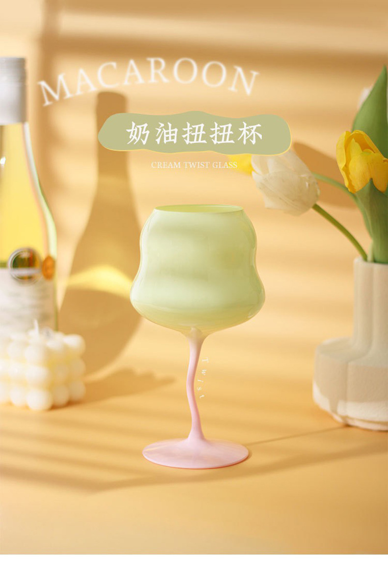 马卡龙扭扭红酒杯高颜值玻璃红酒杯高脚杯小清新复古奶油酒神杯