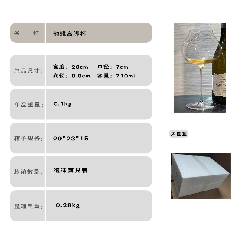 小红书推荐网红高脚杯韵雅勃艮第红酒酒杯酒师大赛专用白葡萄酒杯