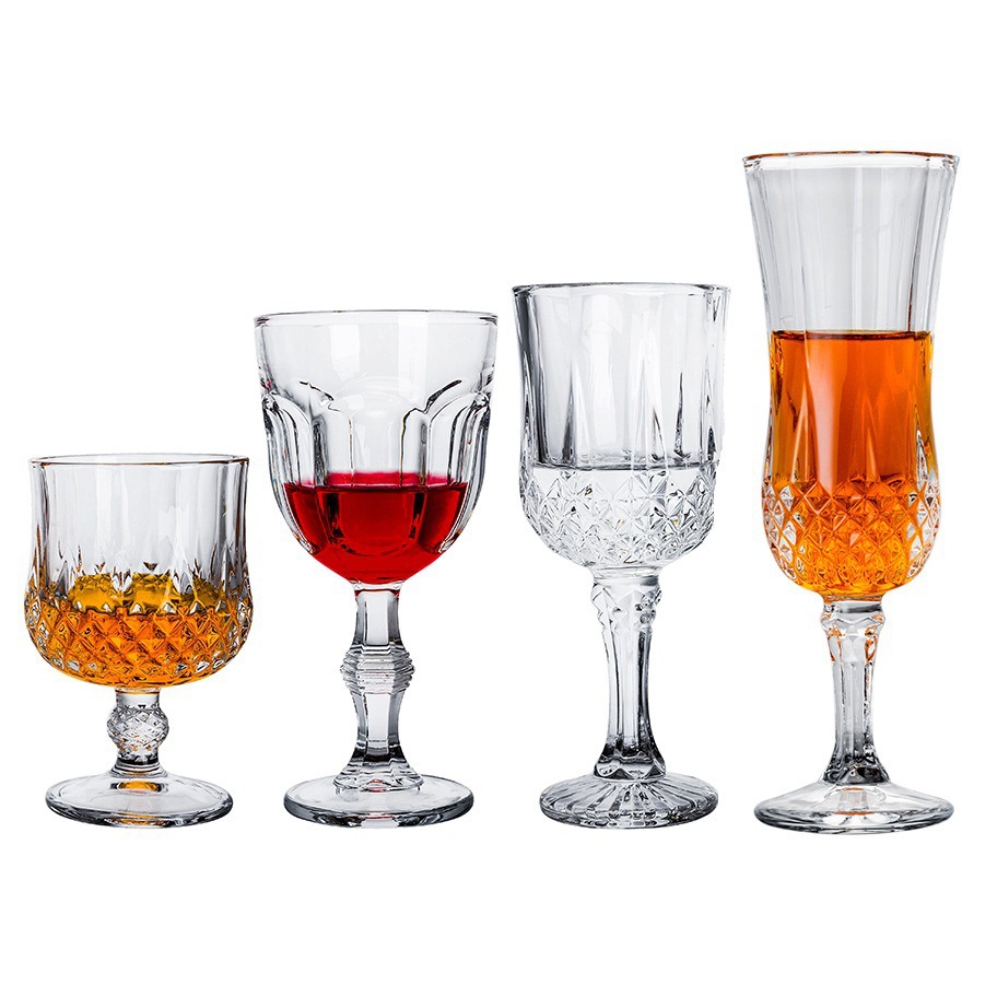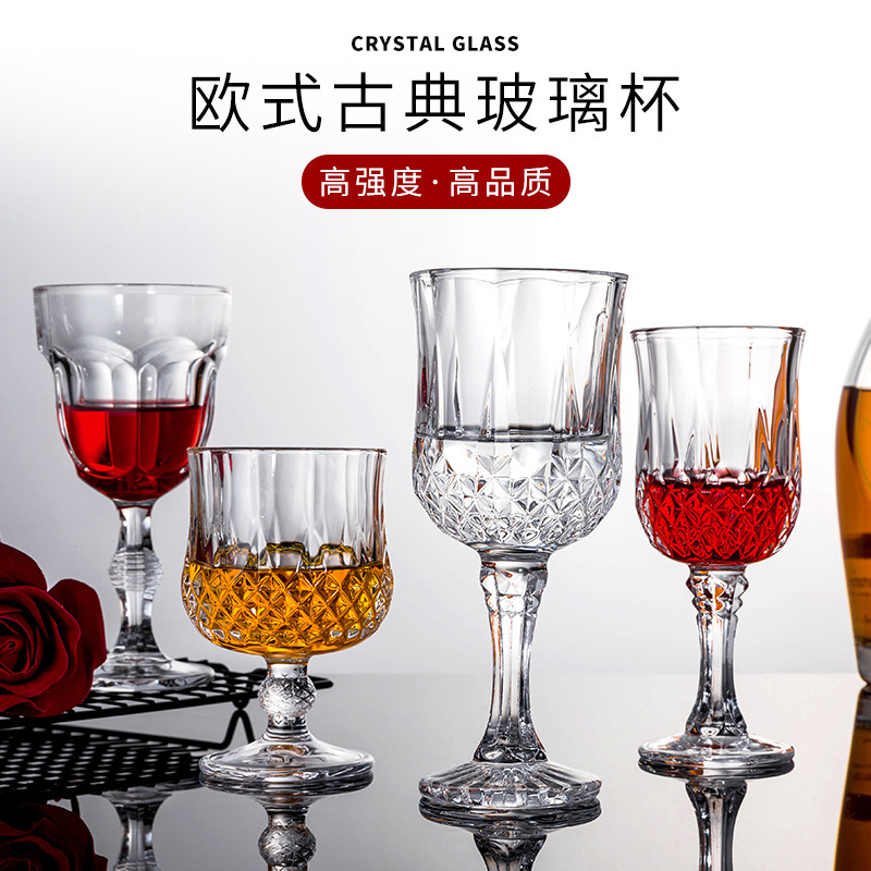 厂家批发红酒杯玉晶欧式创意古典钻石纹玻璃杯高脚杯洋酒香槟杯
