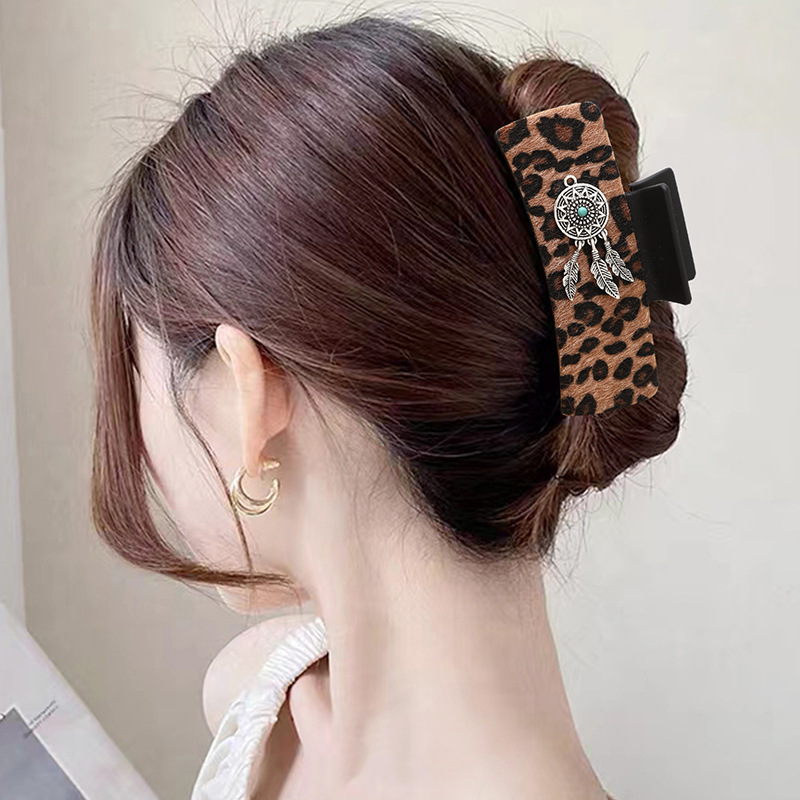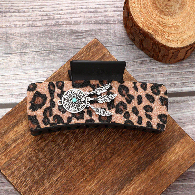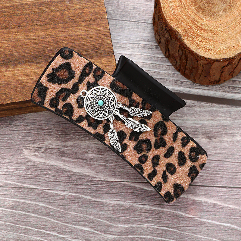 豹纹鲨鱼夹合金绿松石配件欧美复古皮革个性潮流速卖通亚马逊1