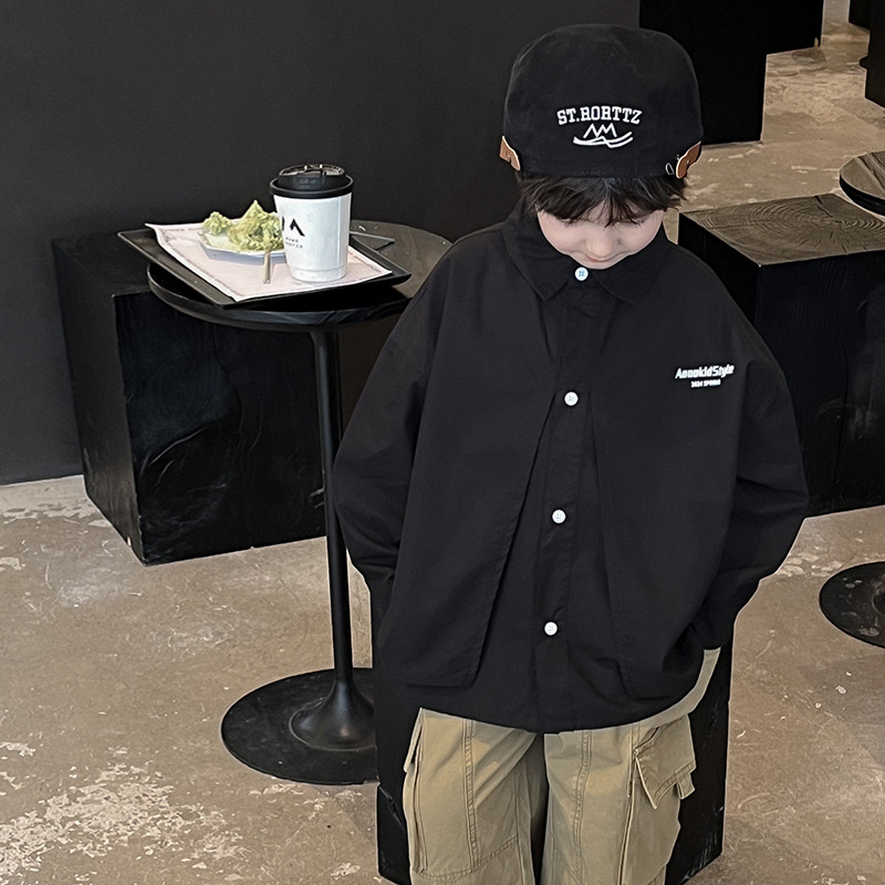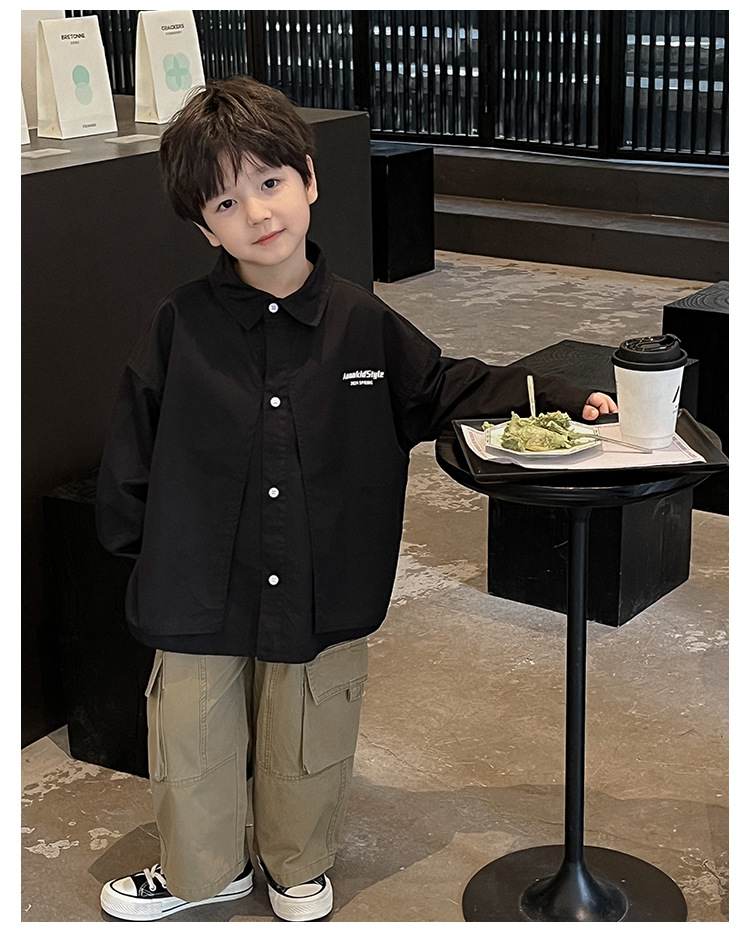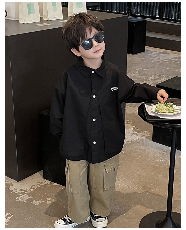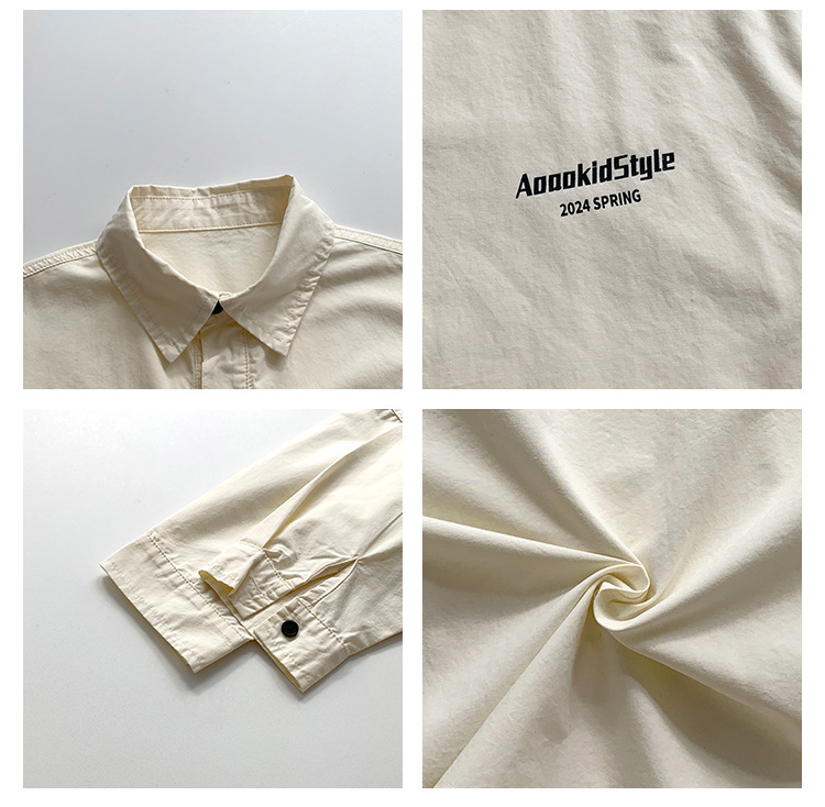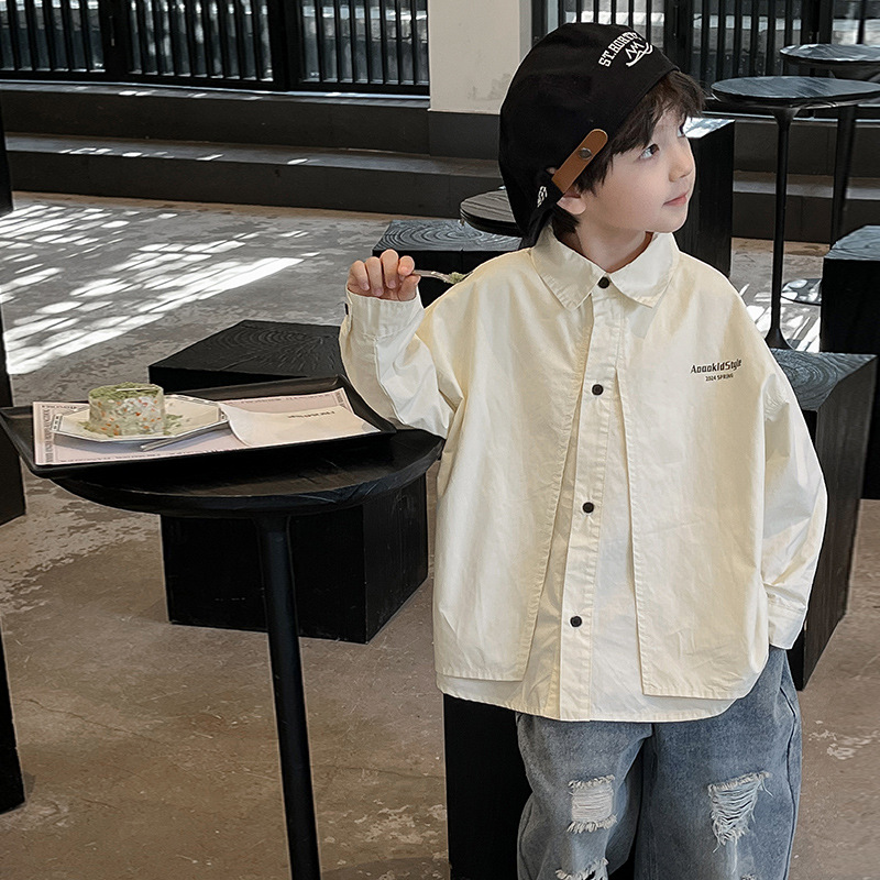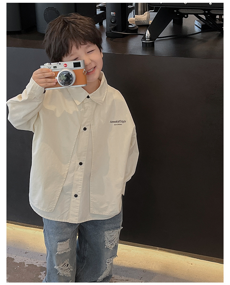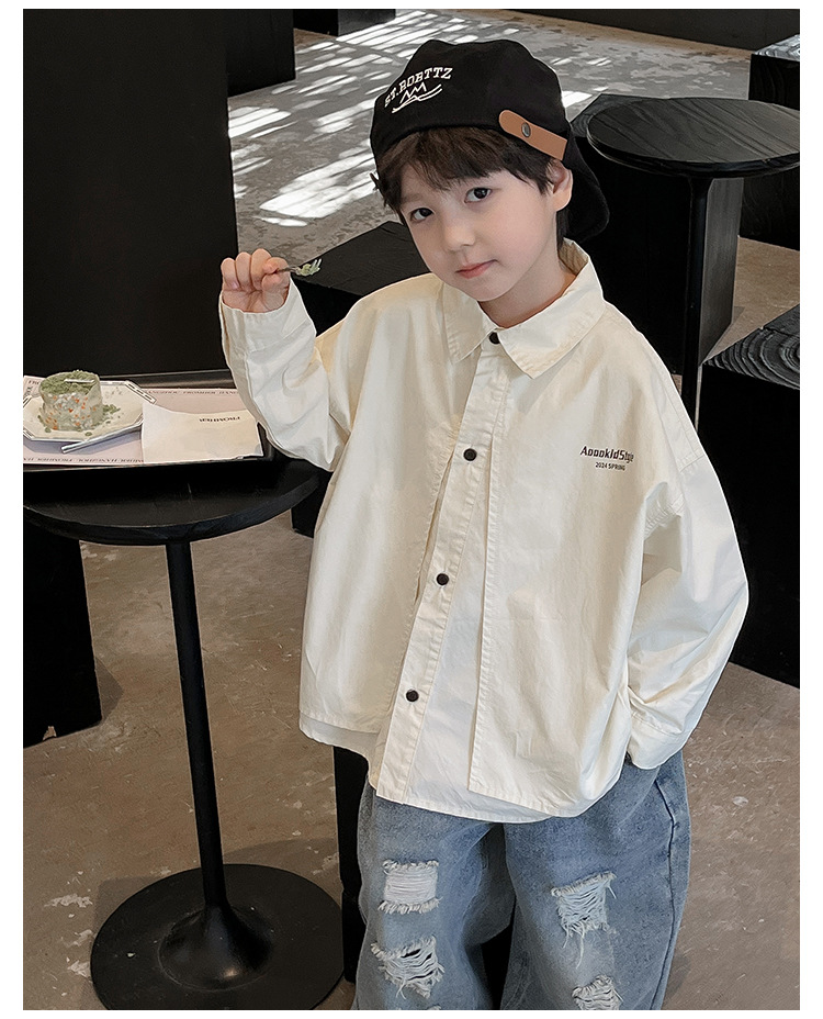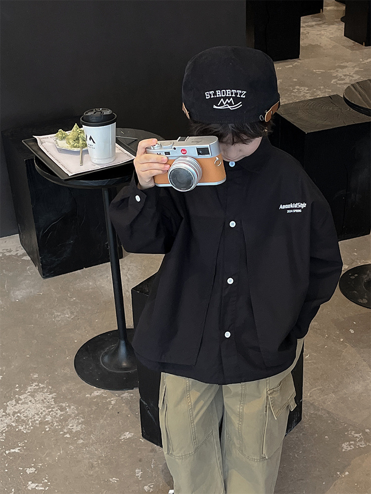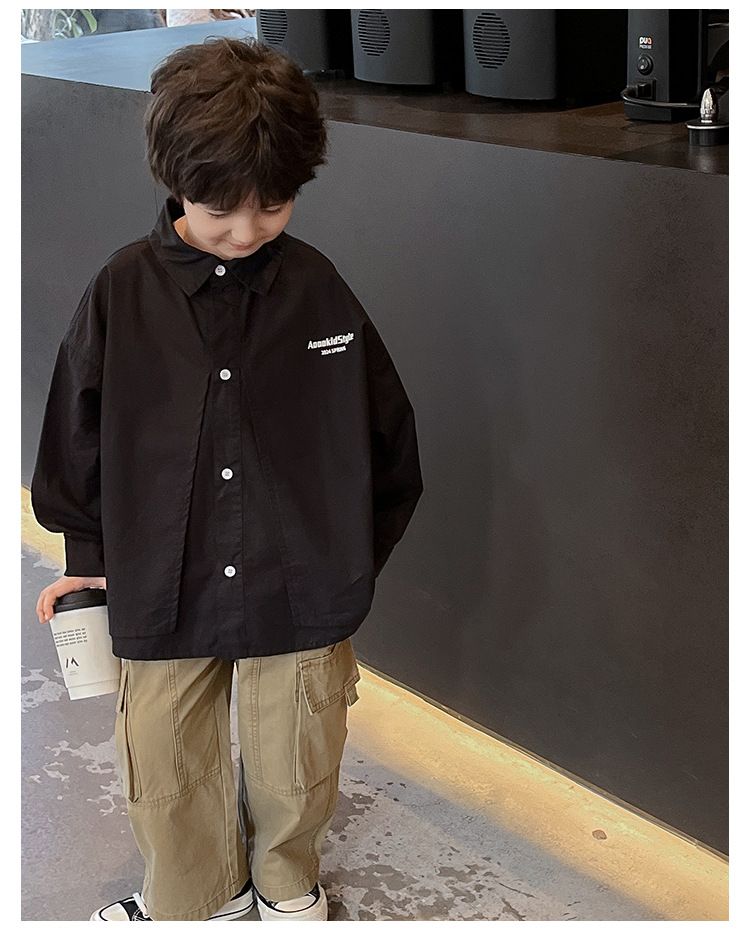 童酷2024儿童春季新款韩版宝宝上衣帅气字母印花立体翻领男童衬衫