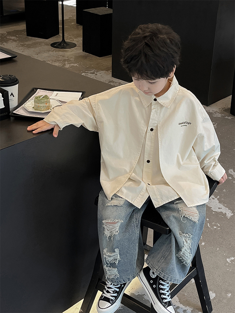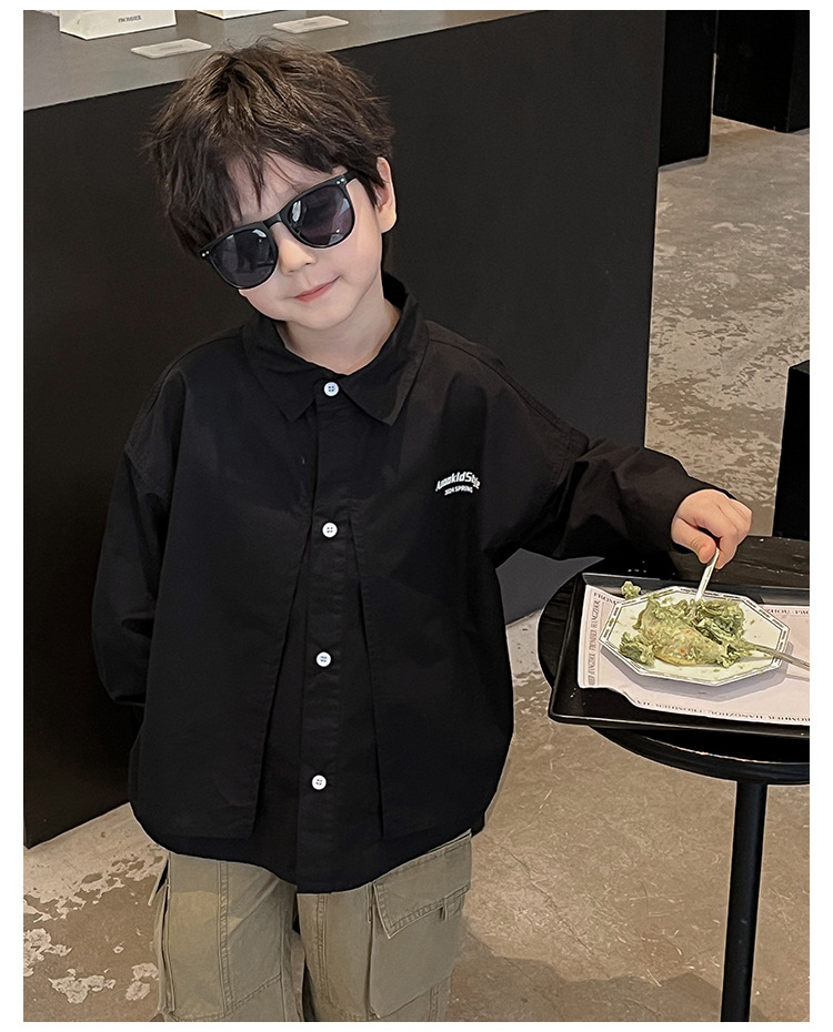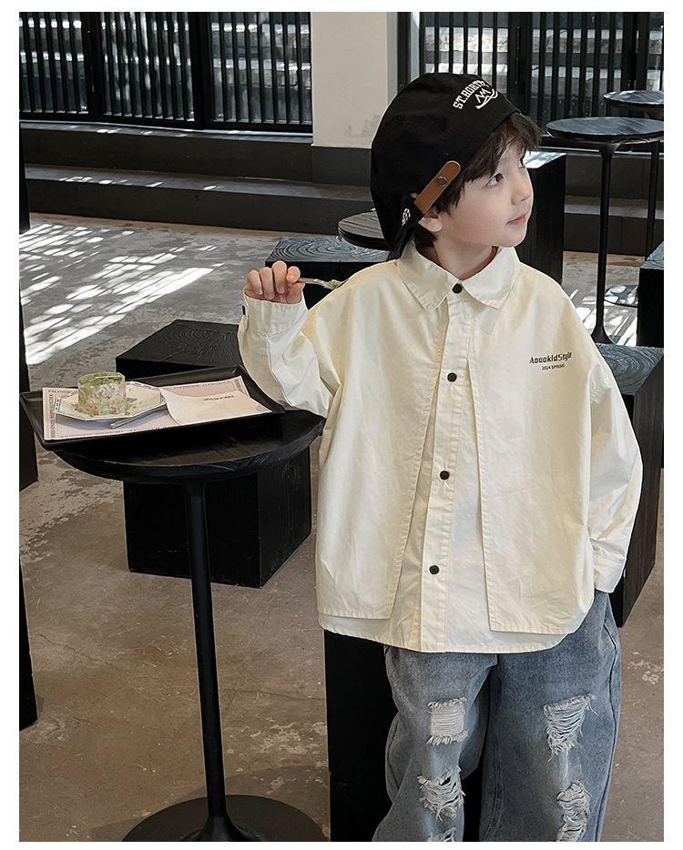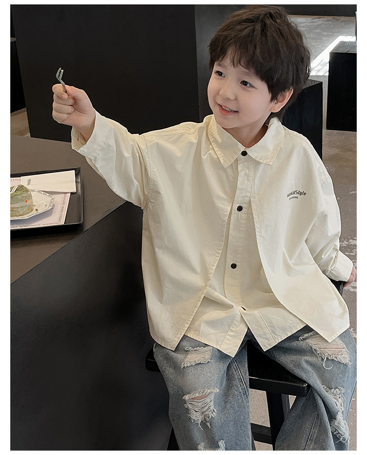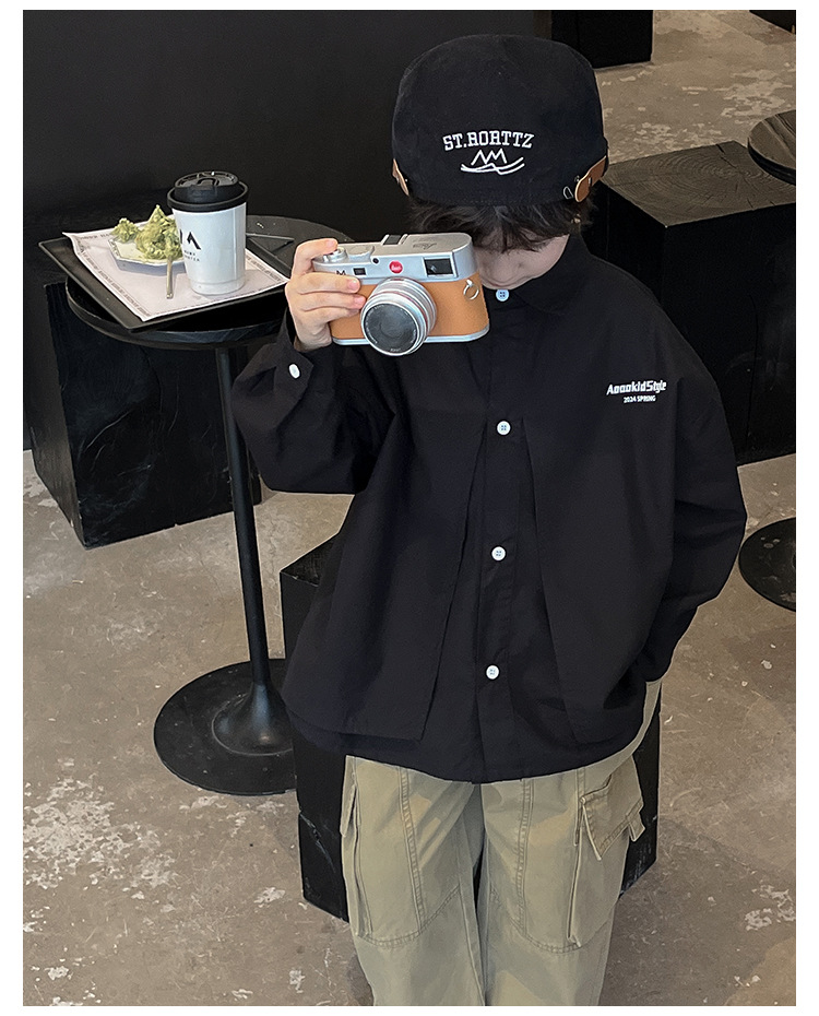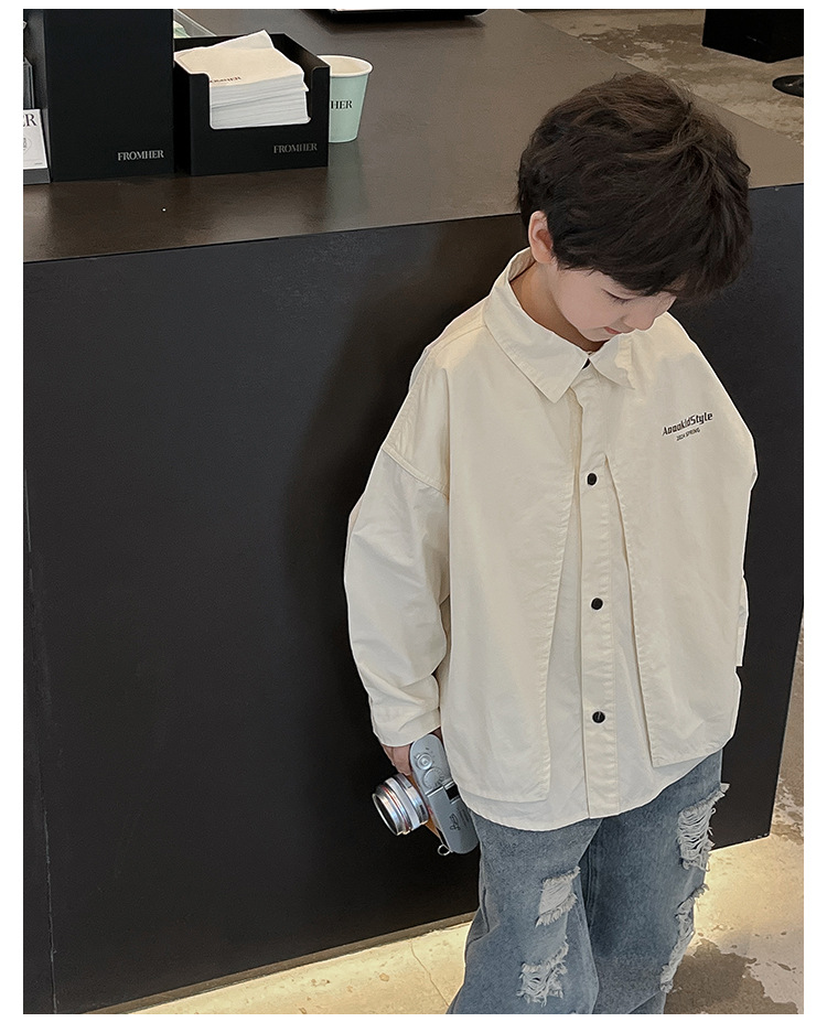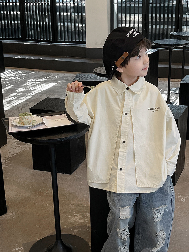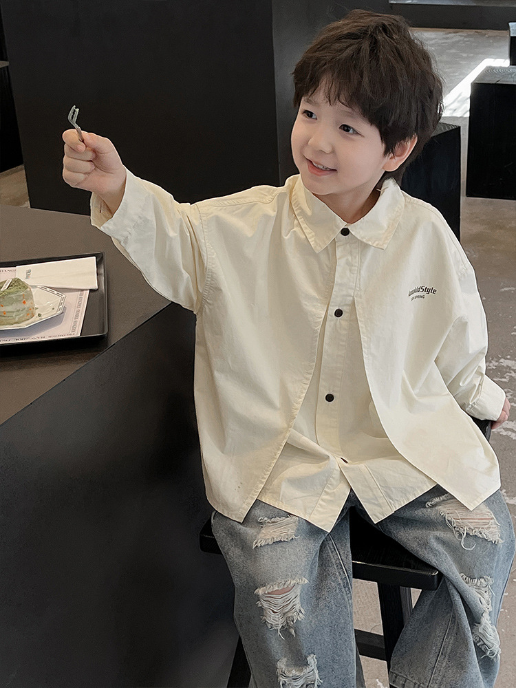 童酷2024儿童春季新款韩版宝宝上衣帅气字母印花立体翻领男童衬衫