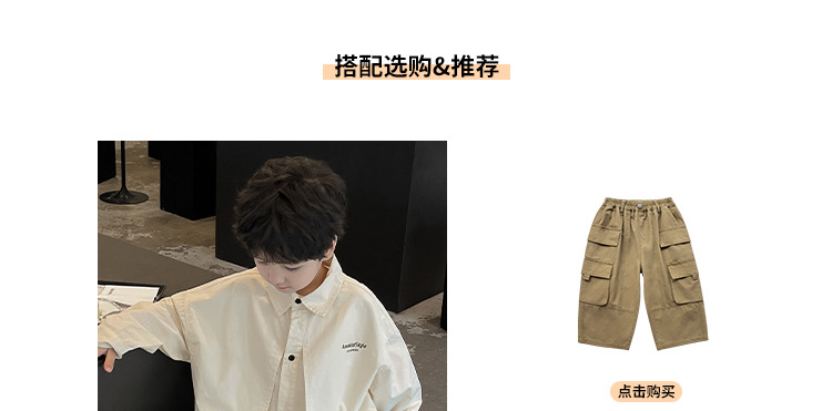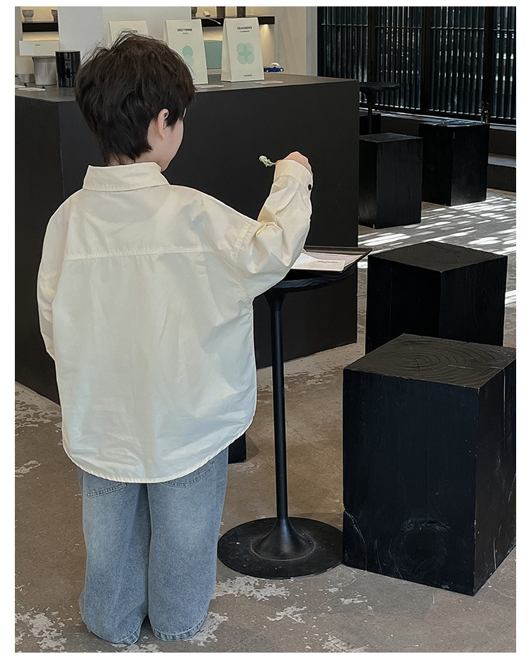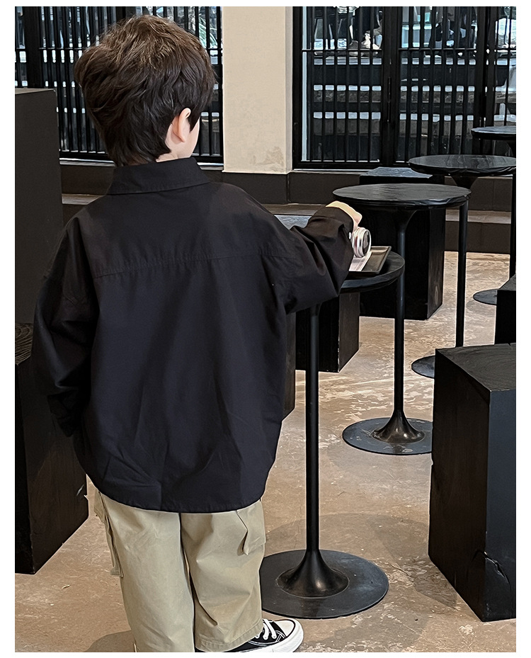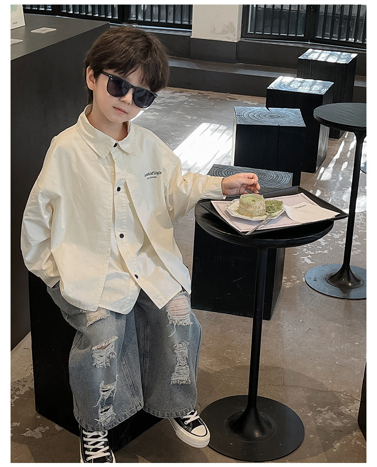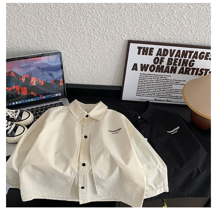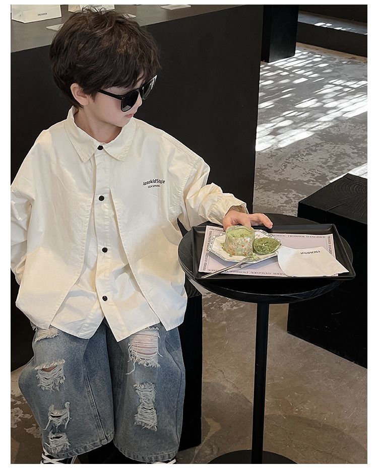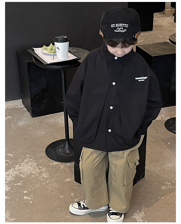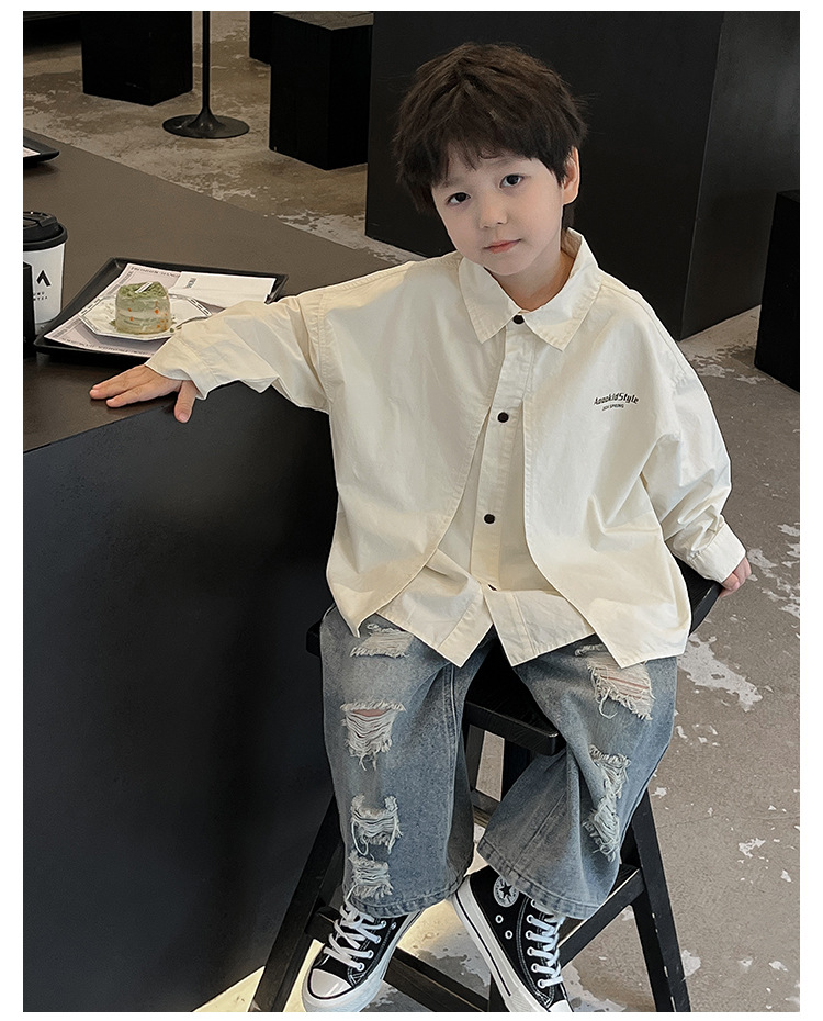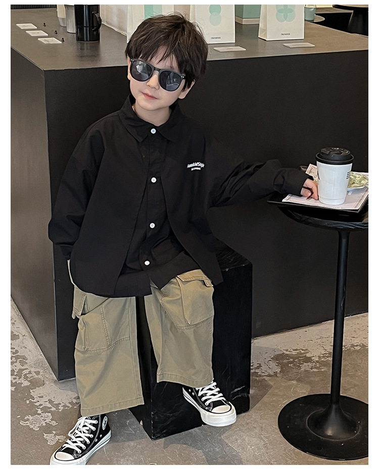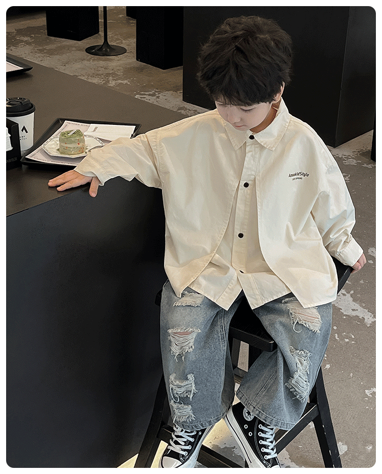 童酷2024儿童春季新款韩版宝宝上衣帅气字母印花立体翻领男童衬衫