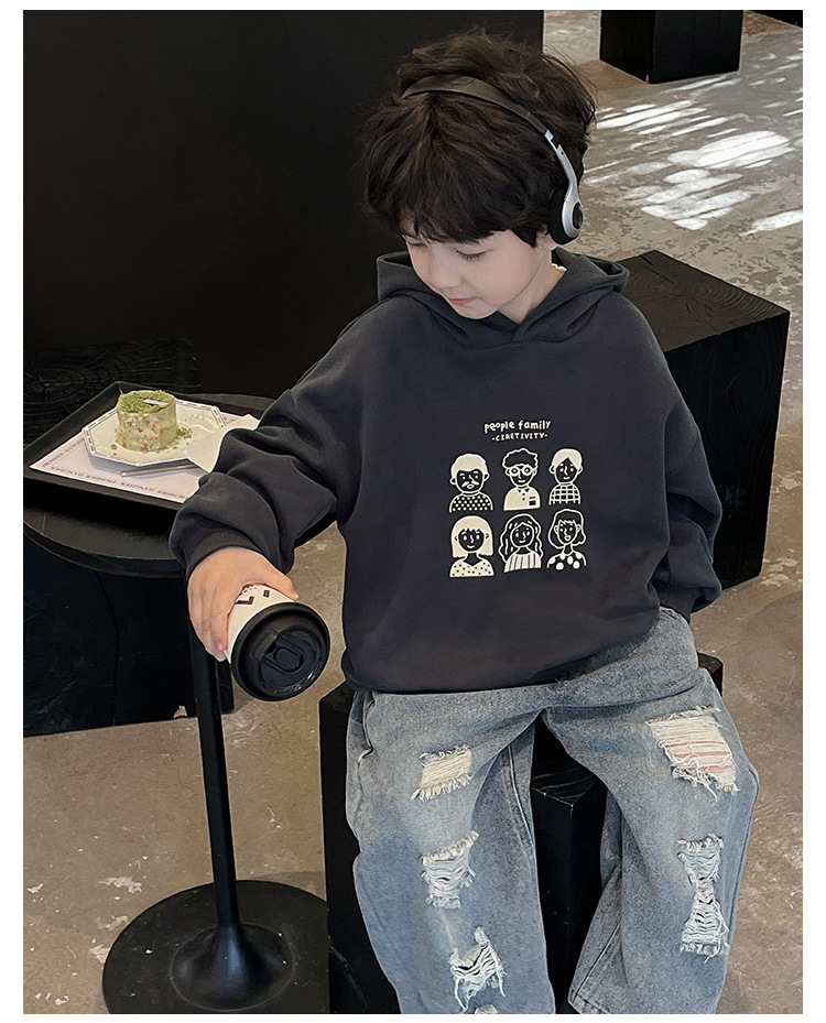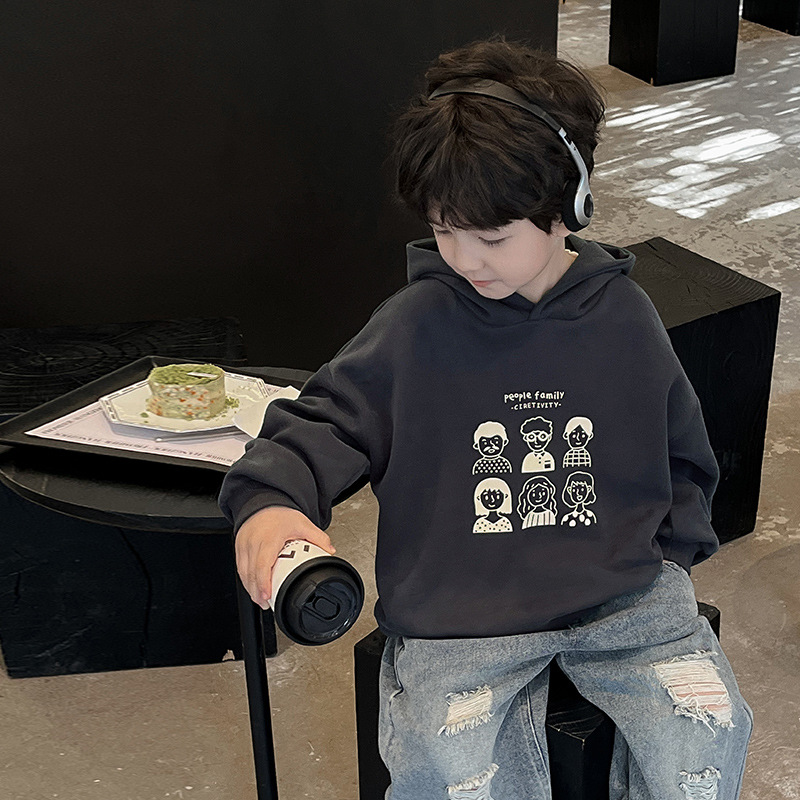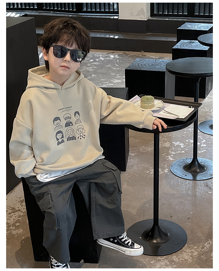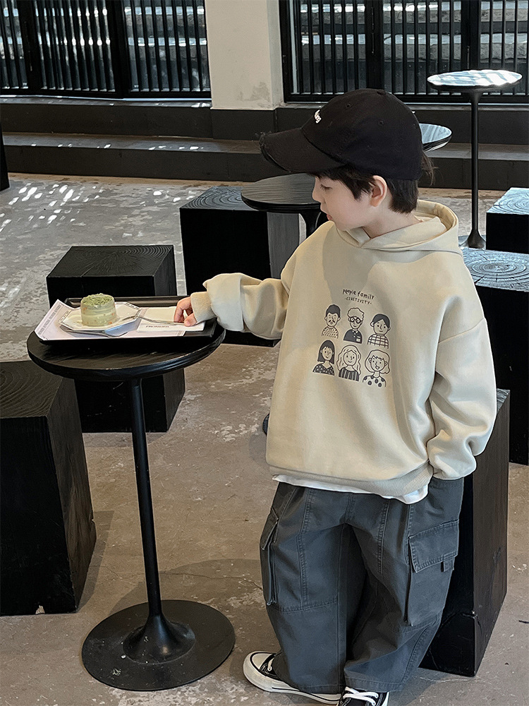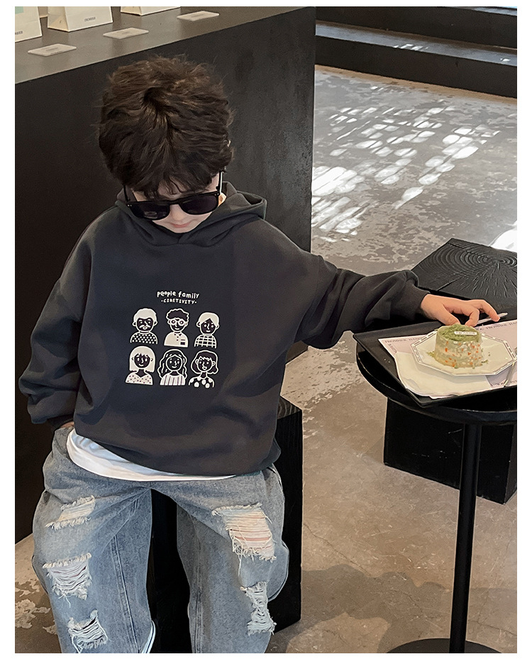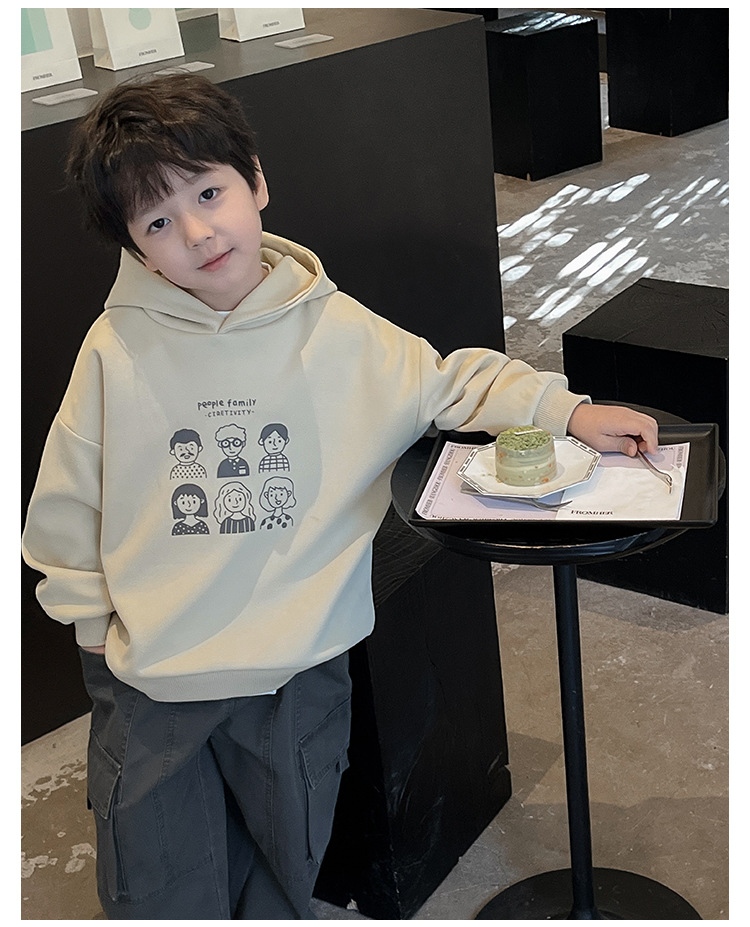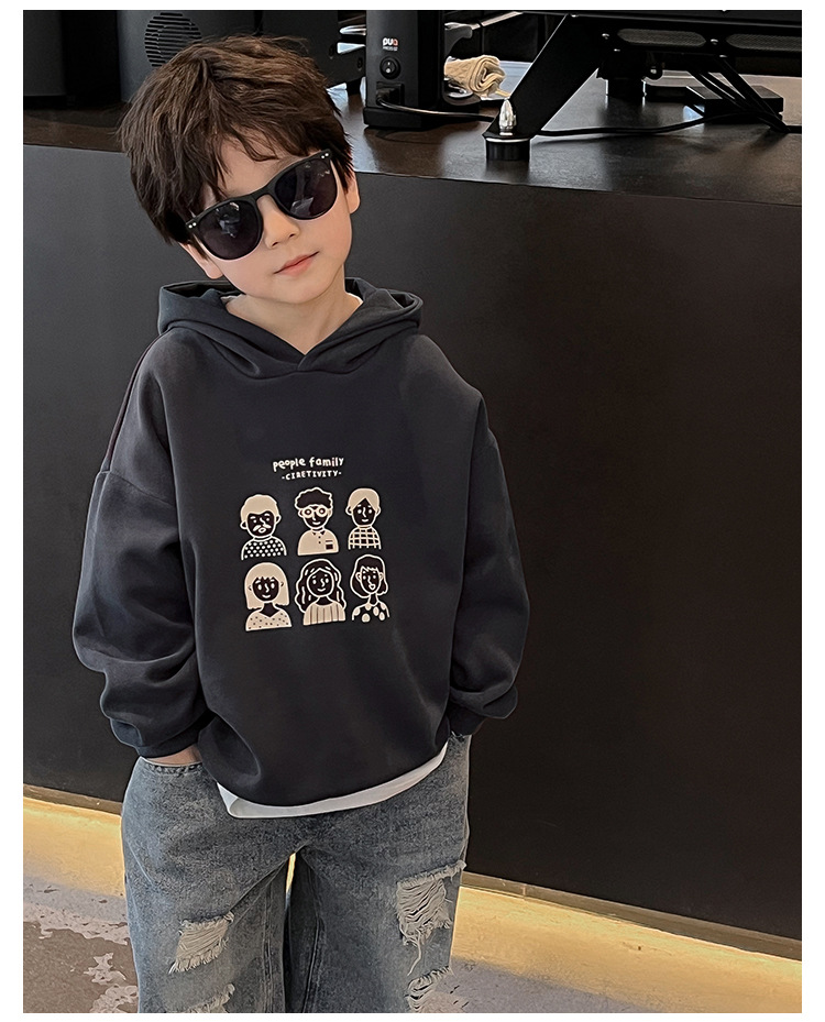 童酷2024儿童春季新款洋气宝宝上衣韩版九宫格印花连帽男童卫衣潮