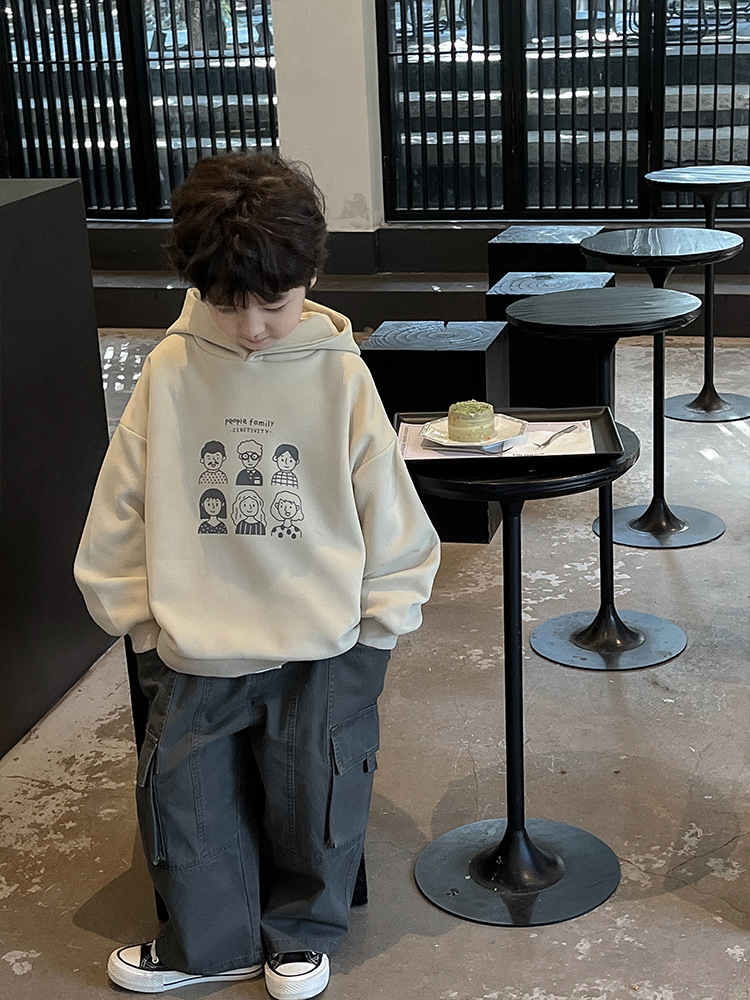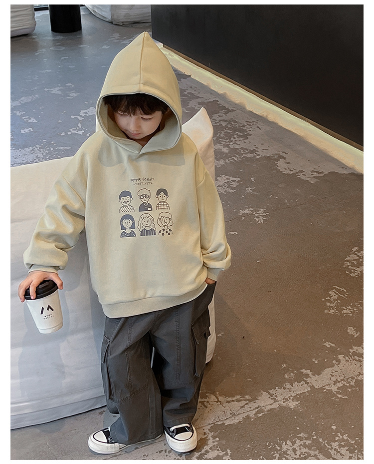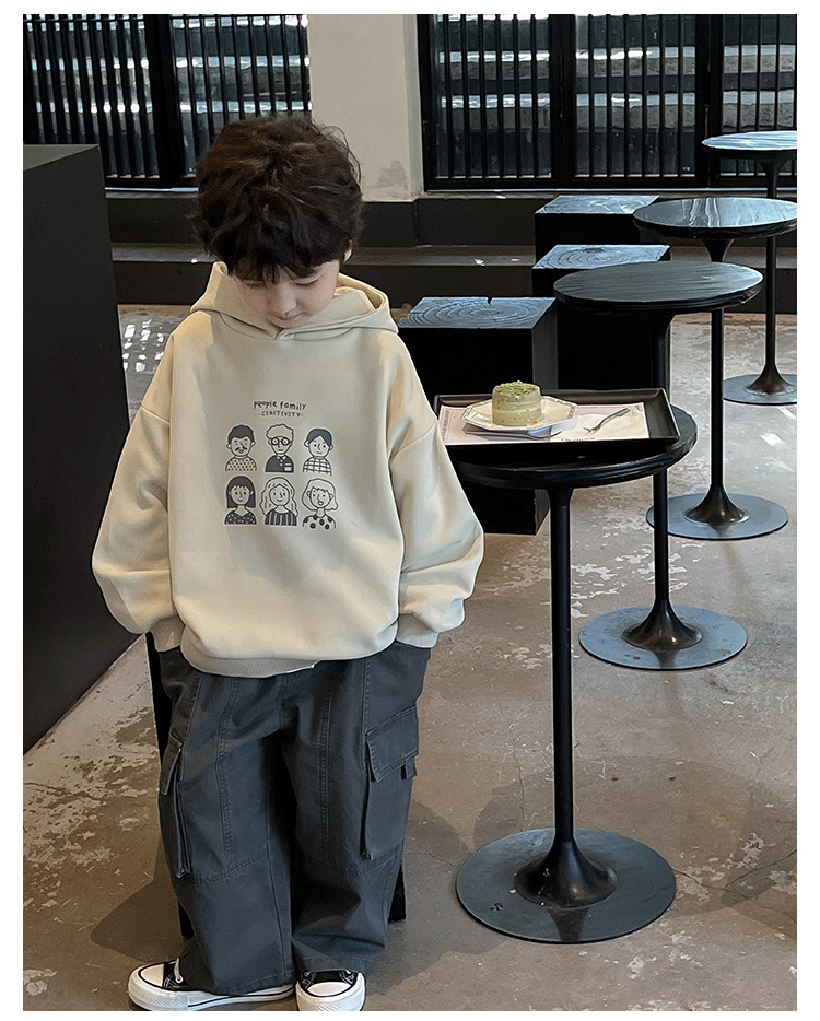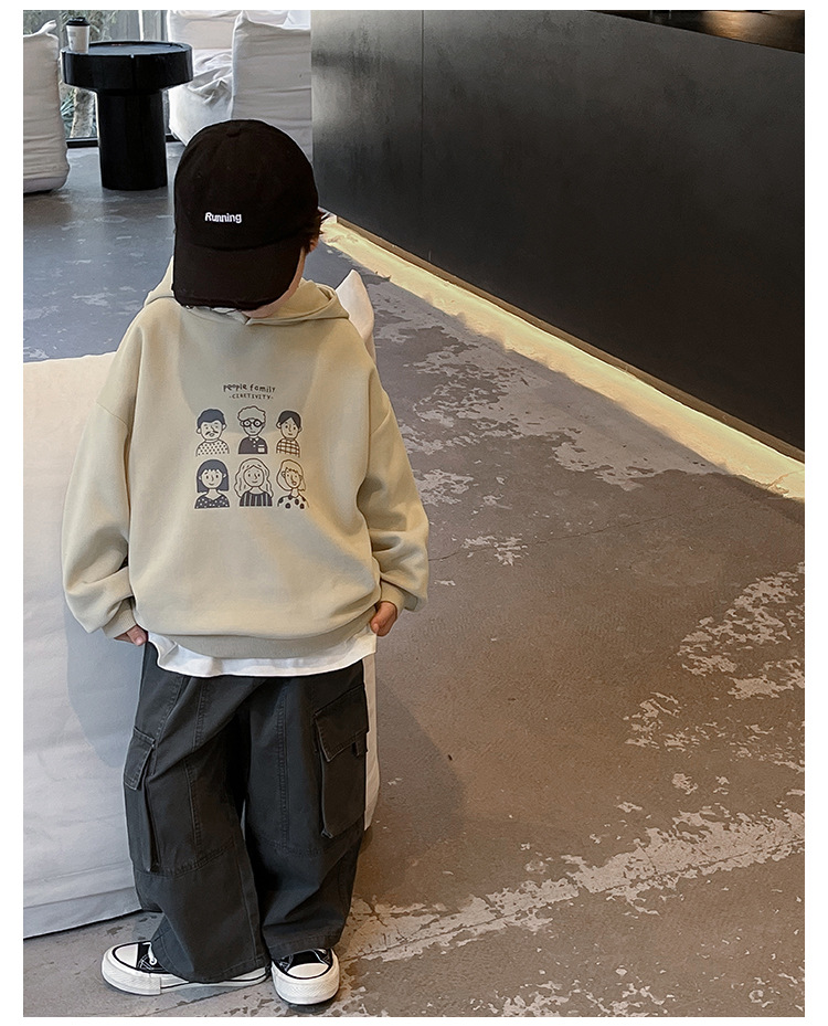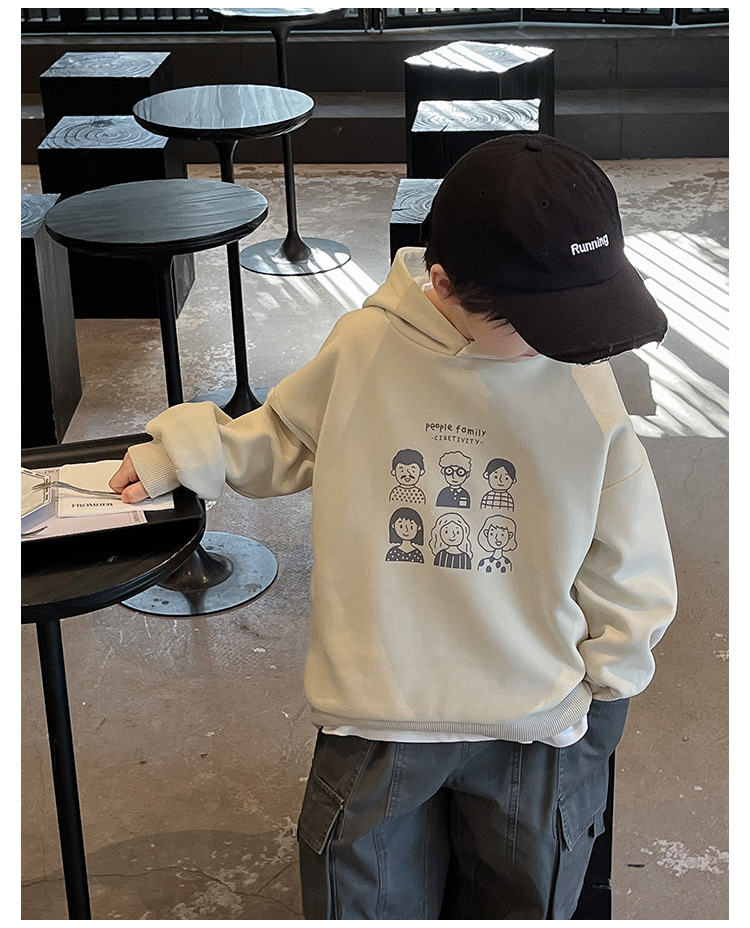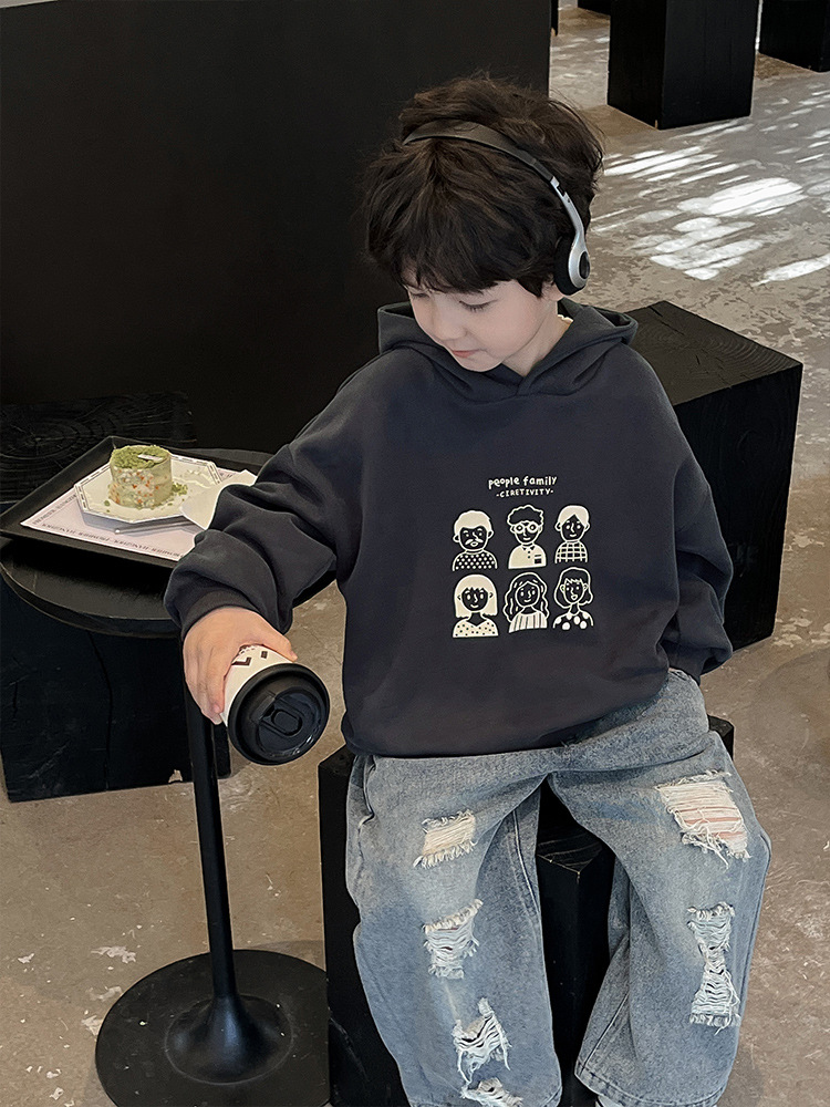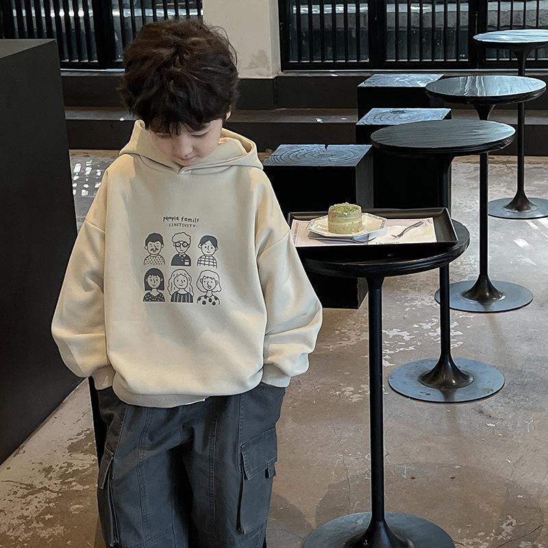 童酷2024儿童春季新款洋气宝宝上衣韩版九宫格印花连帽男童卫衣潮