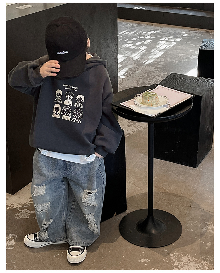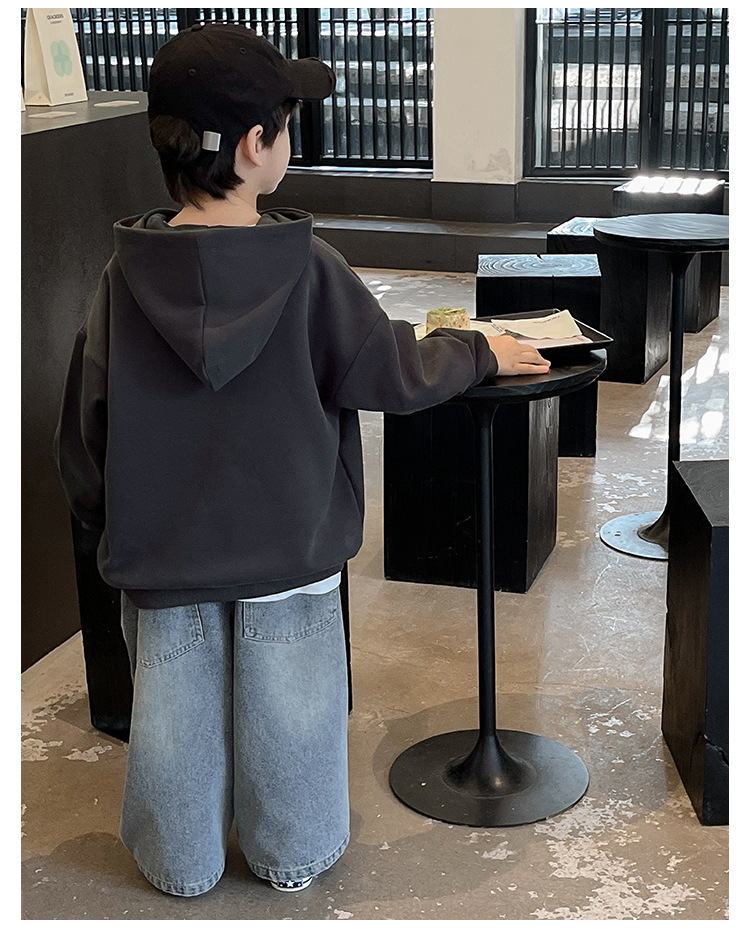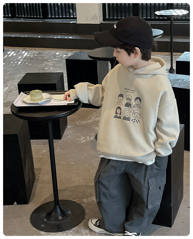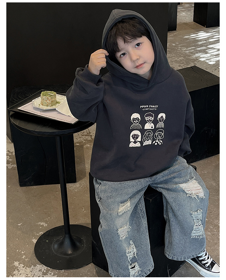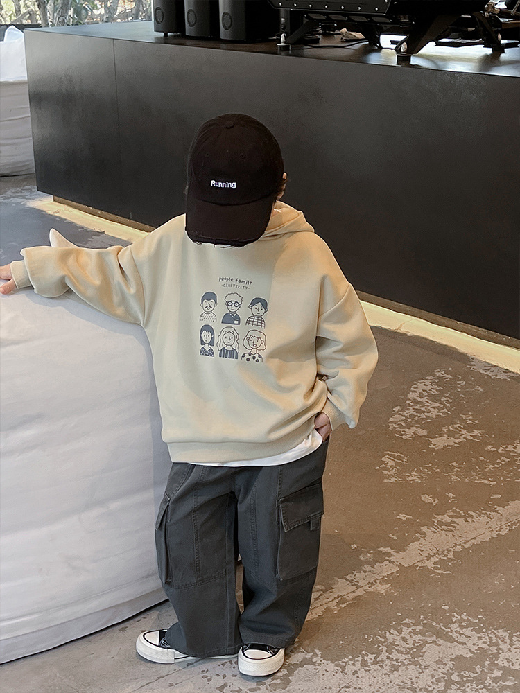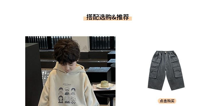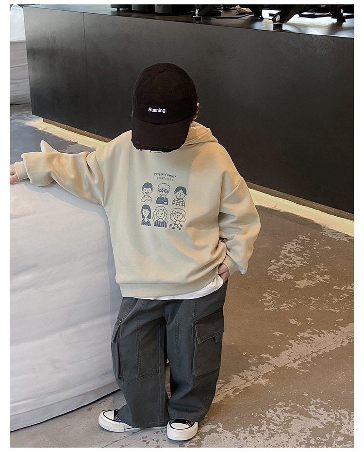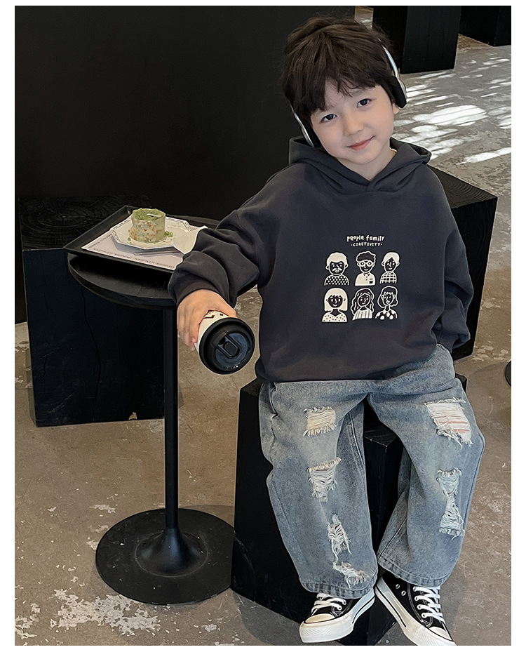 童酷2024儿童春季新款洋气宝宝上衣韩版九宫格印花连帽男童卫衣潮
