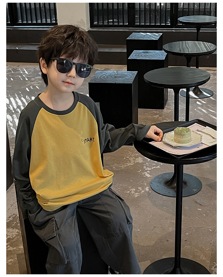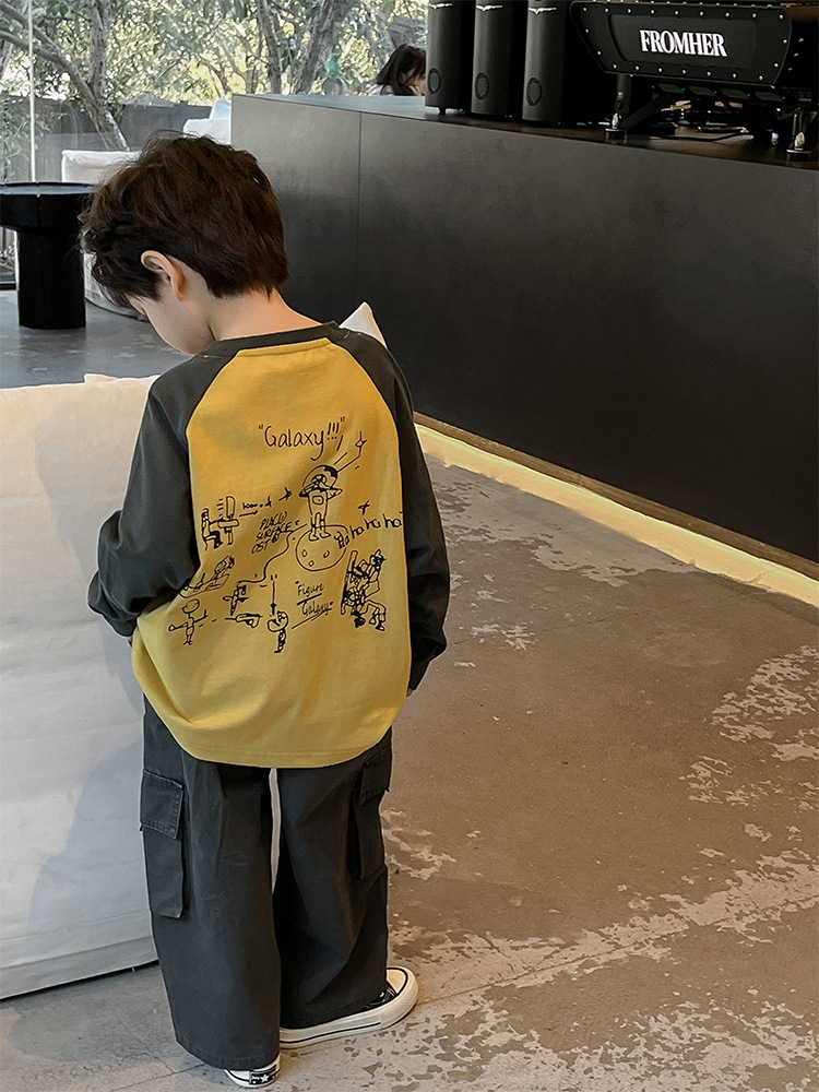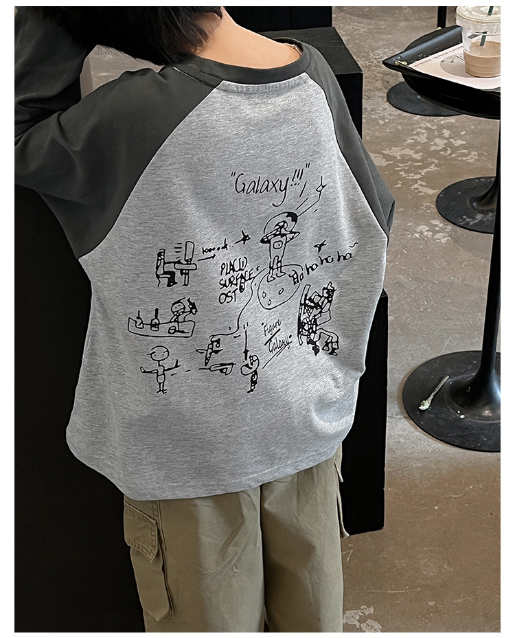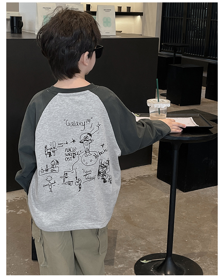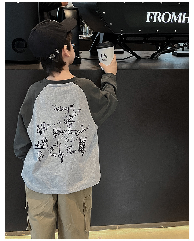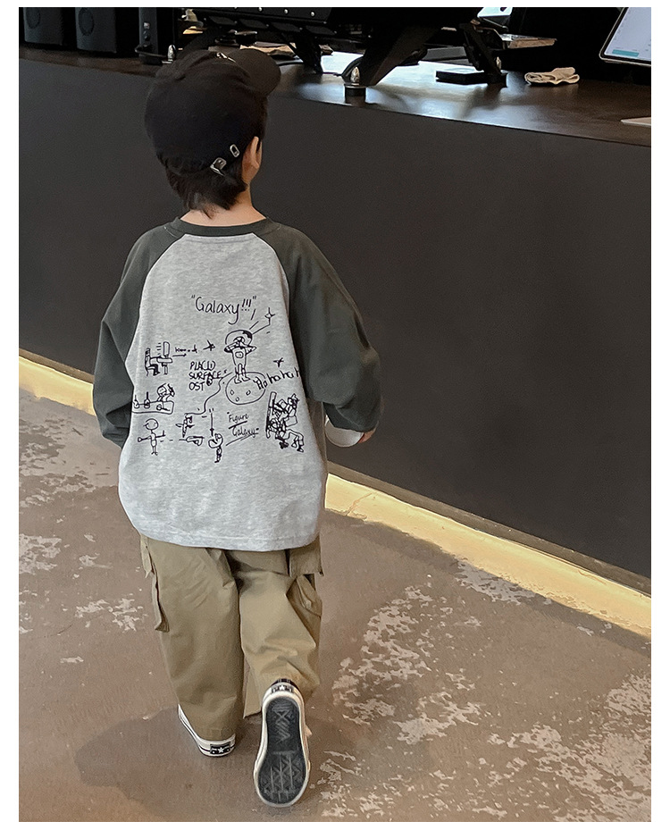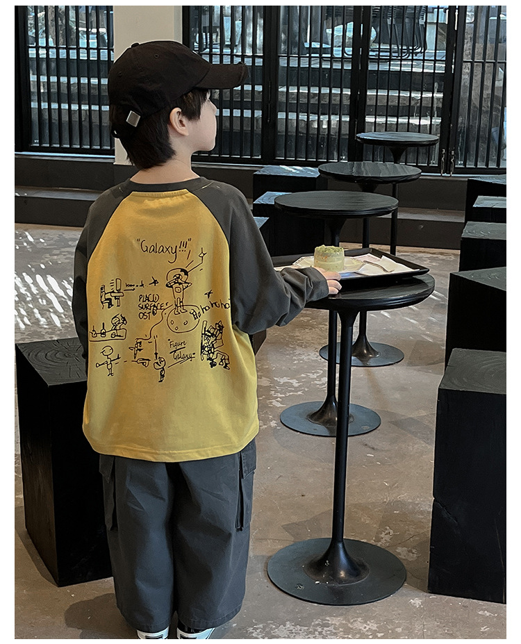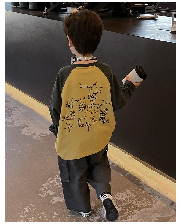 童酷2024儿童春季新款洋气宝宝T恤韩版趣味印花插肩袖男童打底衫