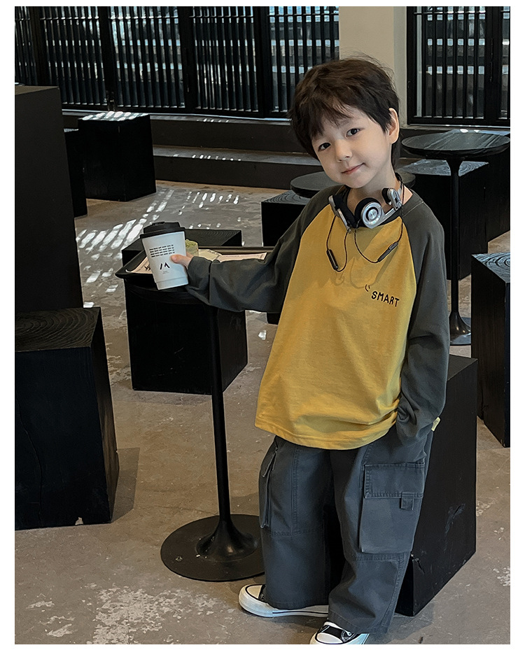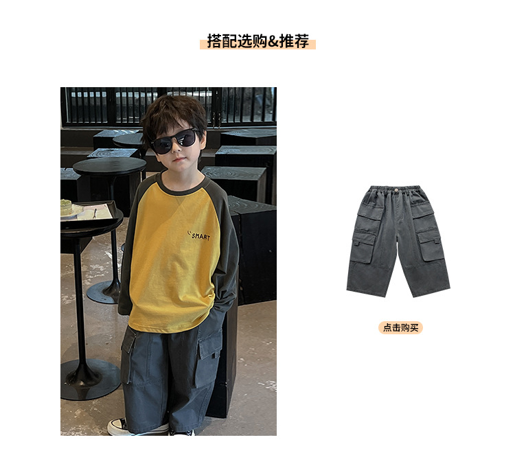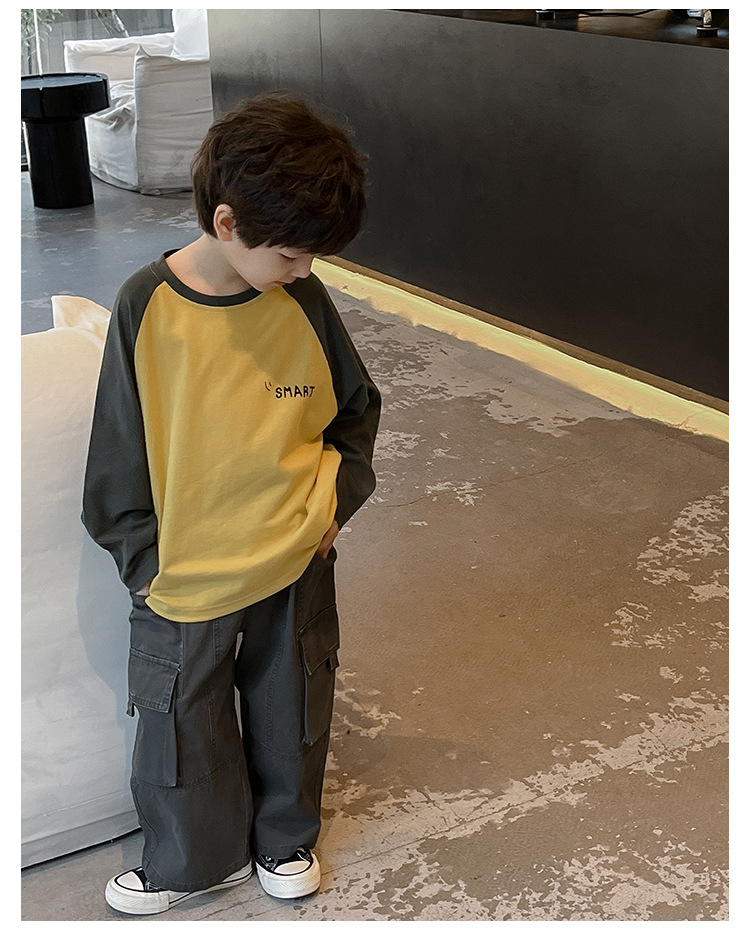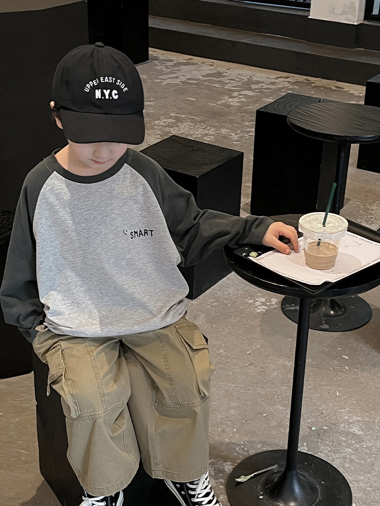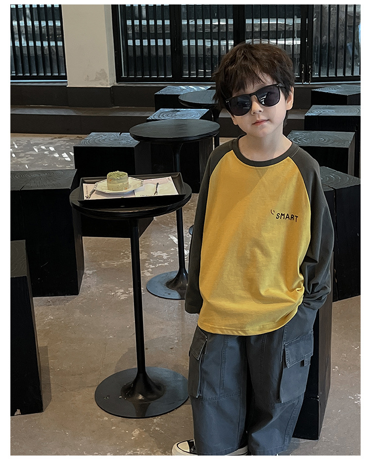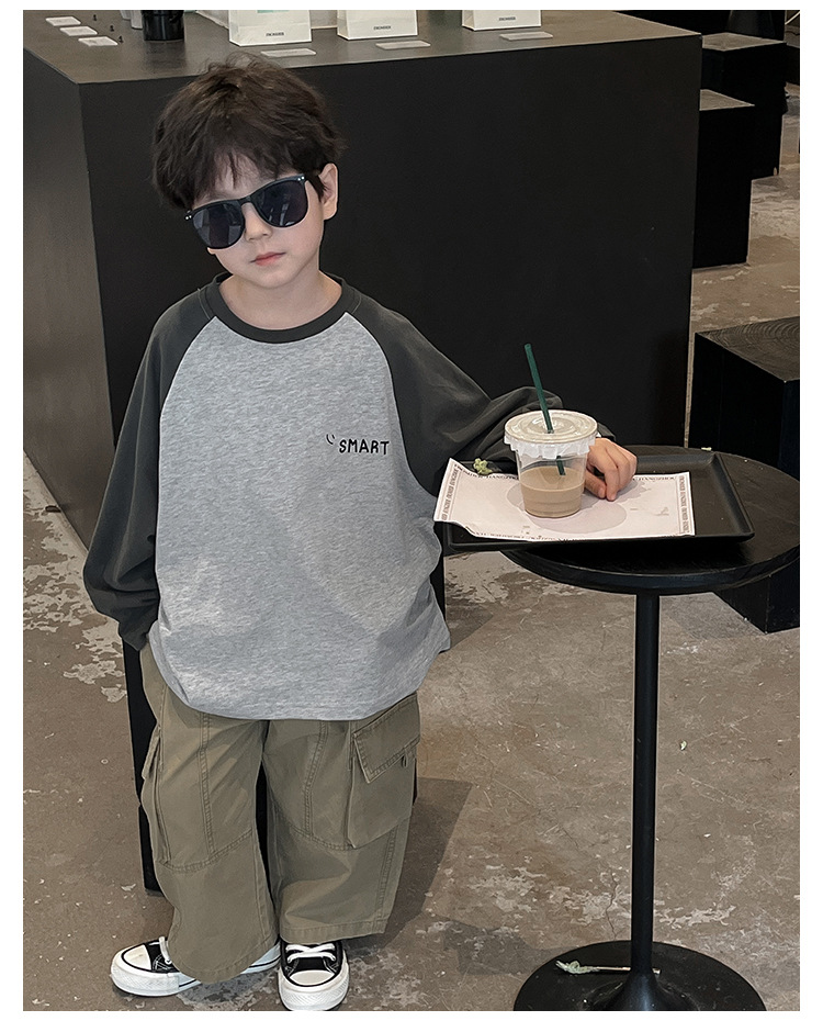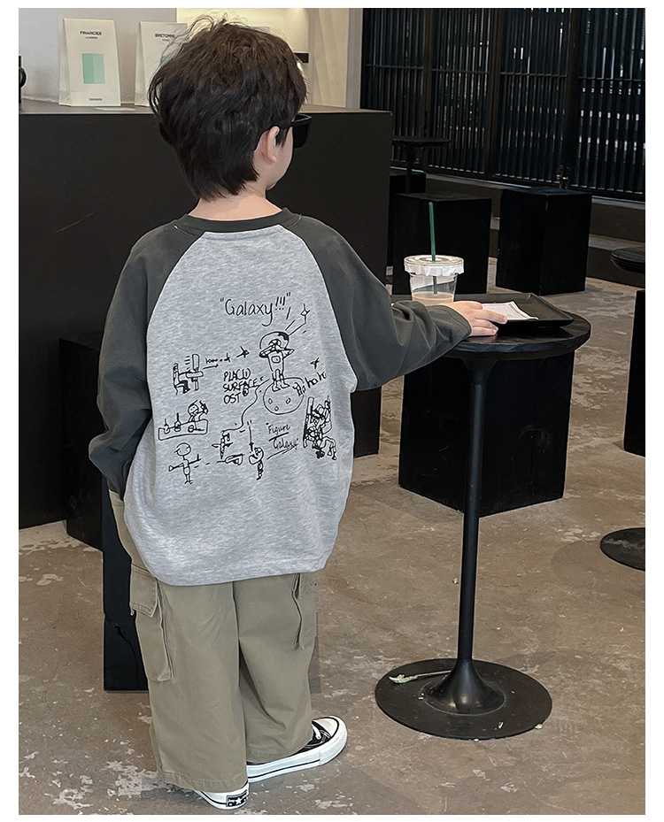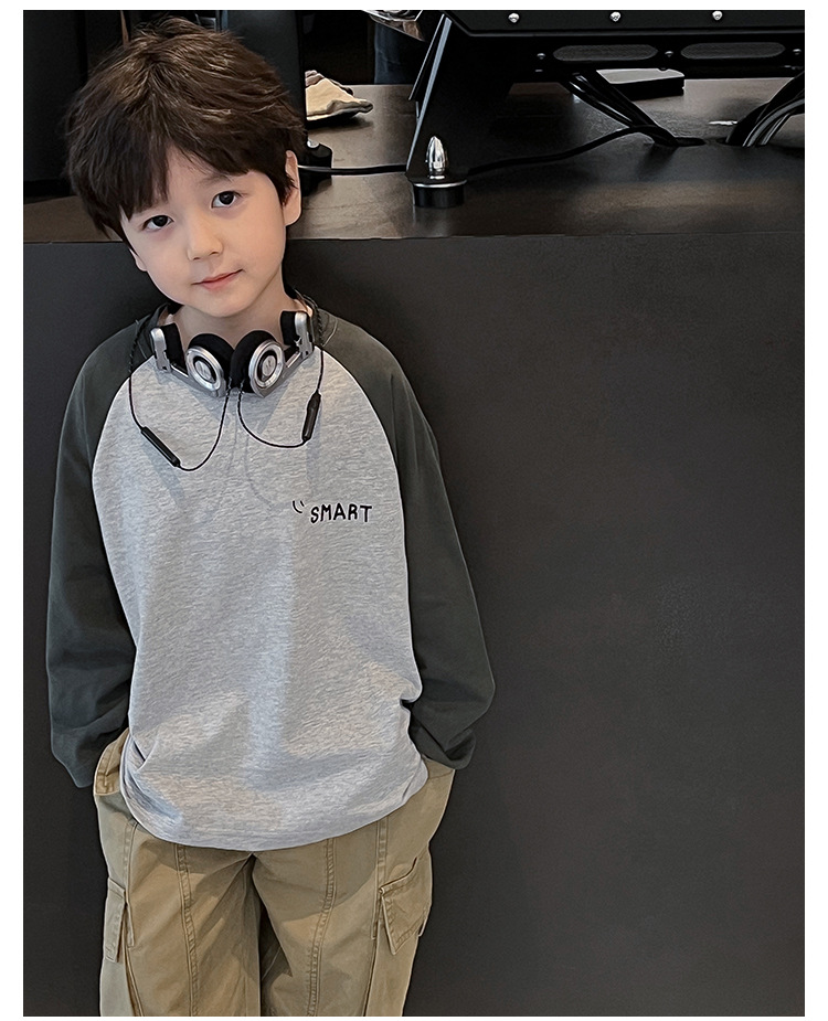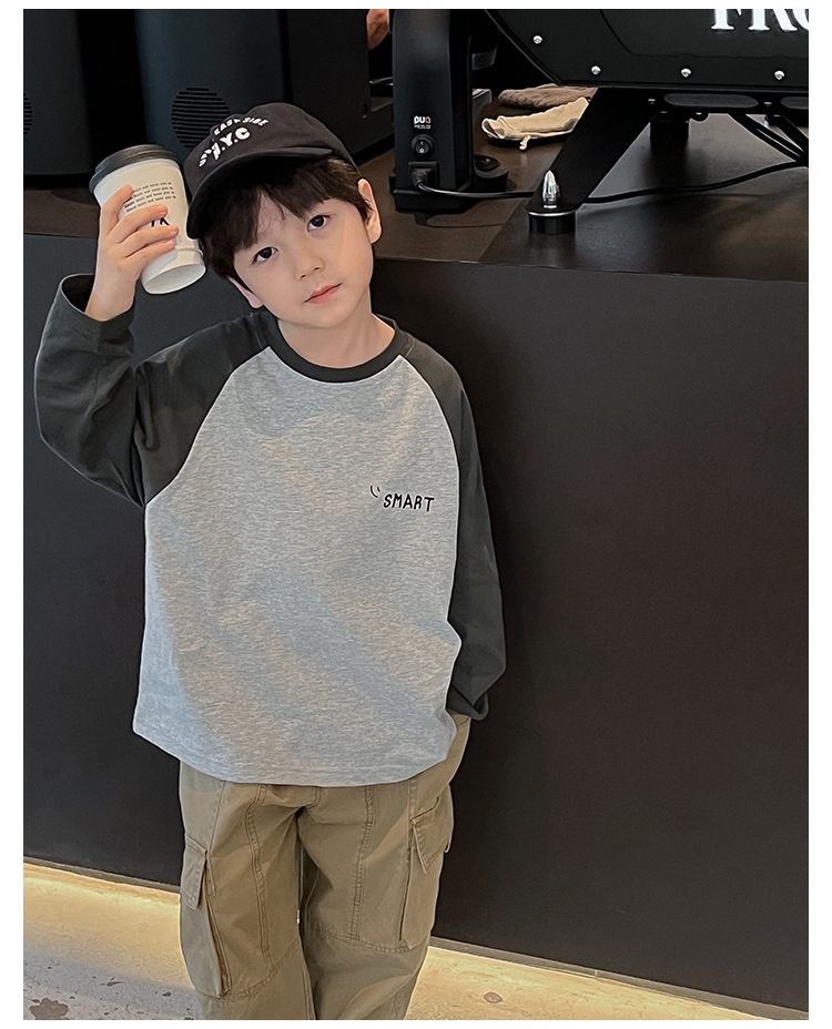 童酷2024儿童春季新款洋气宝宝T恤韩版趣味印花插肩袖男童打底衫