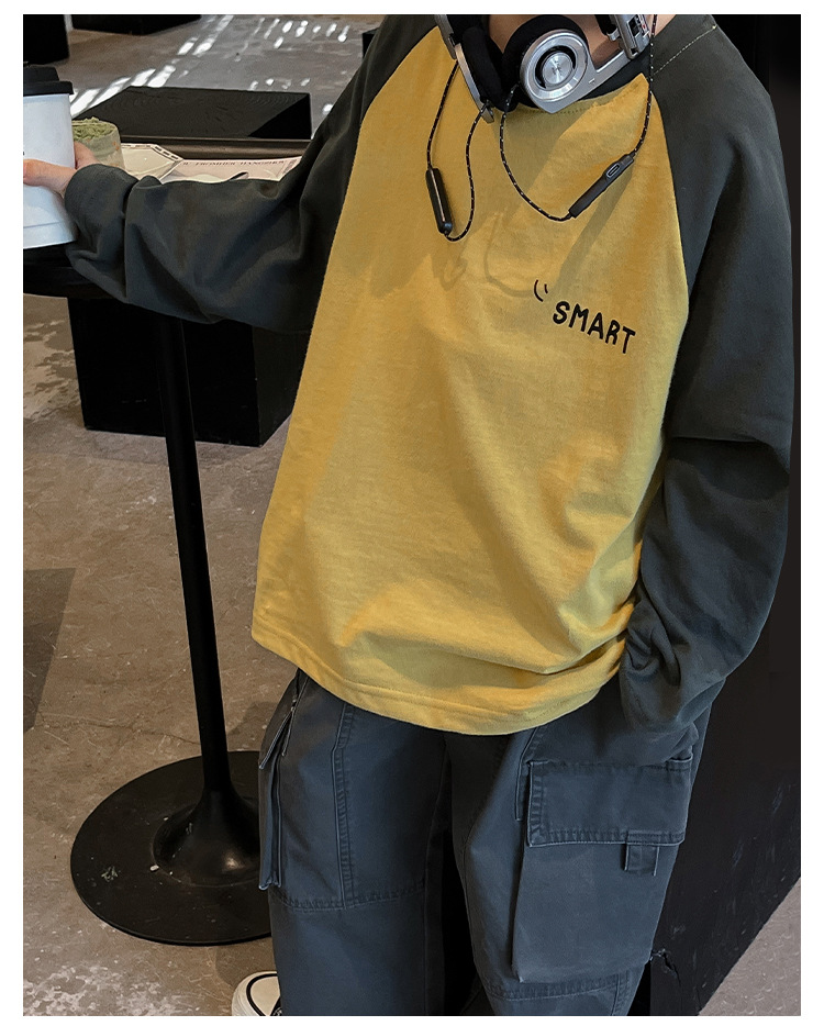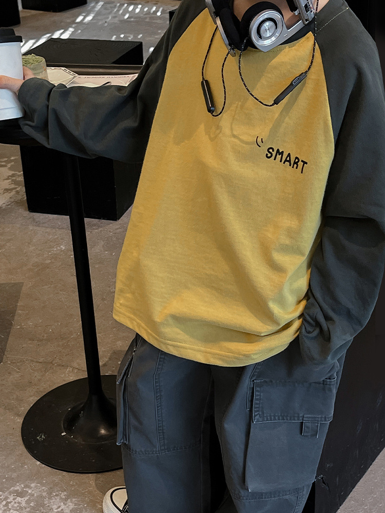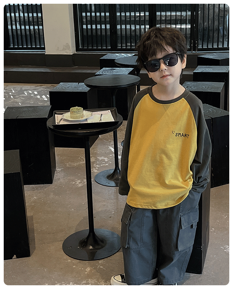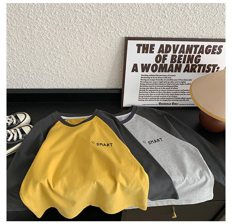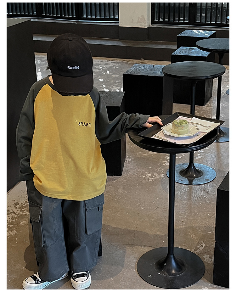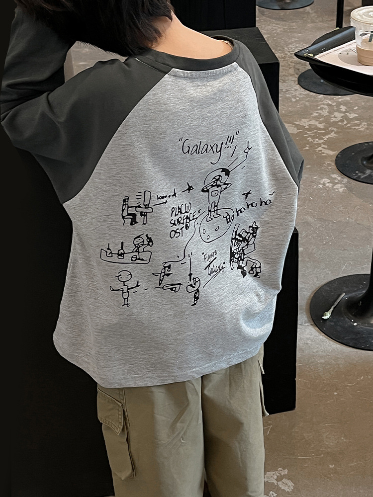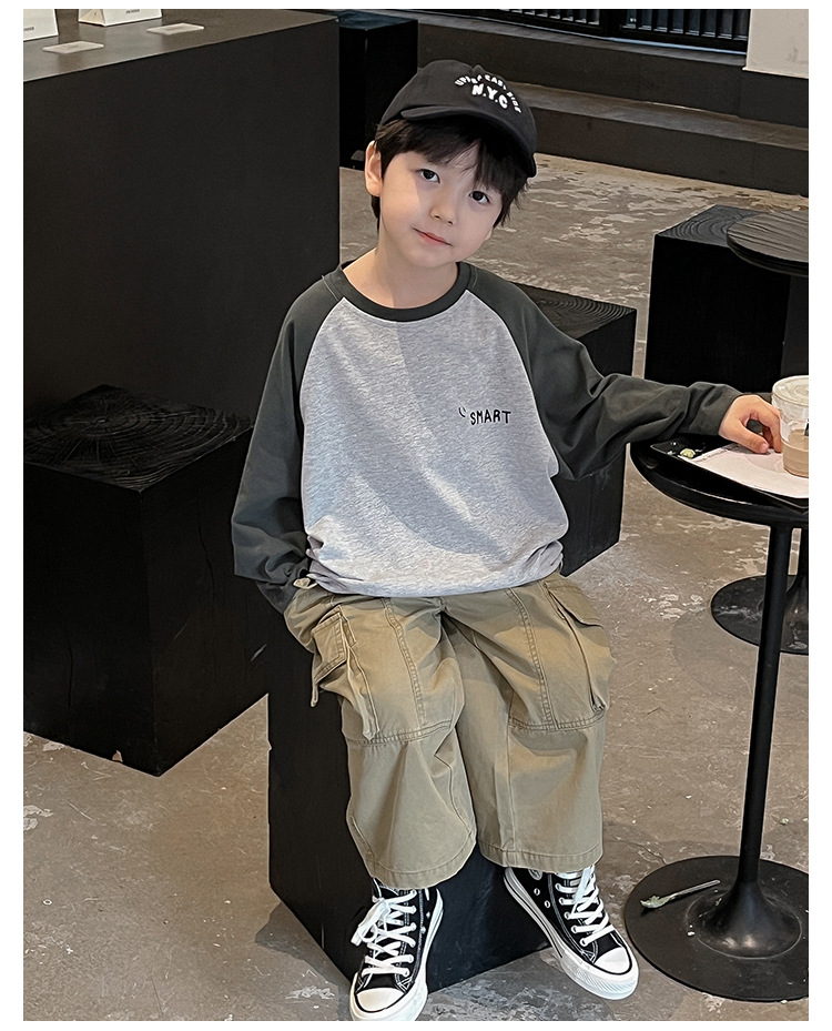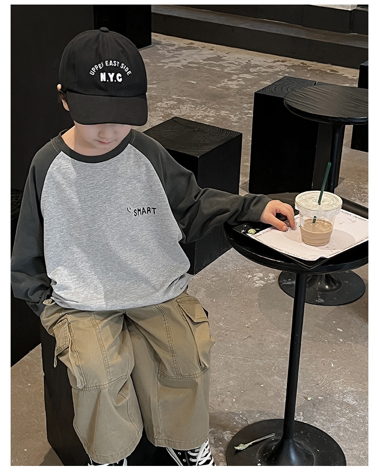 童酷2024儿童春季新款洋气宝宝T恤韩版趣味印花插肩袖男童打底衫