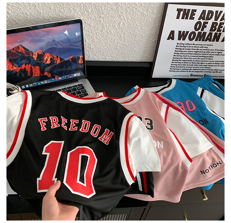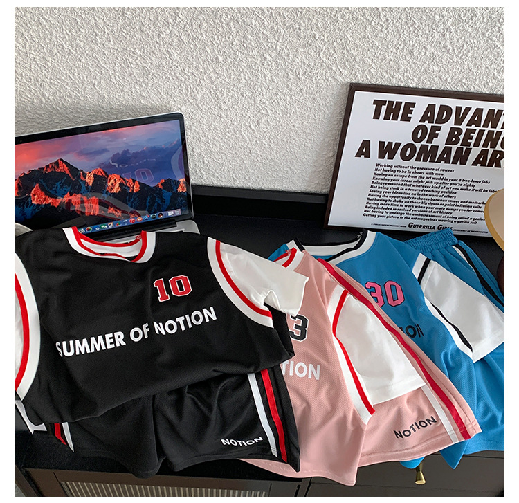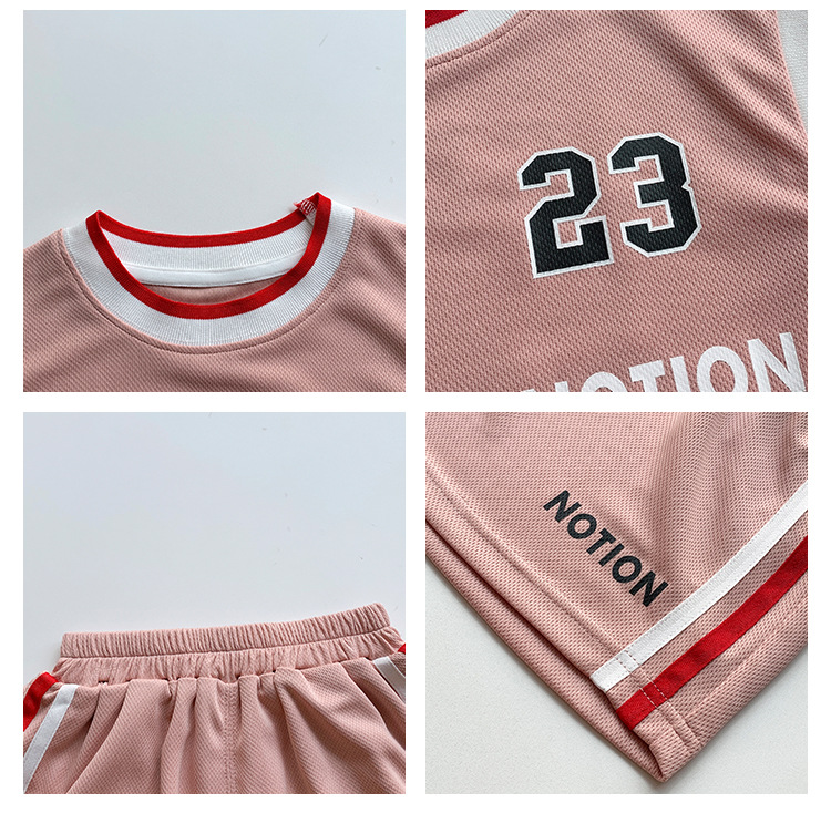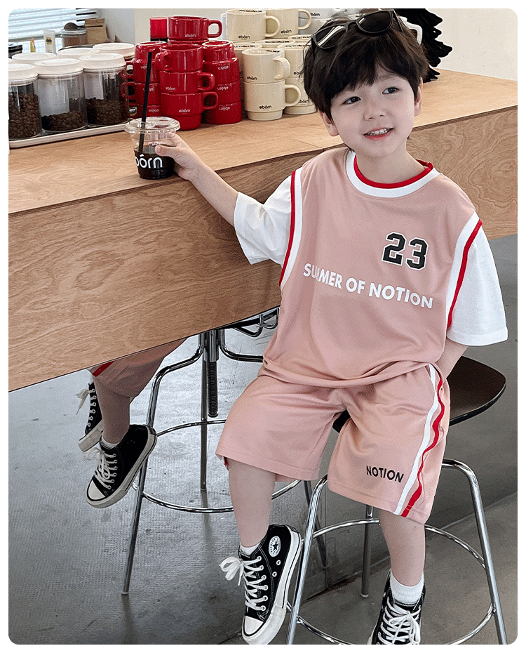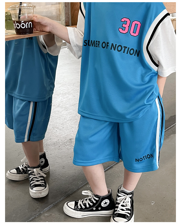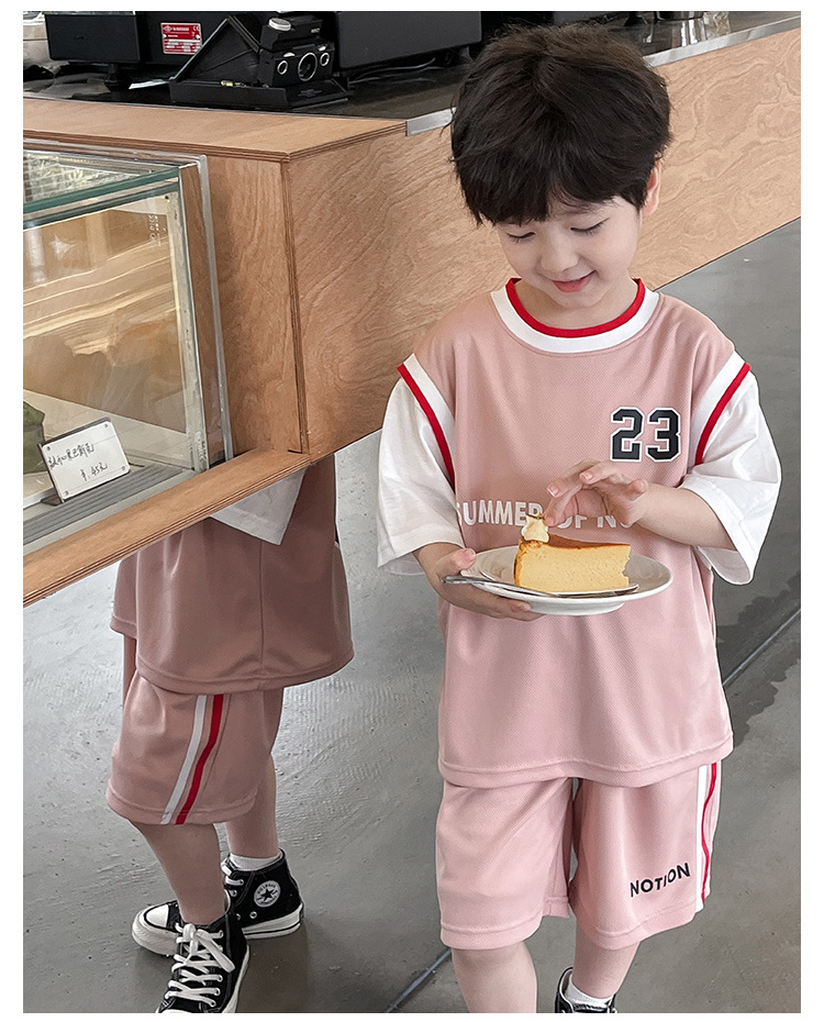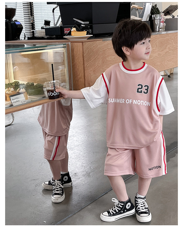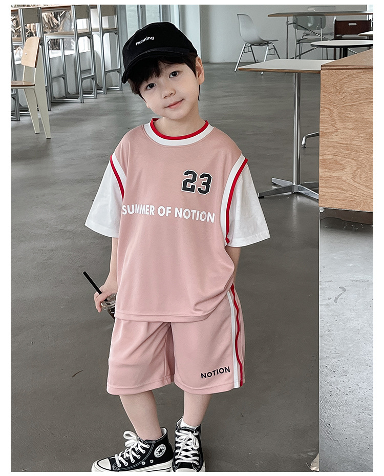 童酷2024儿童夏季新款韩版宝宝字母印花假两件短袖篮球服男童套装